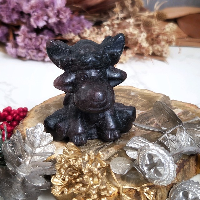動画をご覧ください。 https://www.instagram.com/reel/DRg_beYkgo4/?igsh=MWZwcnY2anM0Y3ZoNQ== 前足をちょこんと揃えて座る姿がとってもキュートなトナカイさん♡ クリスマスのインテリアにぴったりです(*^^*) 共生するヌーマイトのシラーもキラリと綺麗です☆ ⧉サイズ 約 57mm×54mm×53mm 重量 148g ※天然石は自然が作り出した鉱物であるため、微細の傷、内包物、クラックなどが見られることがあります。結晶ができあがる過程で自然に生じた美しい天然石の証であり、魅力でもあります。ぜひお楽しみください。