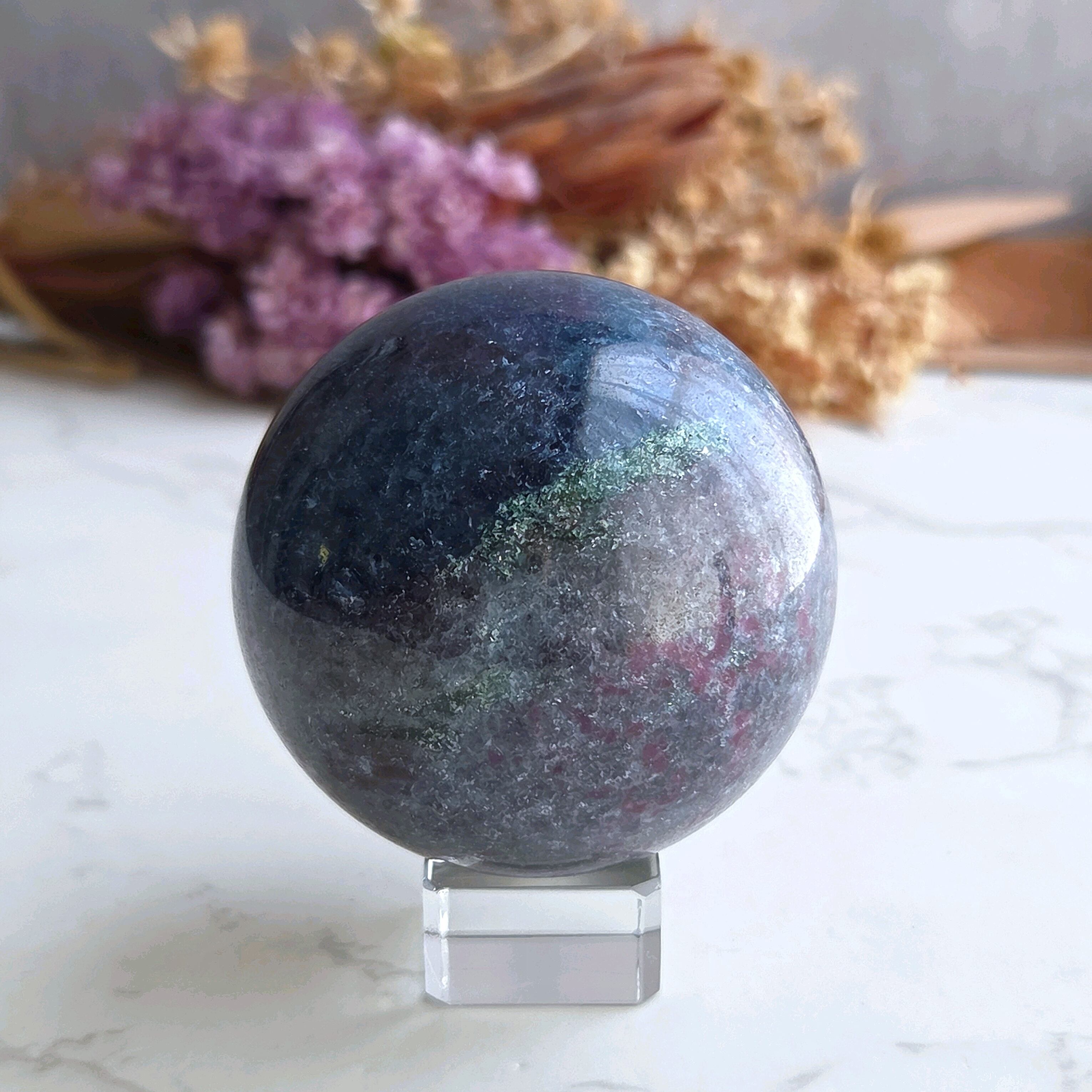 ディープなピンク、ブルー、グリーンなどが複雑に混じりあい美しいスフィアです♡
