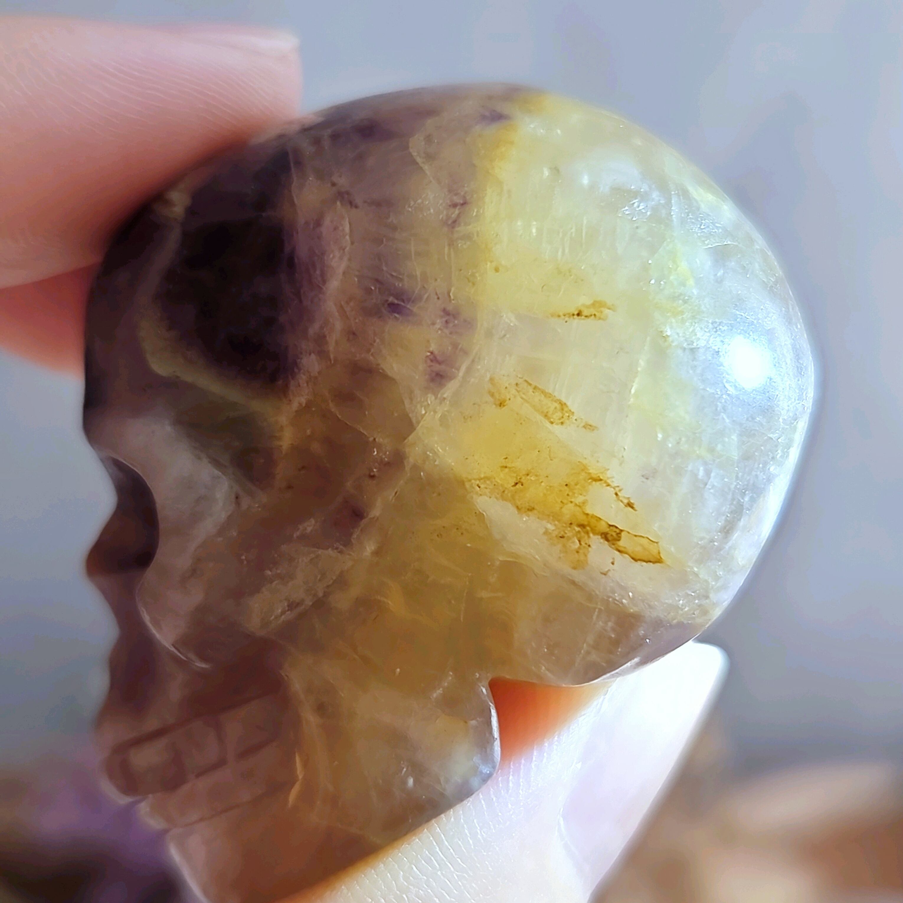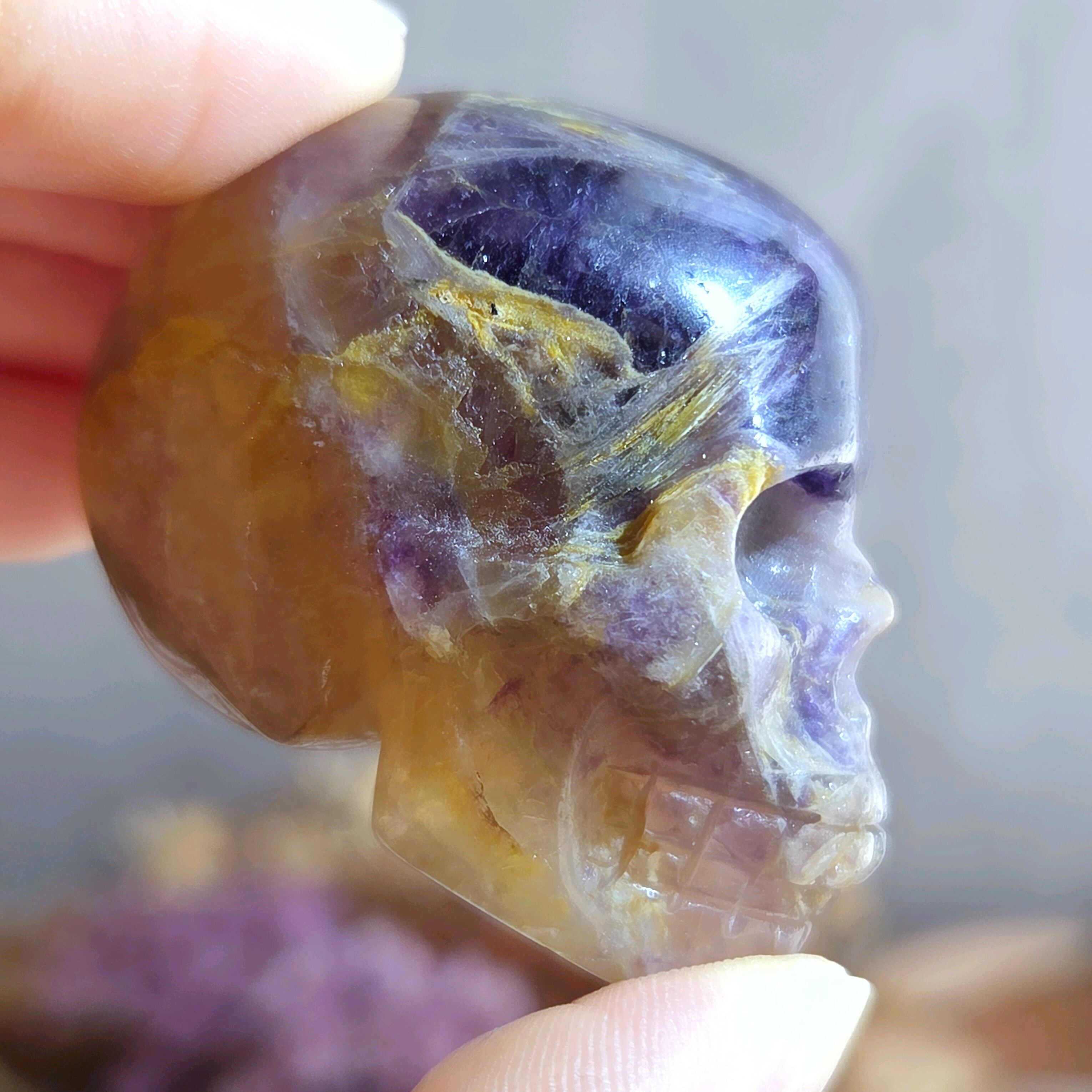 個性的でお洒落なダークカラーのフローライトスカル。イエローとパープルの組み合わせがとってもクールでカッコいいです♡