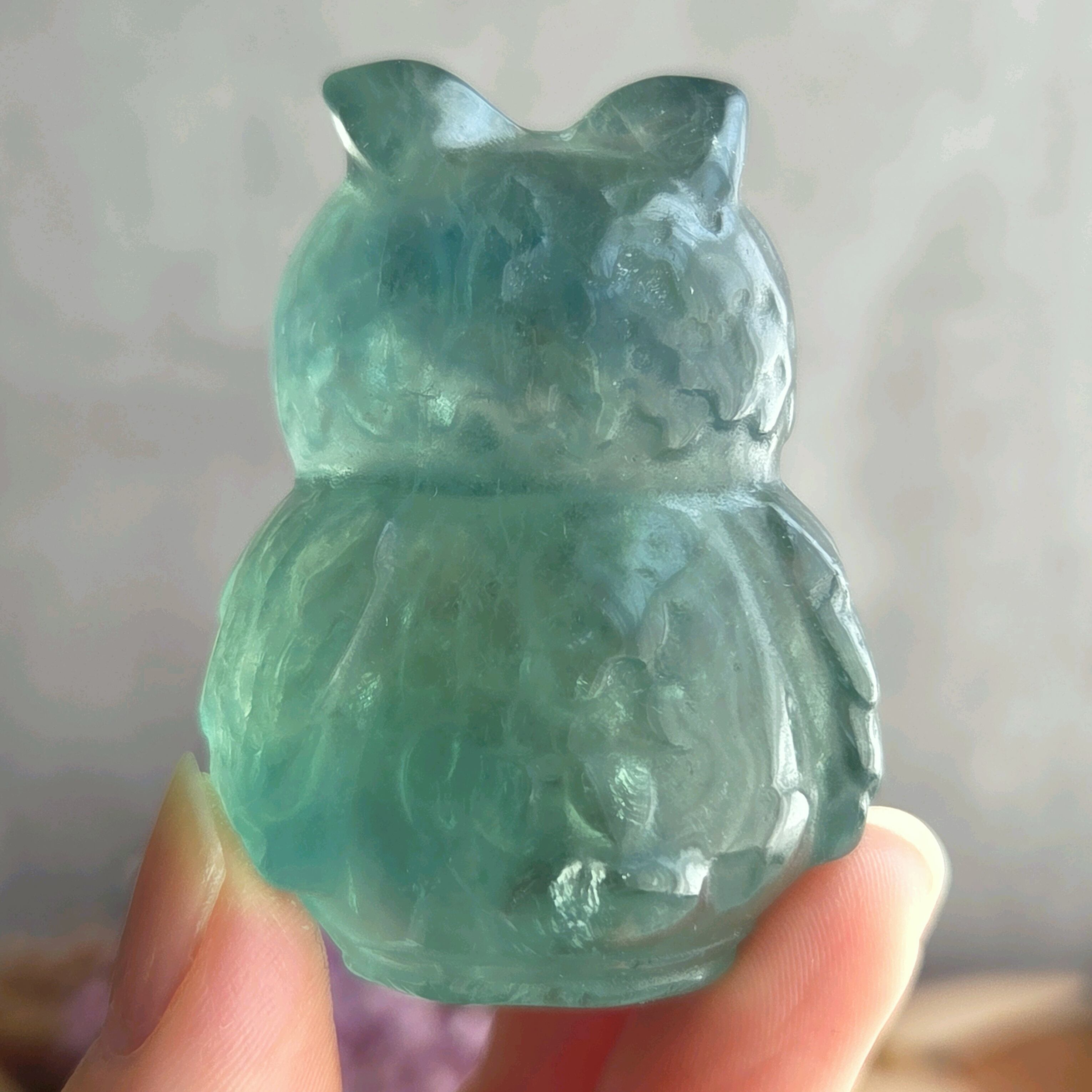 透明感の良いグリーンフローライトのフクロウです。ずんぐりしたフォルムがかわいいです♡