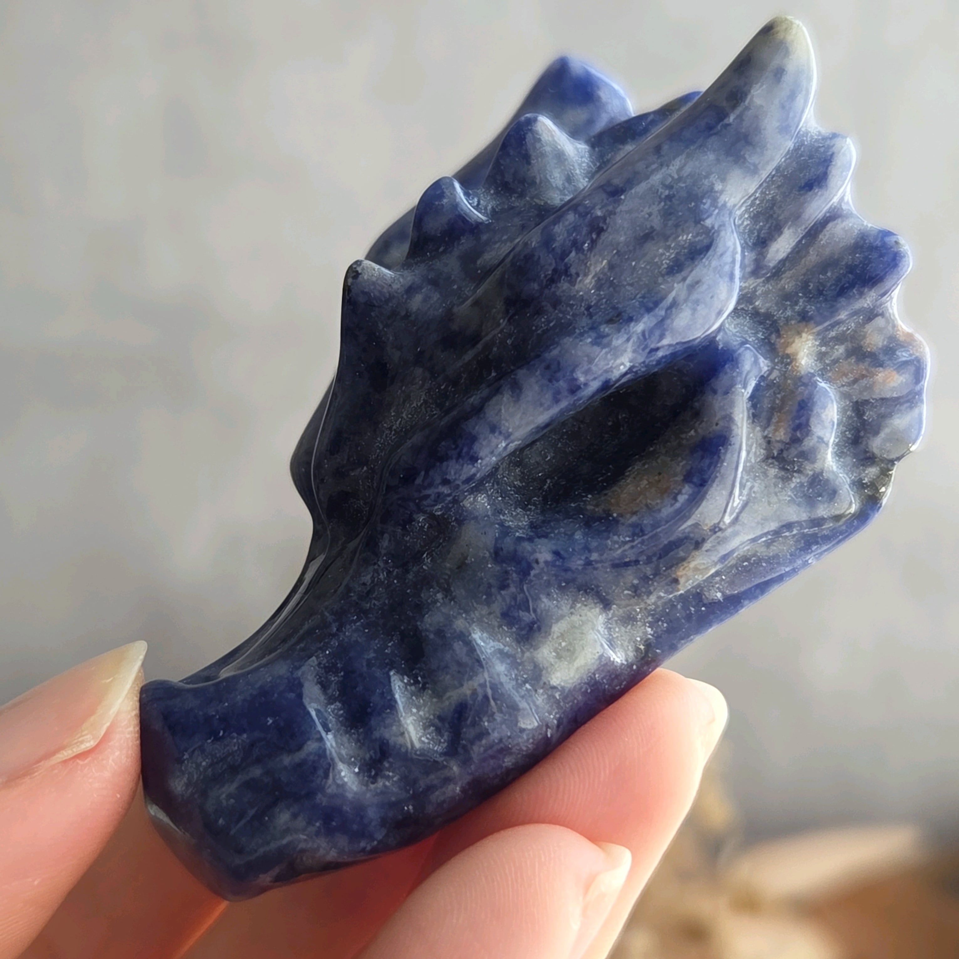 静かなディープブルーが美しいソーダライトのドラゴンヘッドです。