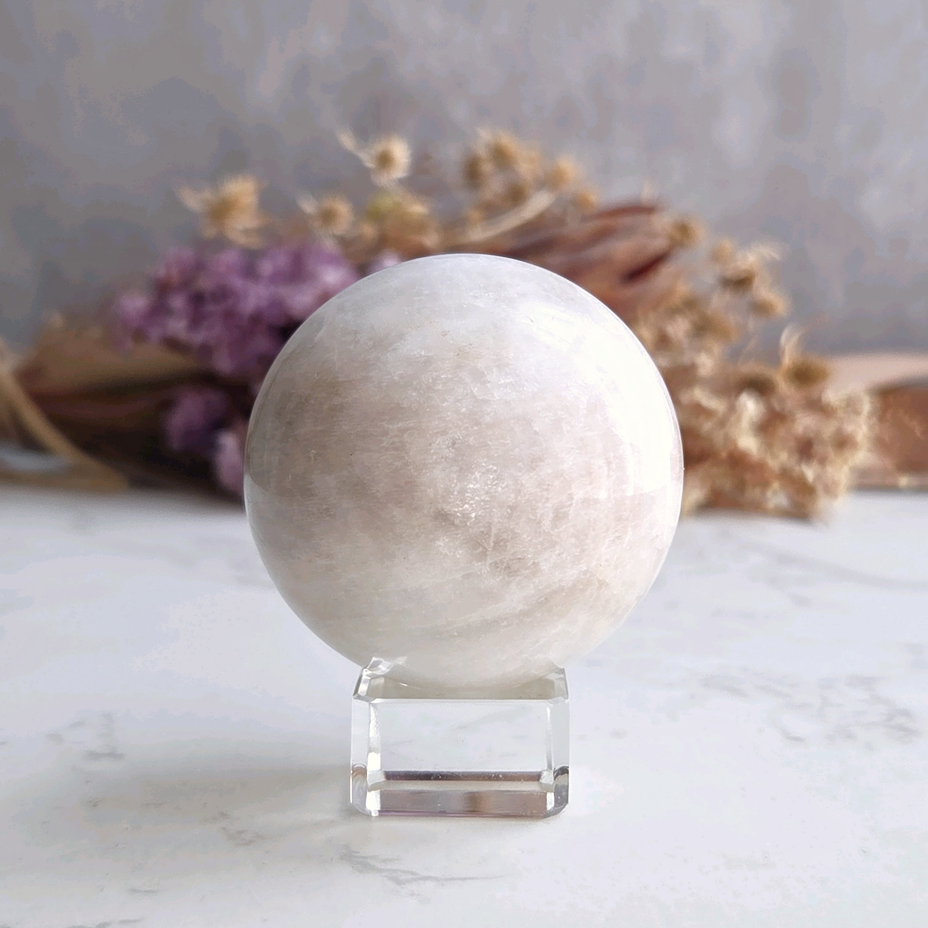 ブルーとシルバーのシラーが美しいムーンストーンのスフィアです。