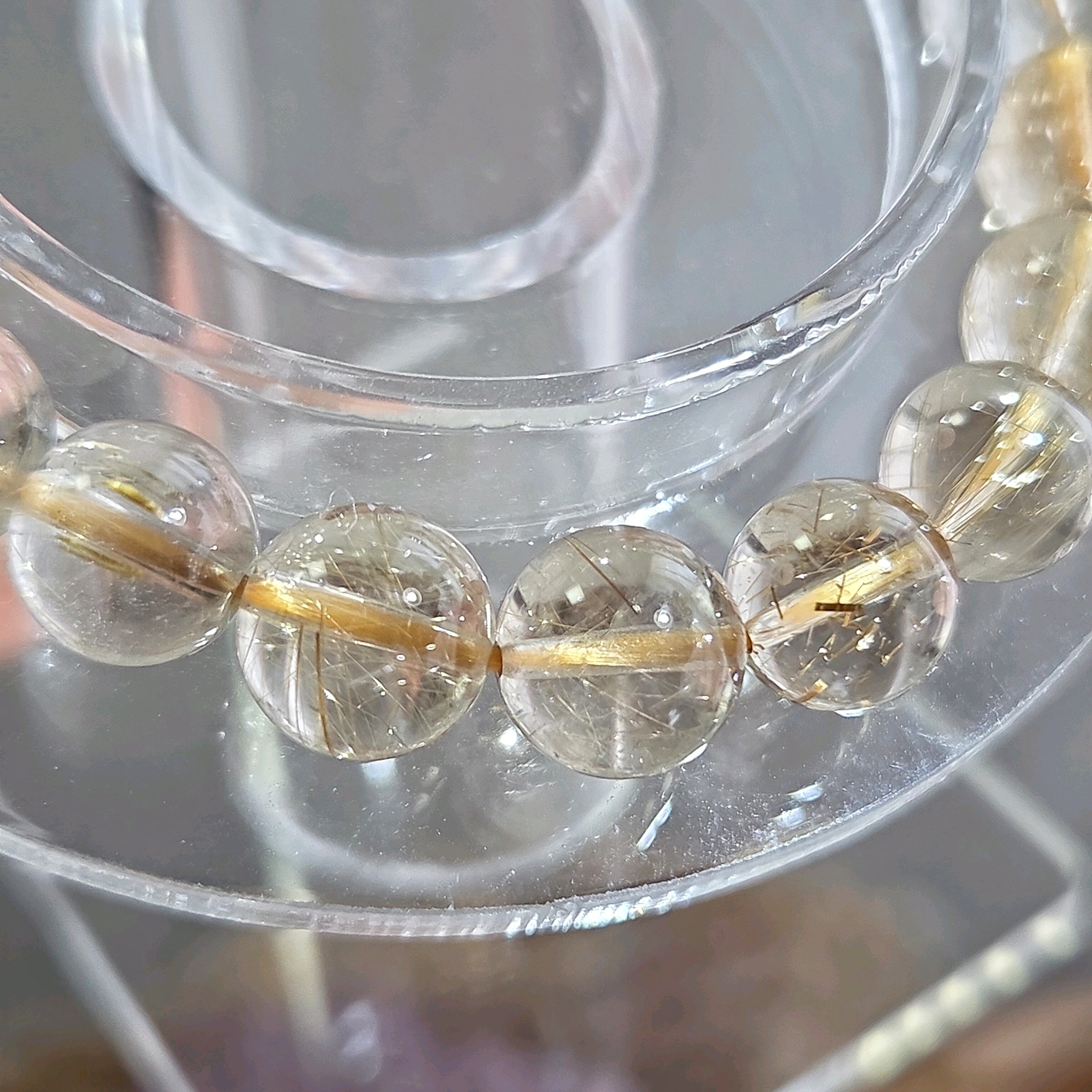 透明感の良いクォーツにキラキラとゴールドルチルが輝きます。
