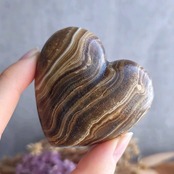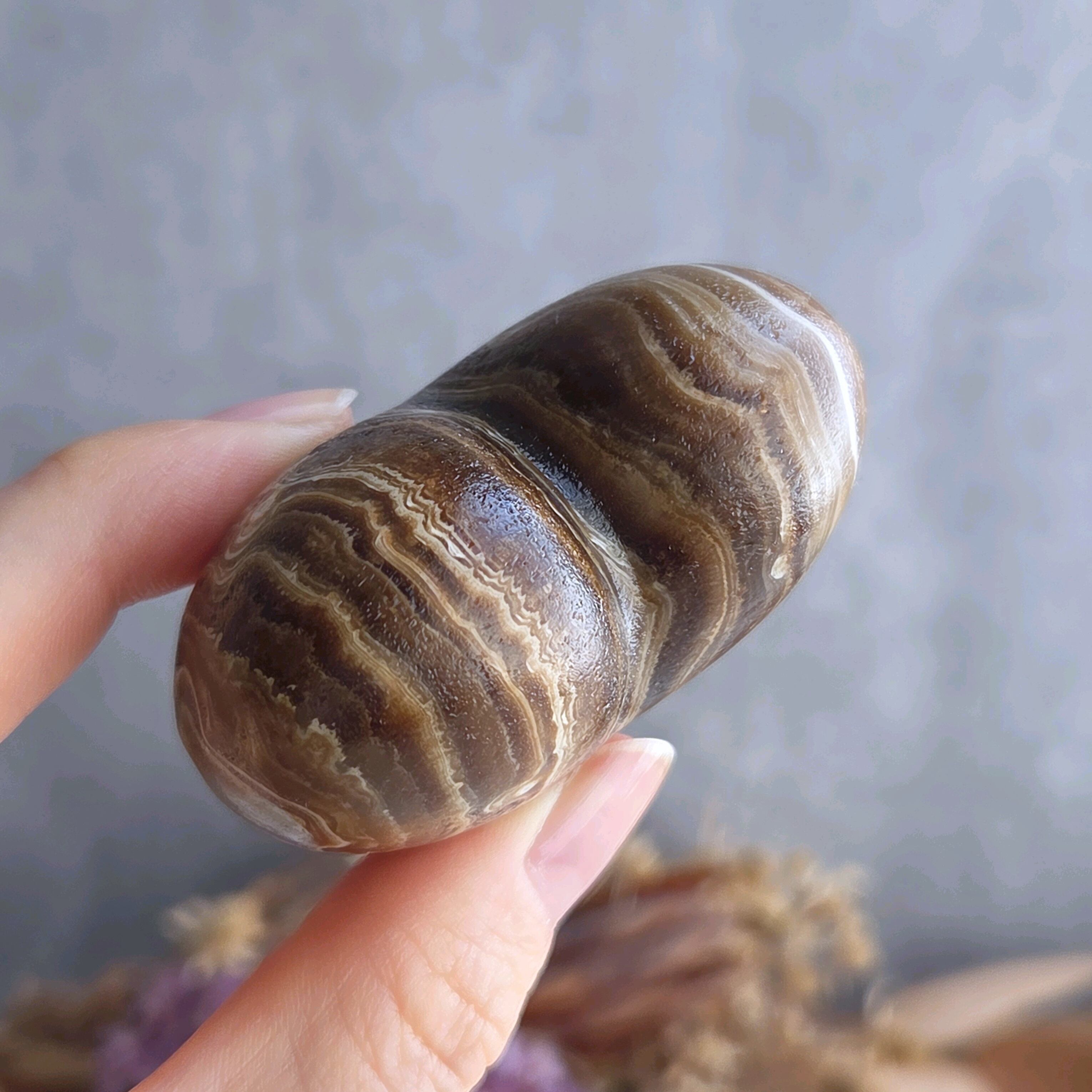 アンバー(琥珀)のような色合いをしていることからその名を冠したカルサイトで、ジオードや美しい縞模様が見られる素敵なストーンです(*^^*)