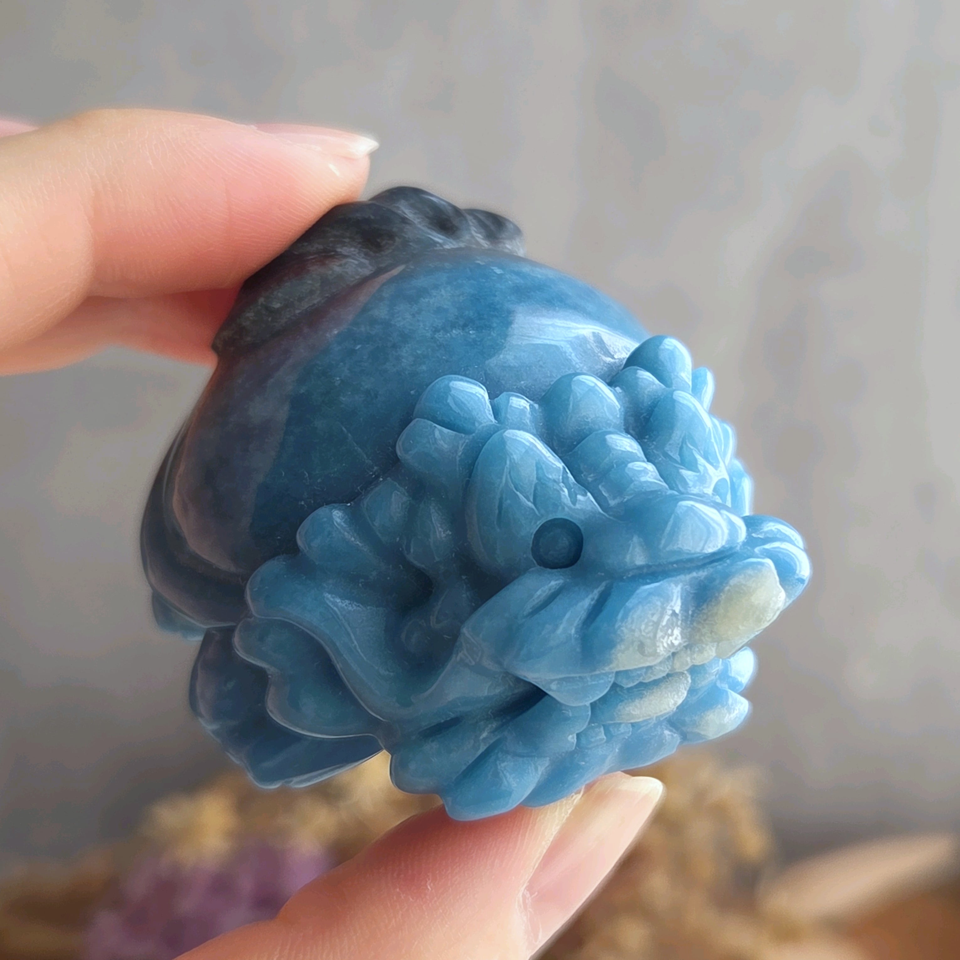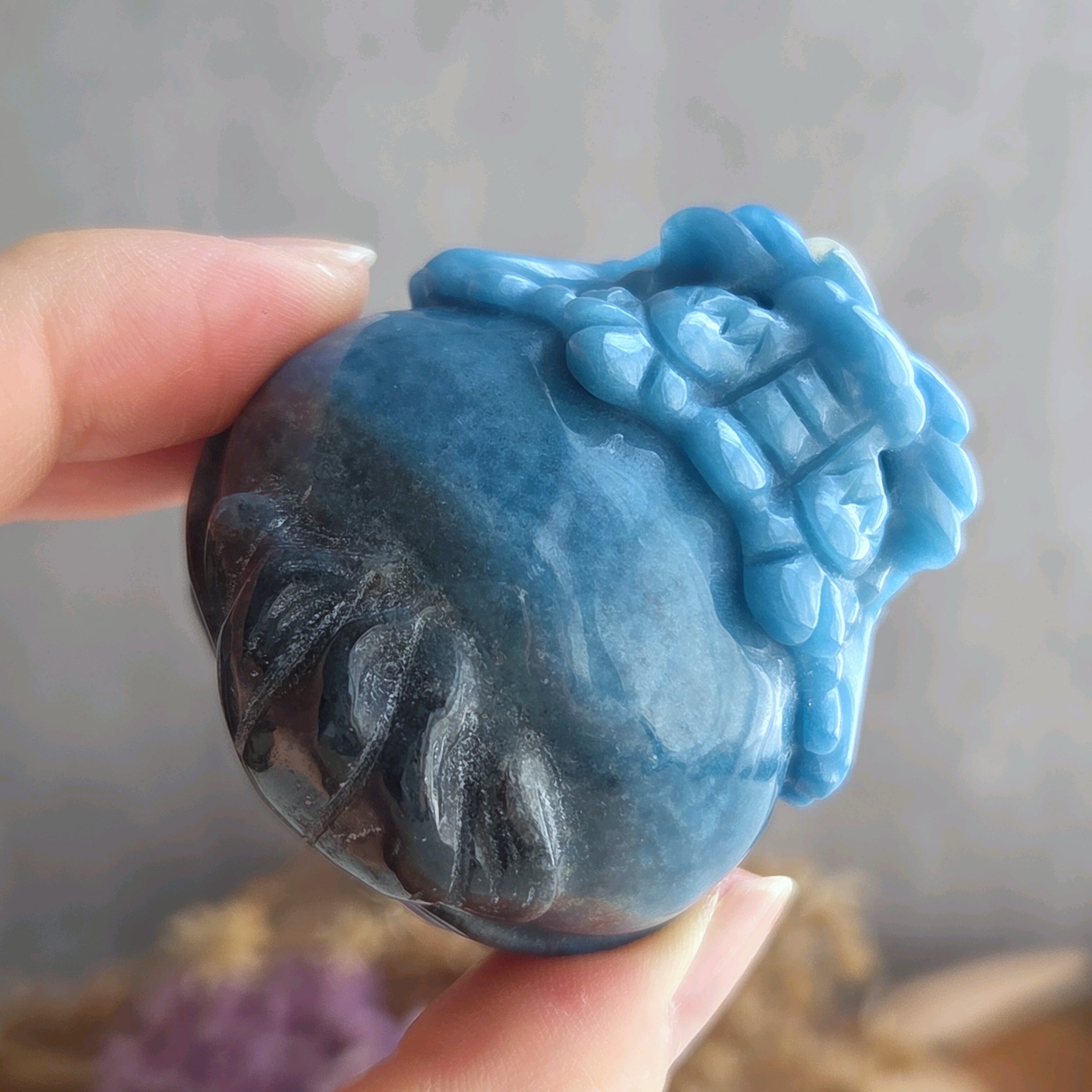 鮮やかなブルーのグラデーションが美しい、高品質なトロレアイトのロングイです。