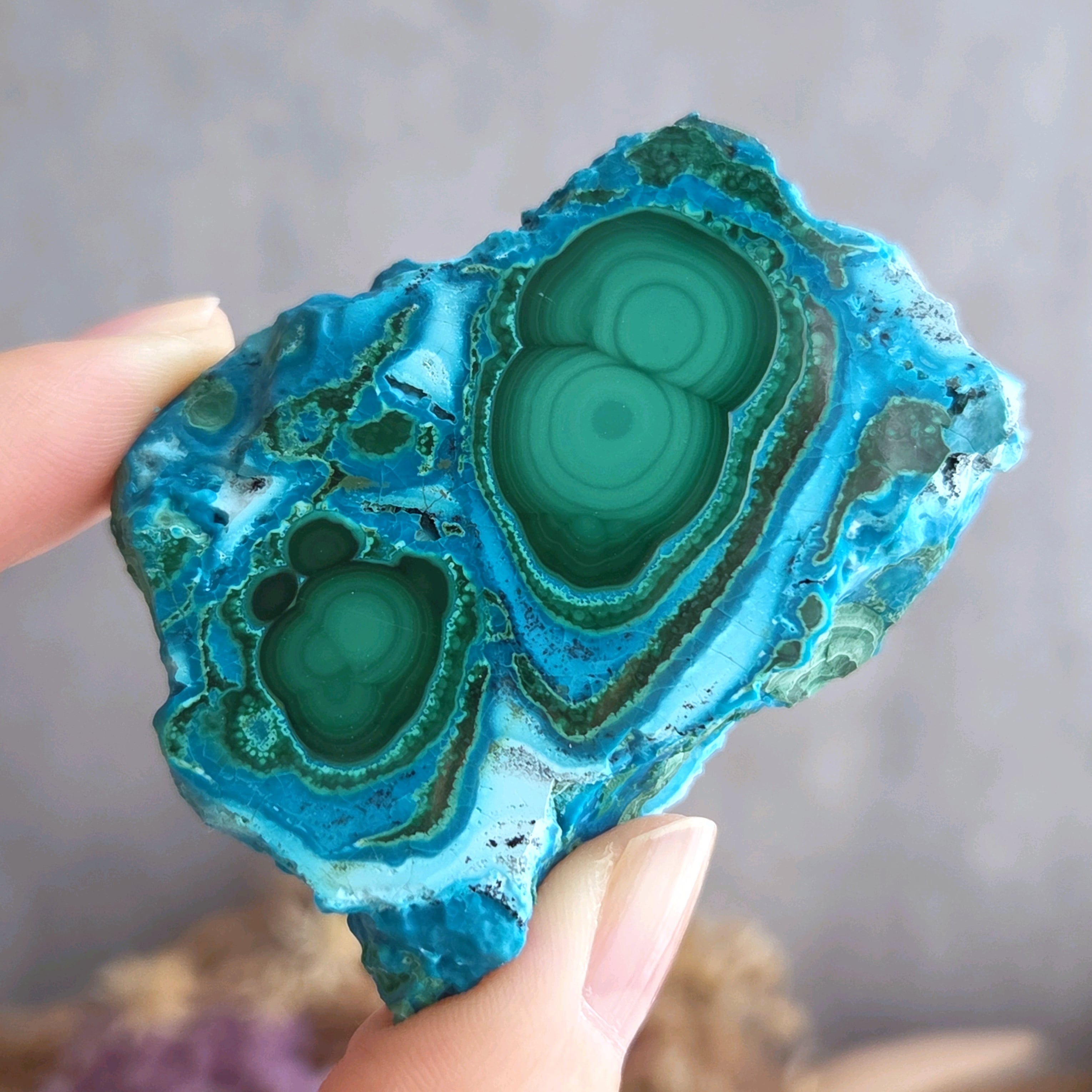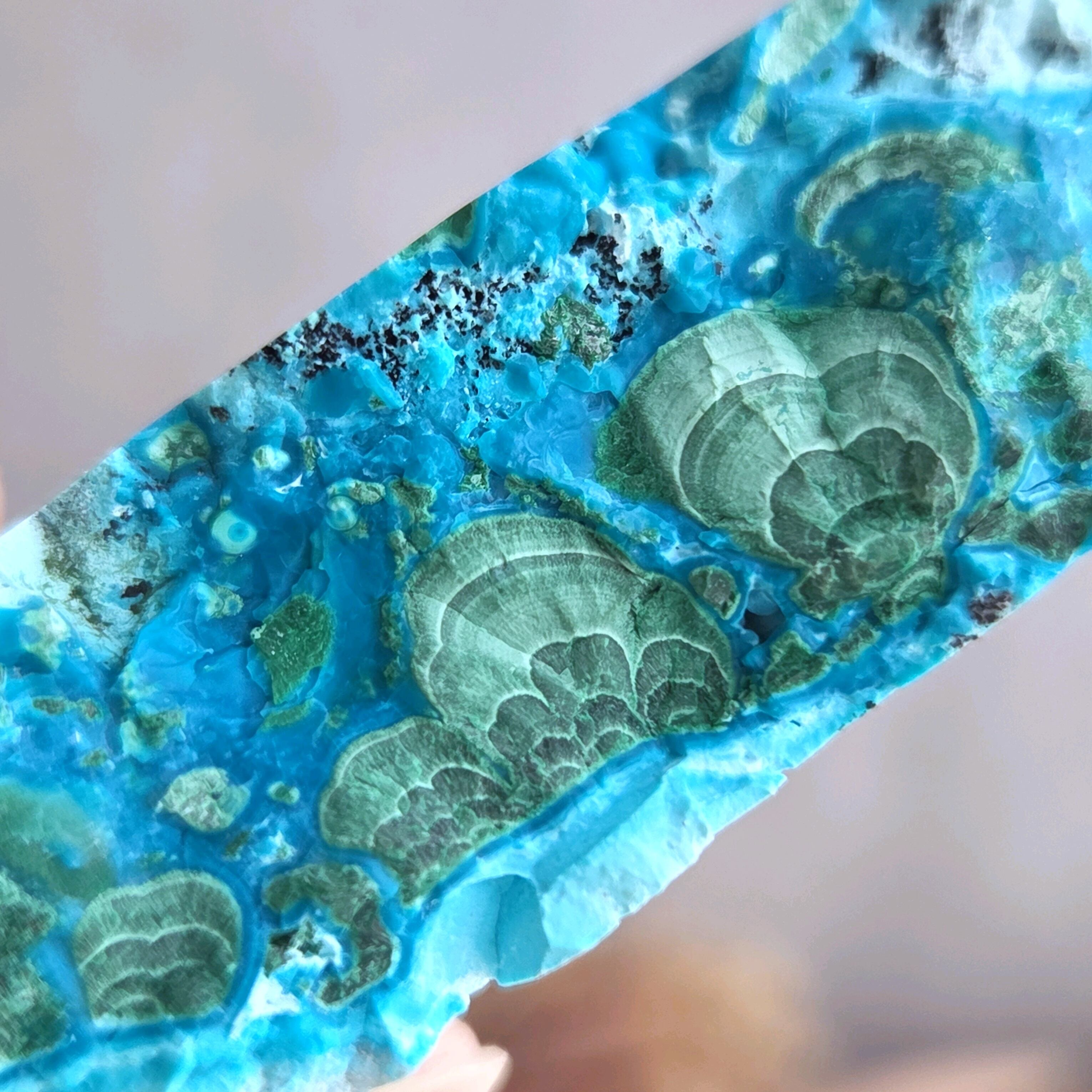 色鮮やかで美しいクリソコラとマラカイトの共生です。