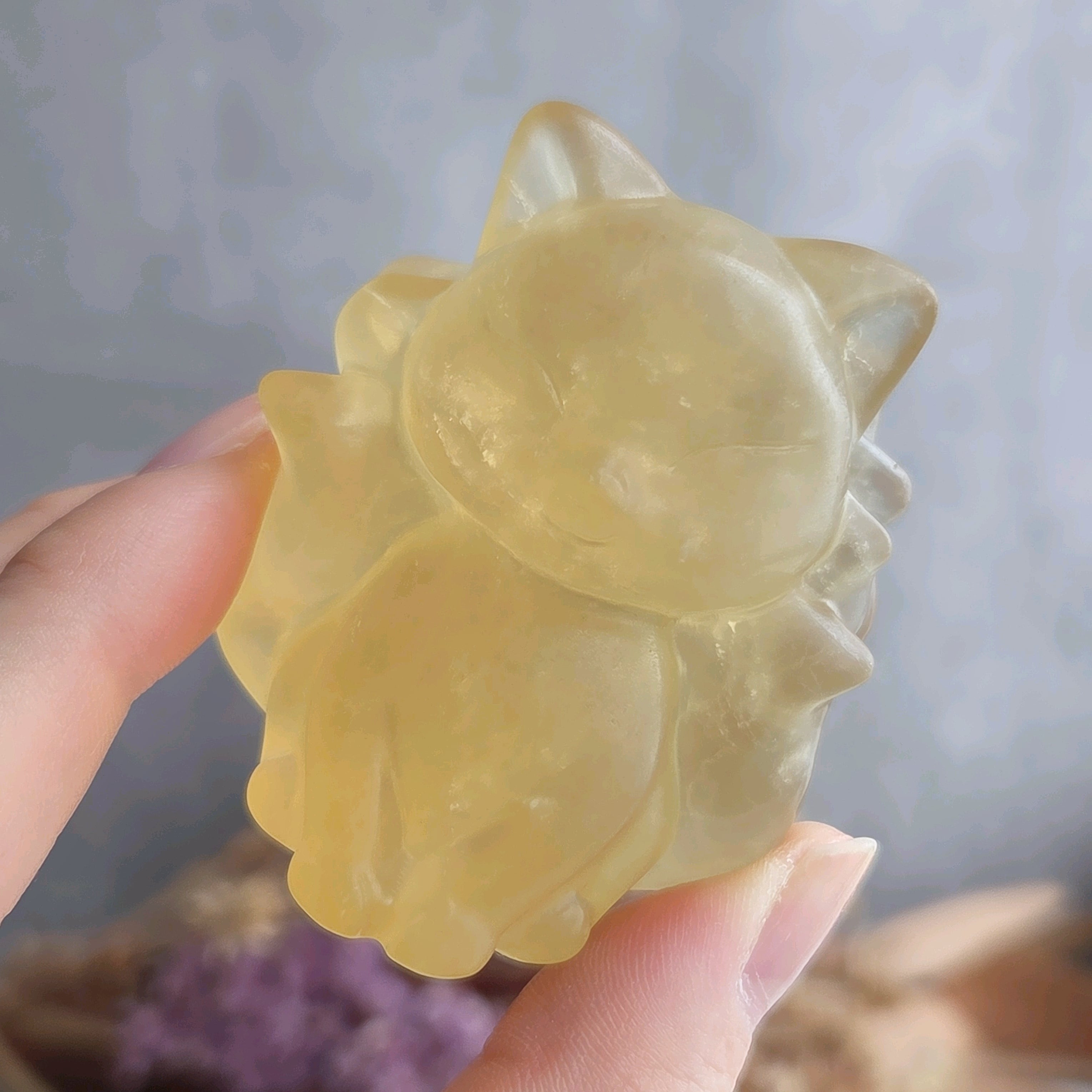 ころんとしたフォルムがかわいらしいイエローフローライトの九尾ちゃんです♡