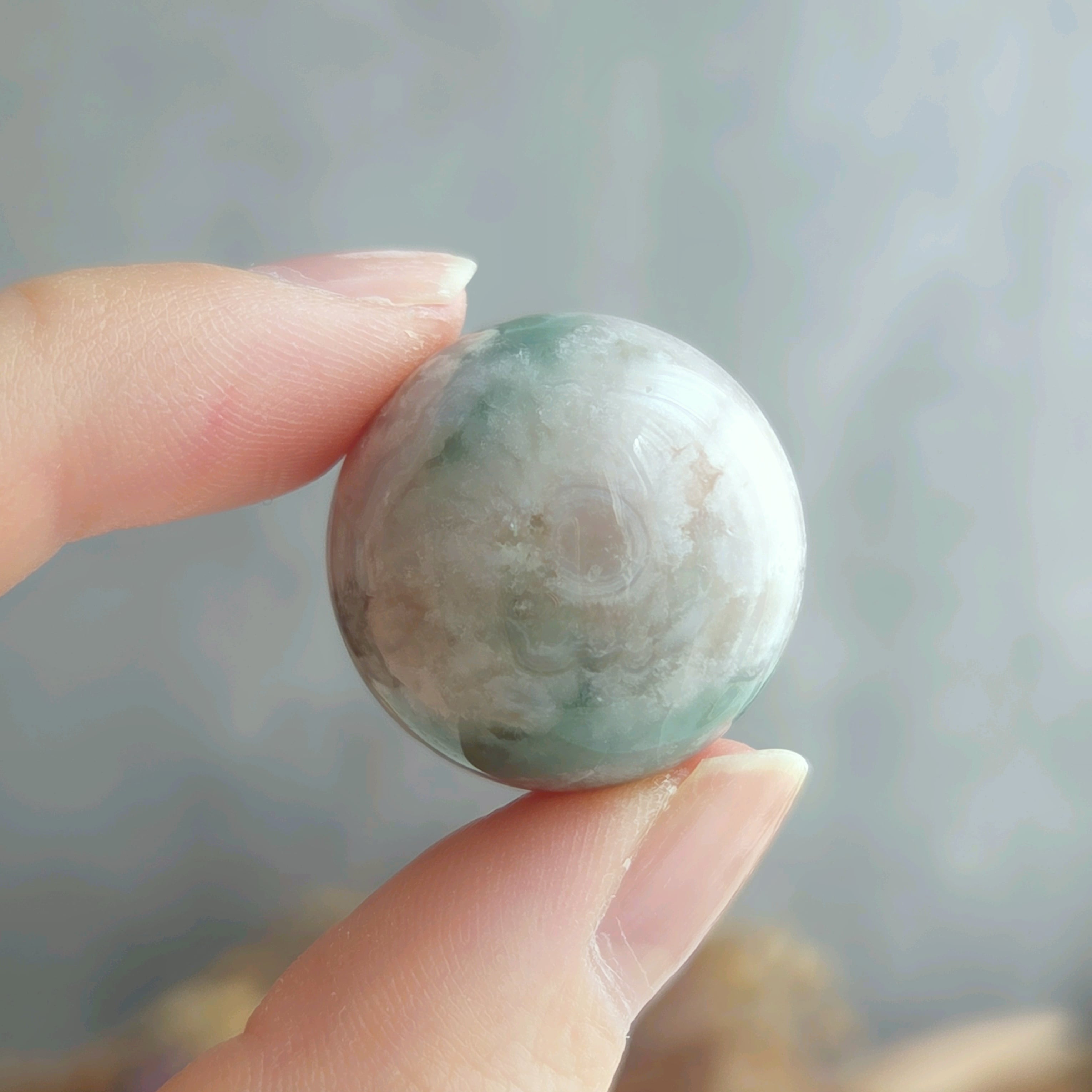 グリーンが鮮やかな高品質の桜瑪瑙スフィアです♡