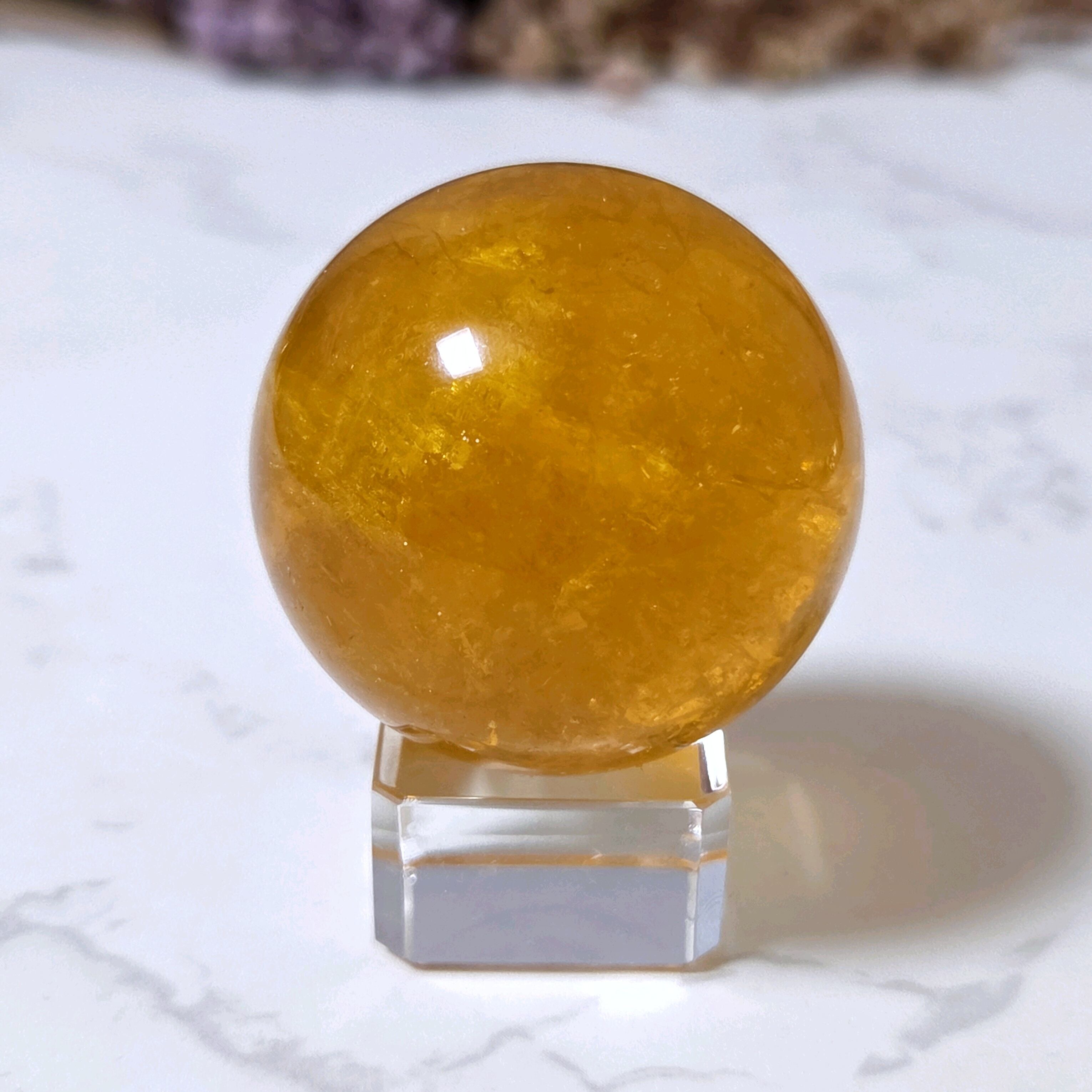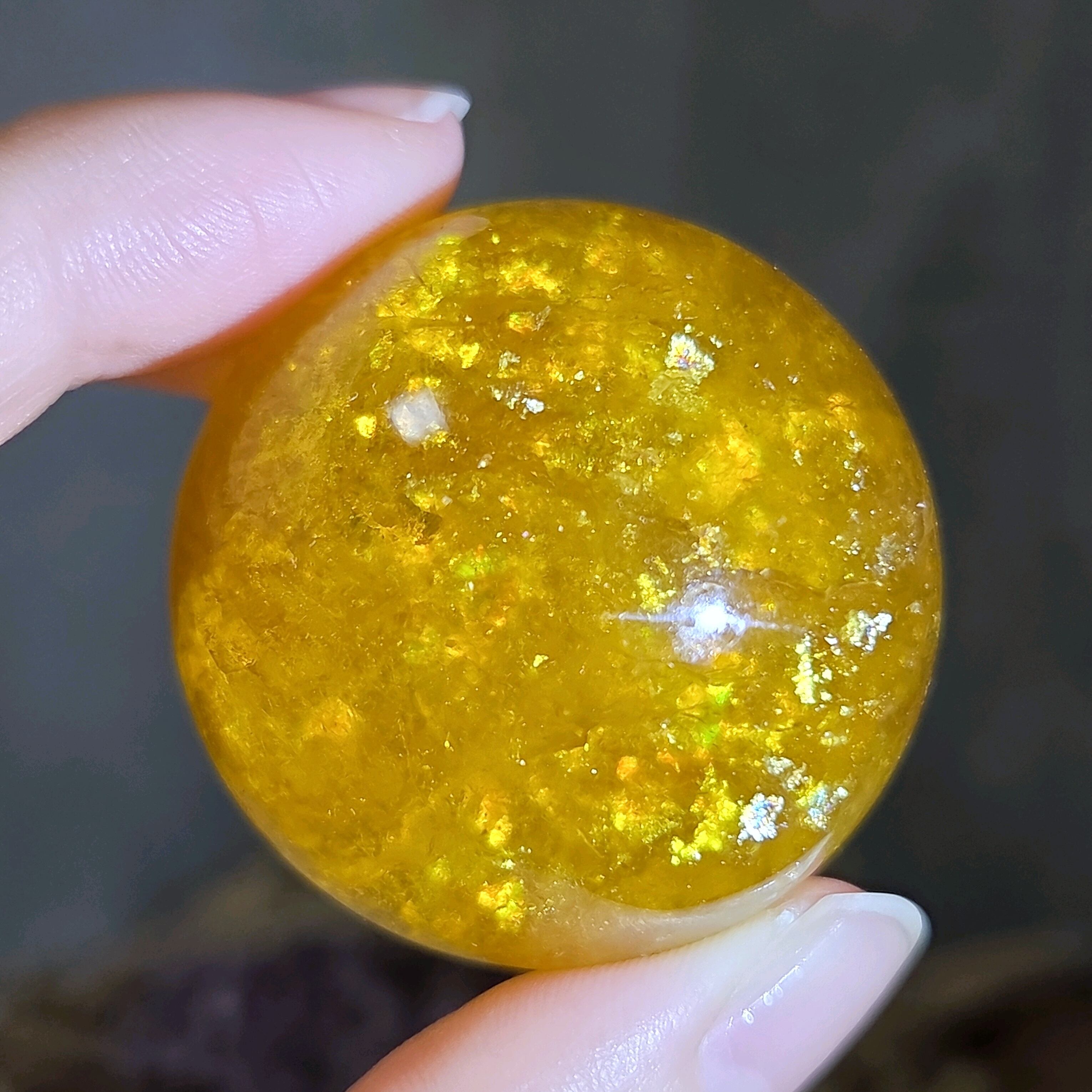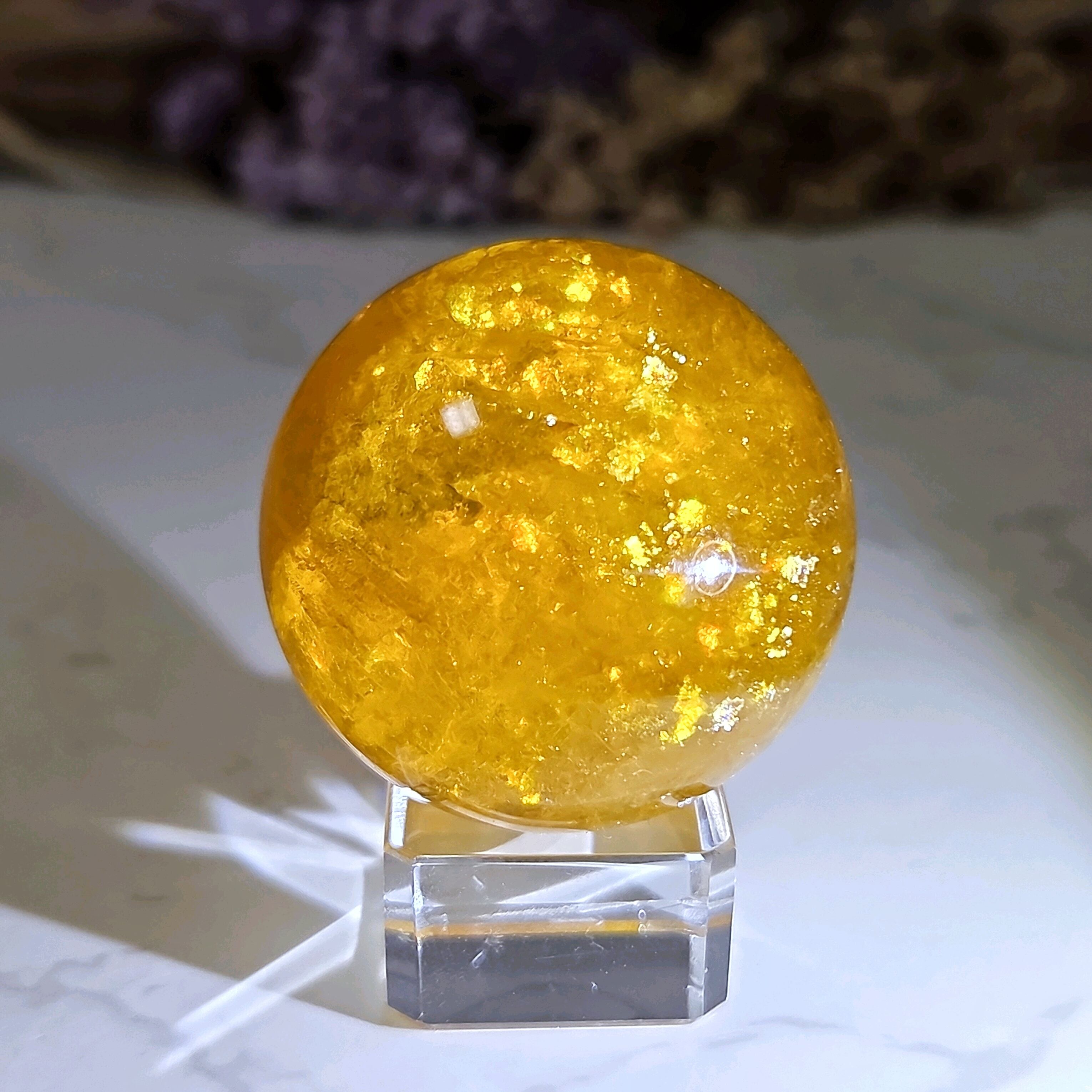 こっくりイエローのフローライトにギラギラマイカが輝きます♡子どもの頃に遊んだラメ入りのスーパーボールを思い出します(*^^*)