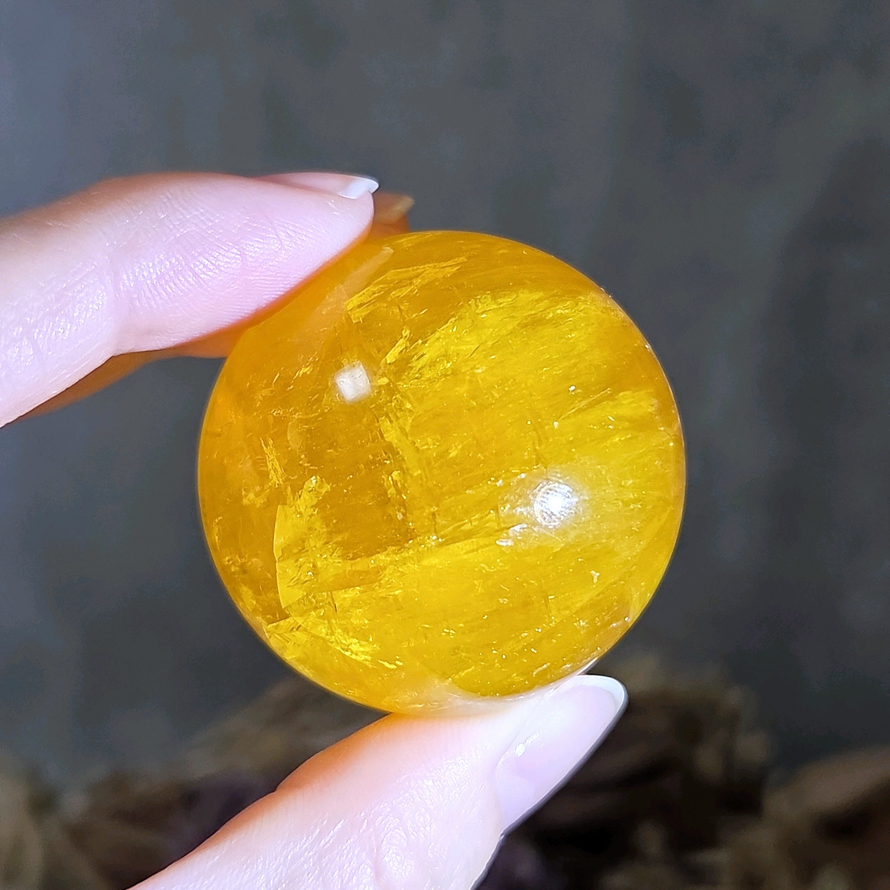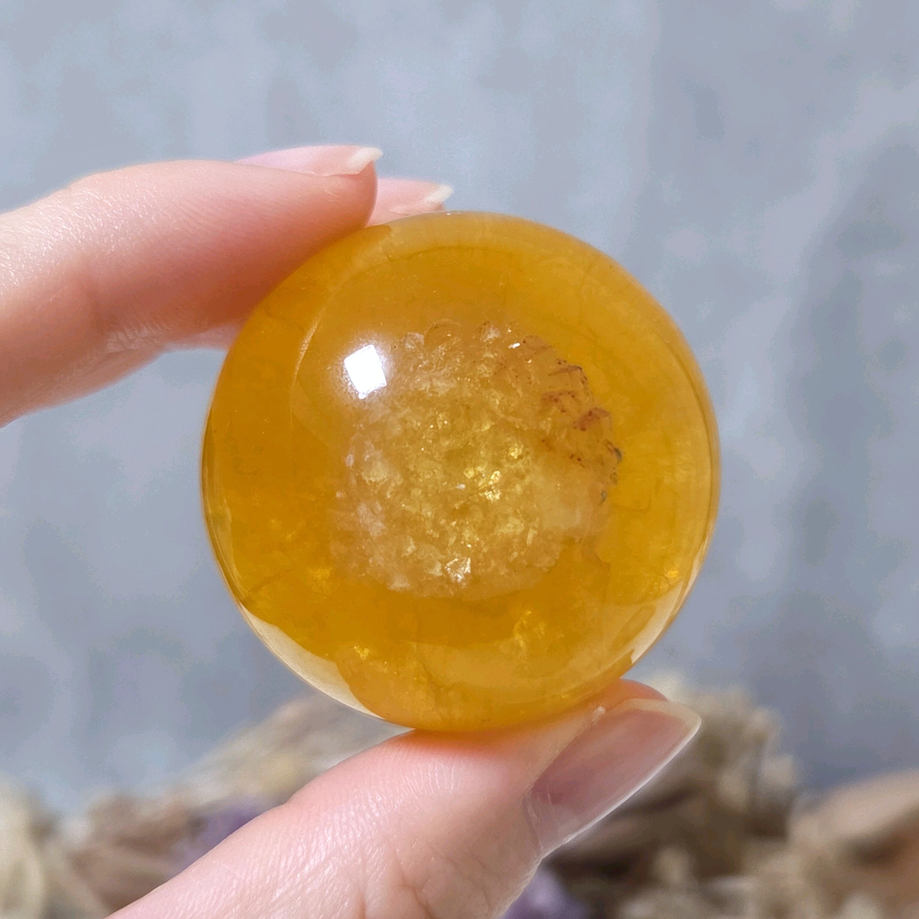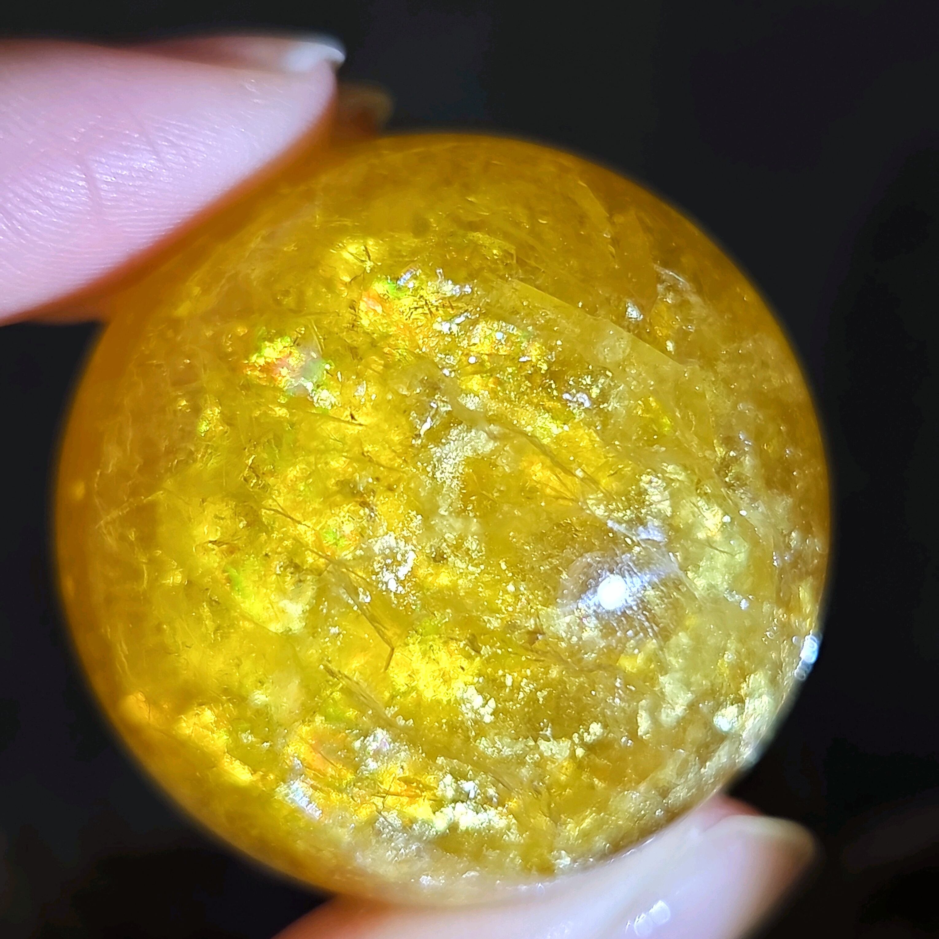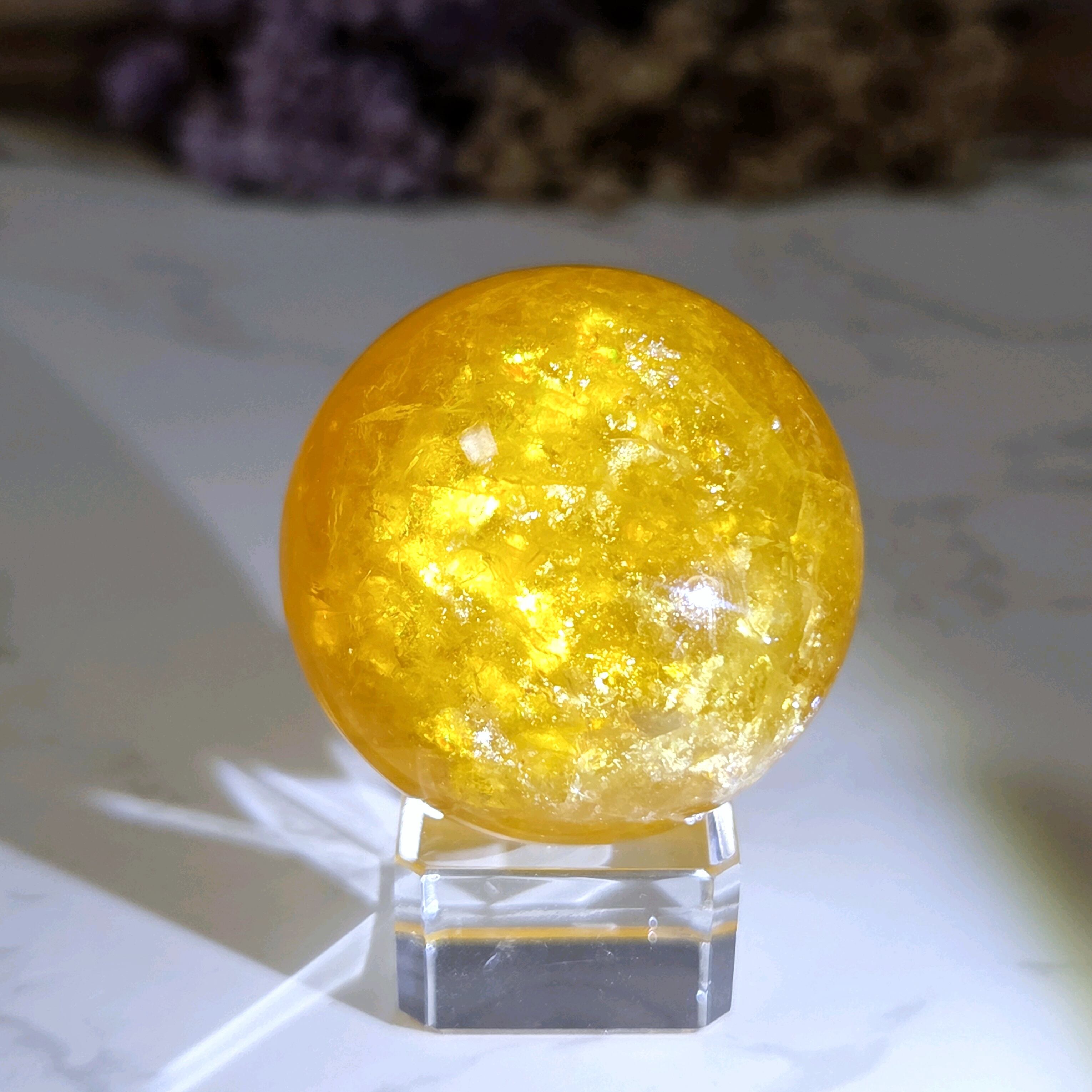 こっくりイエローのフローライトにギラギラマイカが輝きます♡子どもの頃に遊んだラメ入りのスーパーボールを思い出します(*^^*)