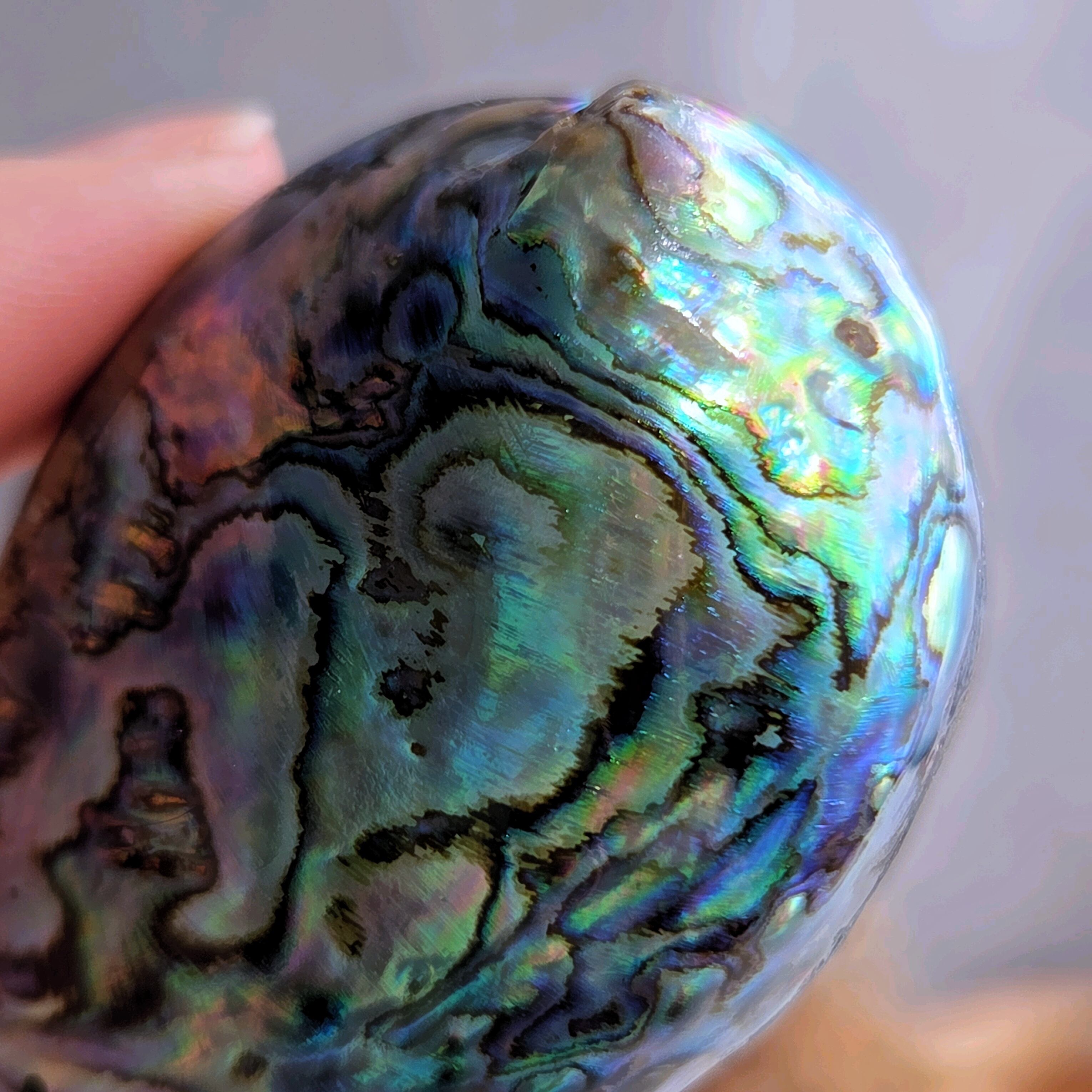 アバロンシェルは虹色の輝きを持つアワビの貝殻です。グリーンを基調とした美しいグラデーションから日本では「孔雀貝」とも呼ばれています。
