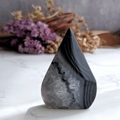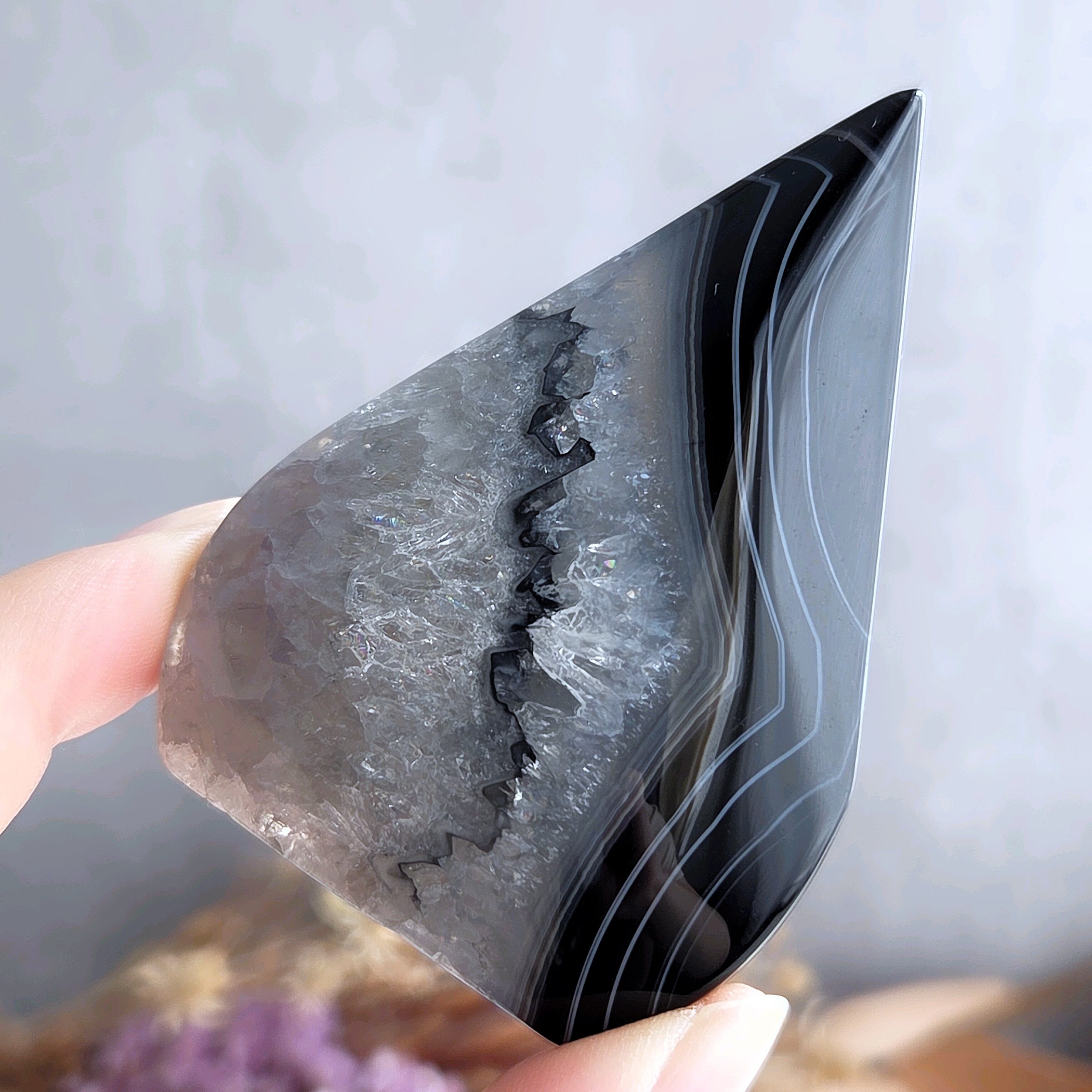 ザクザク結晶と黒のコントラストが美しいブラックアゲートのフレイムです。