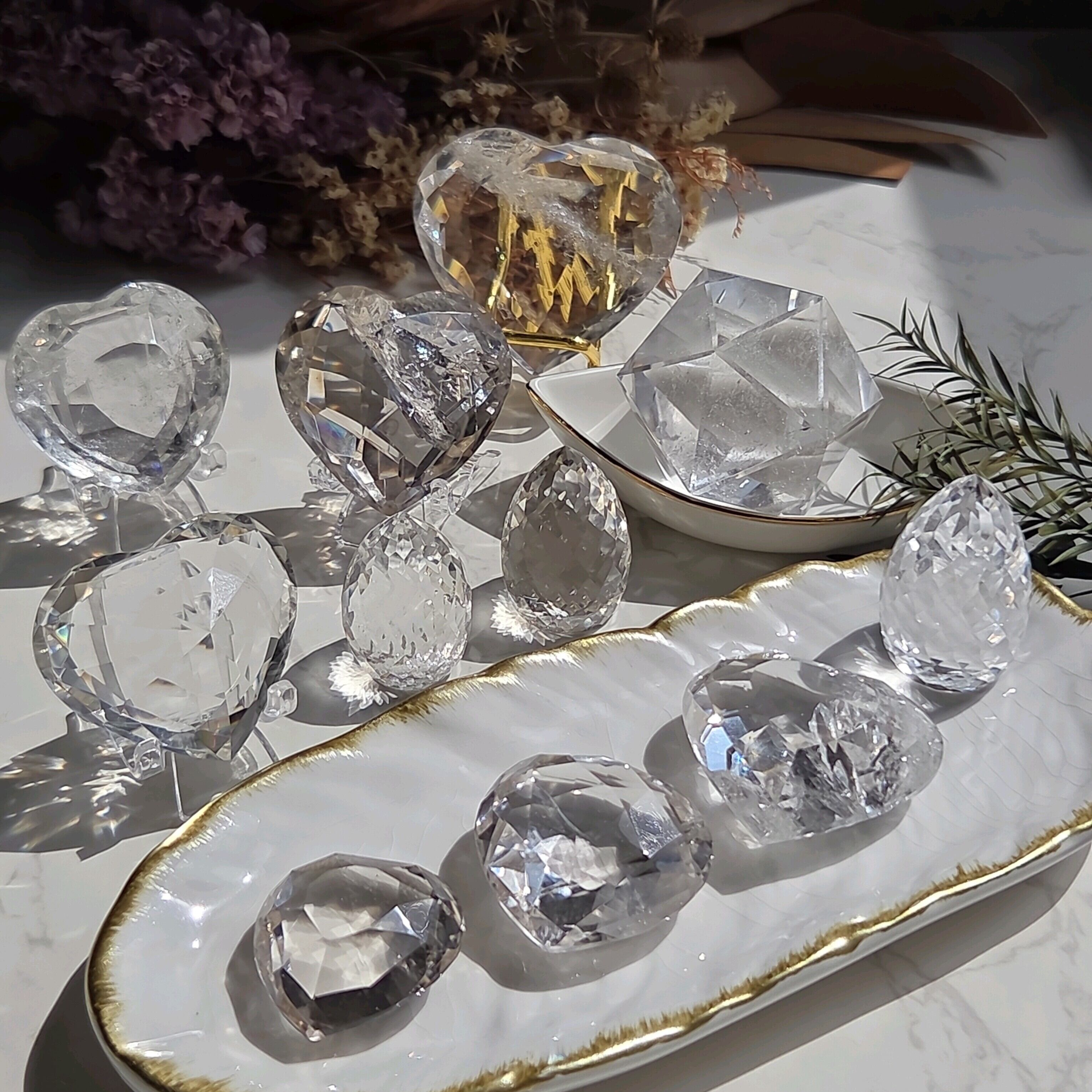 透明度の高いクリスタルに職人さんがひとつひとつ丁寧なファセットカットを施しています。