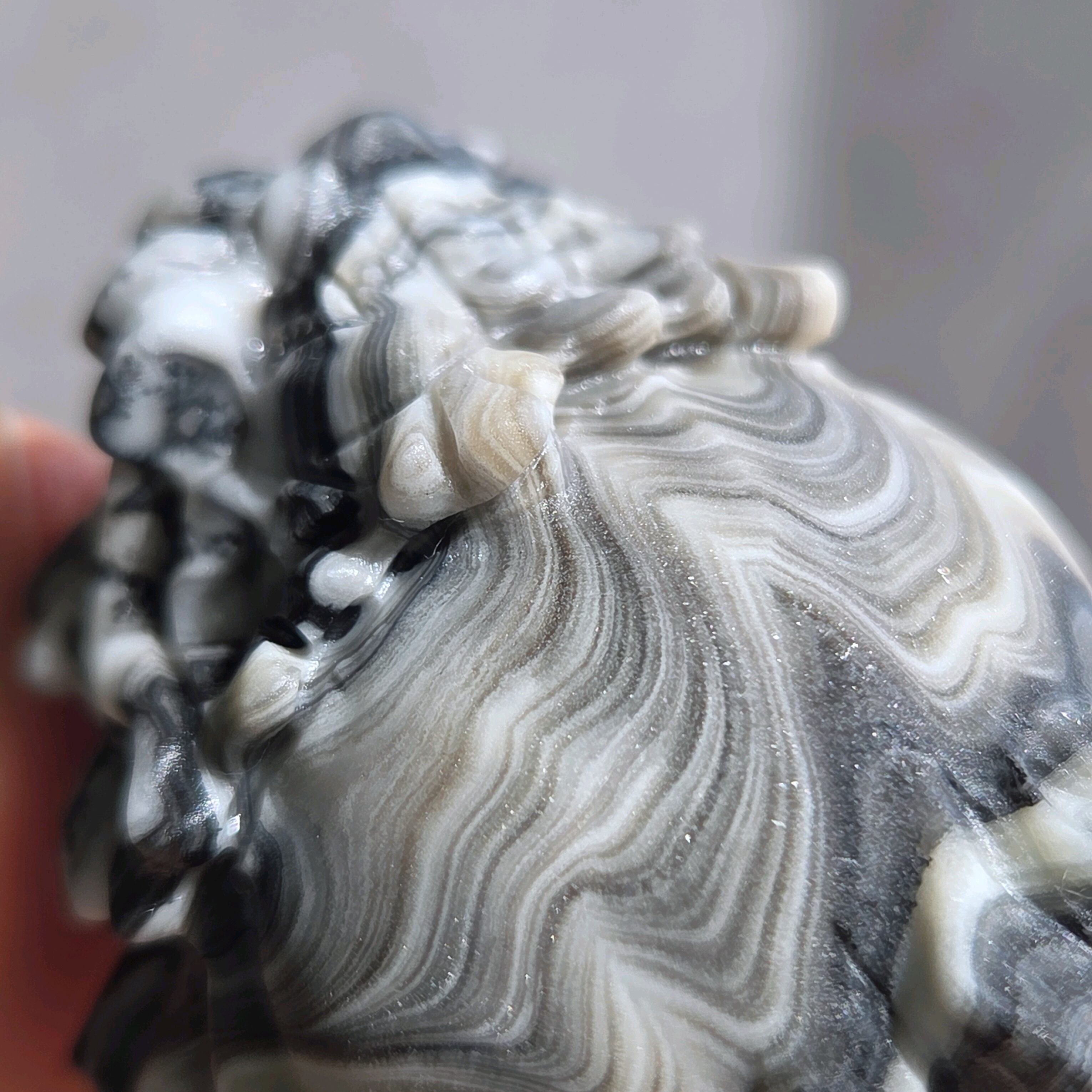 ラテアートのような縞模様が美しいカルサイトのロングイです。
