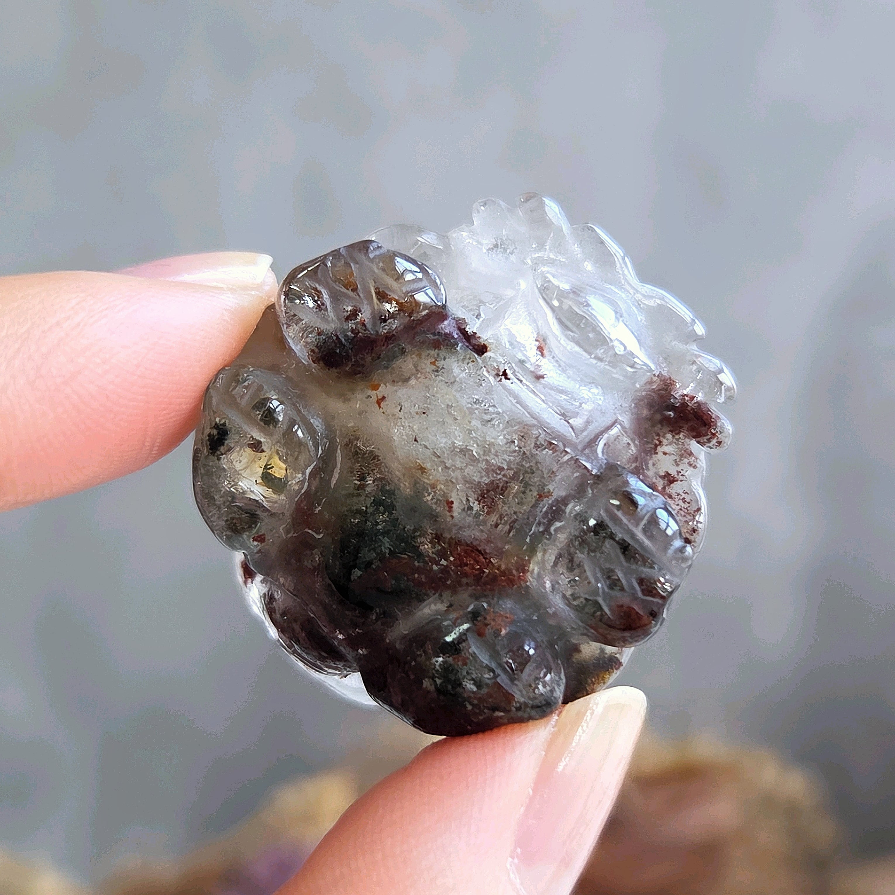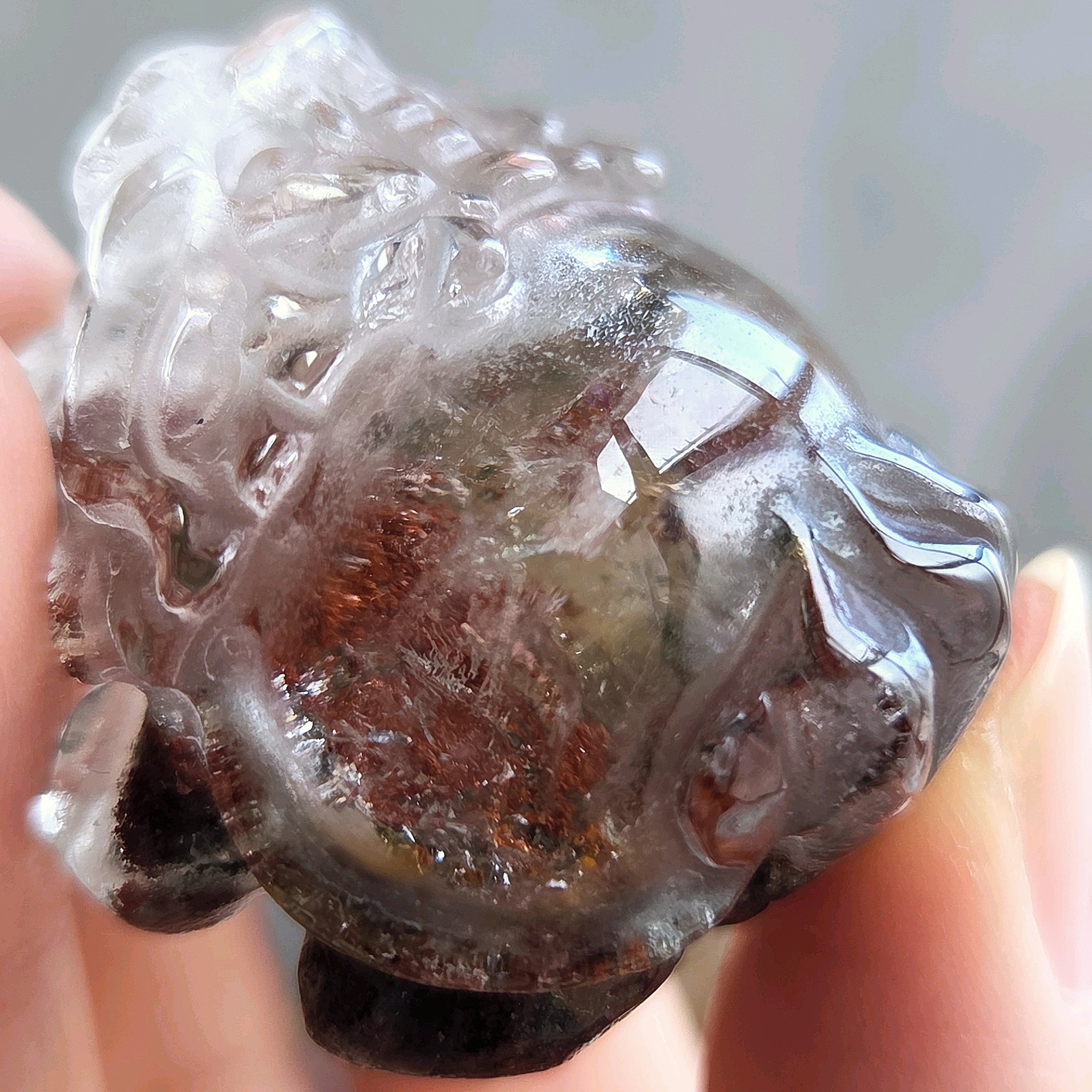 レッド系強めで、つい何度も覗き込みたくなる素敵な庭園がひろがるロングイです。クォーツの透明感も良く、虹もキラキラ輝きます(*^^*)