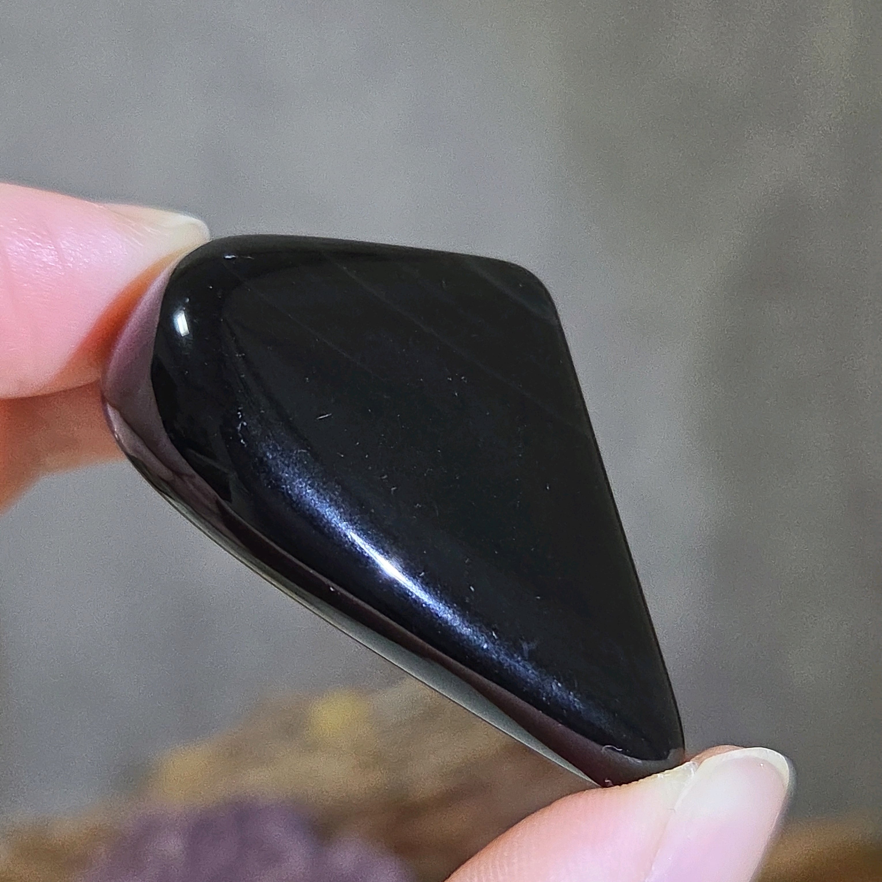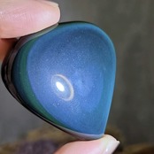 光を当てるとグリーンやパープルのしましまシラーが現れる不思議なオブシディアンです。