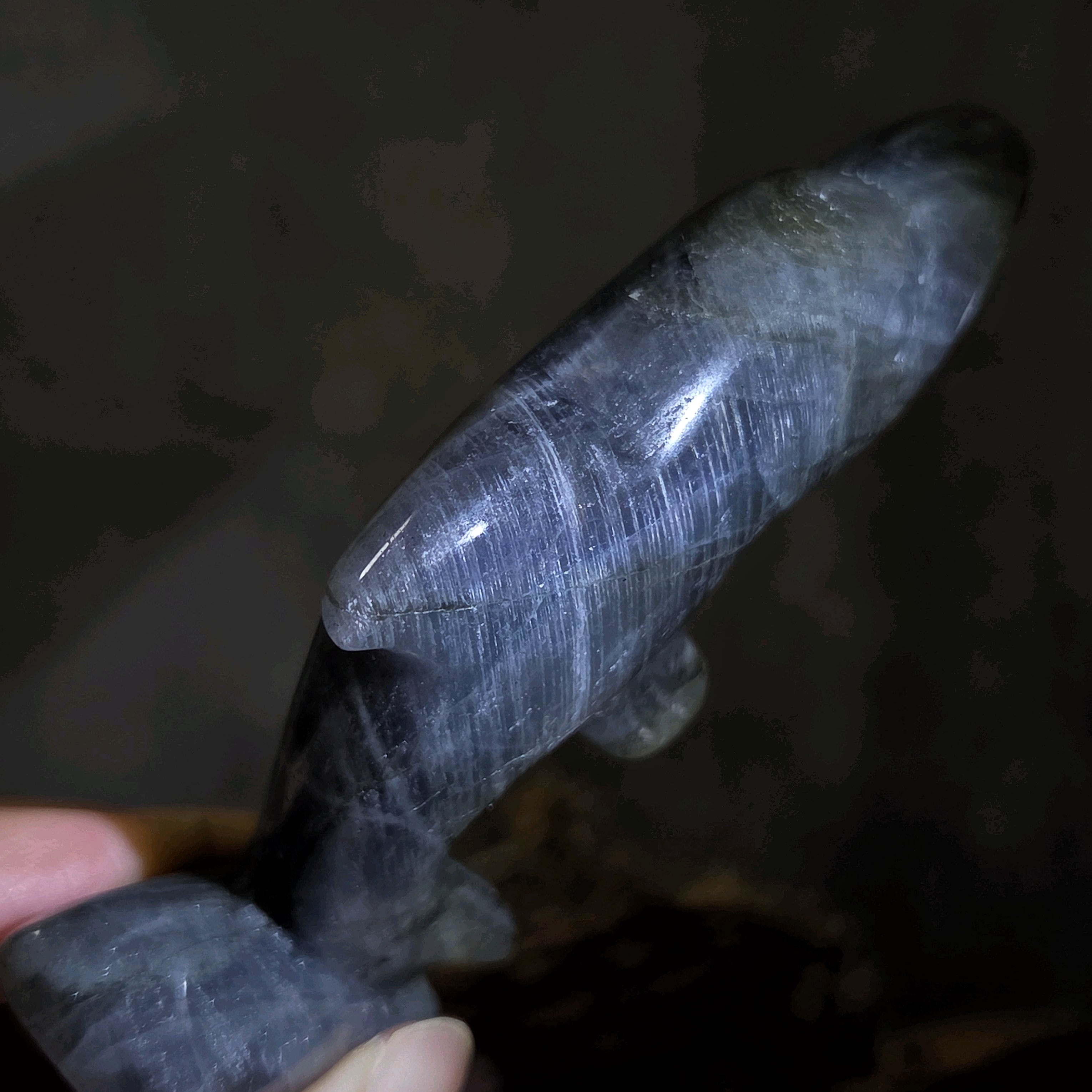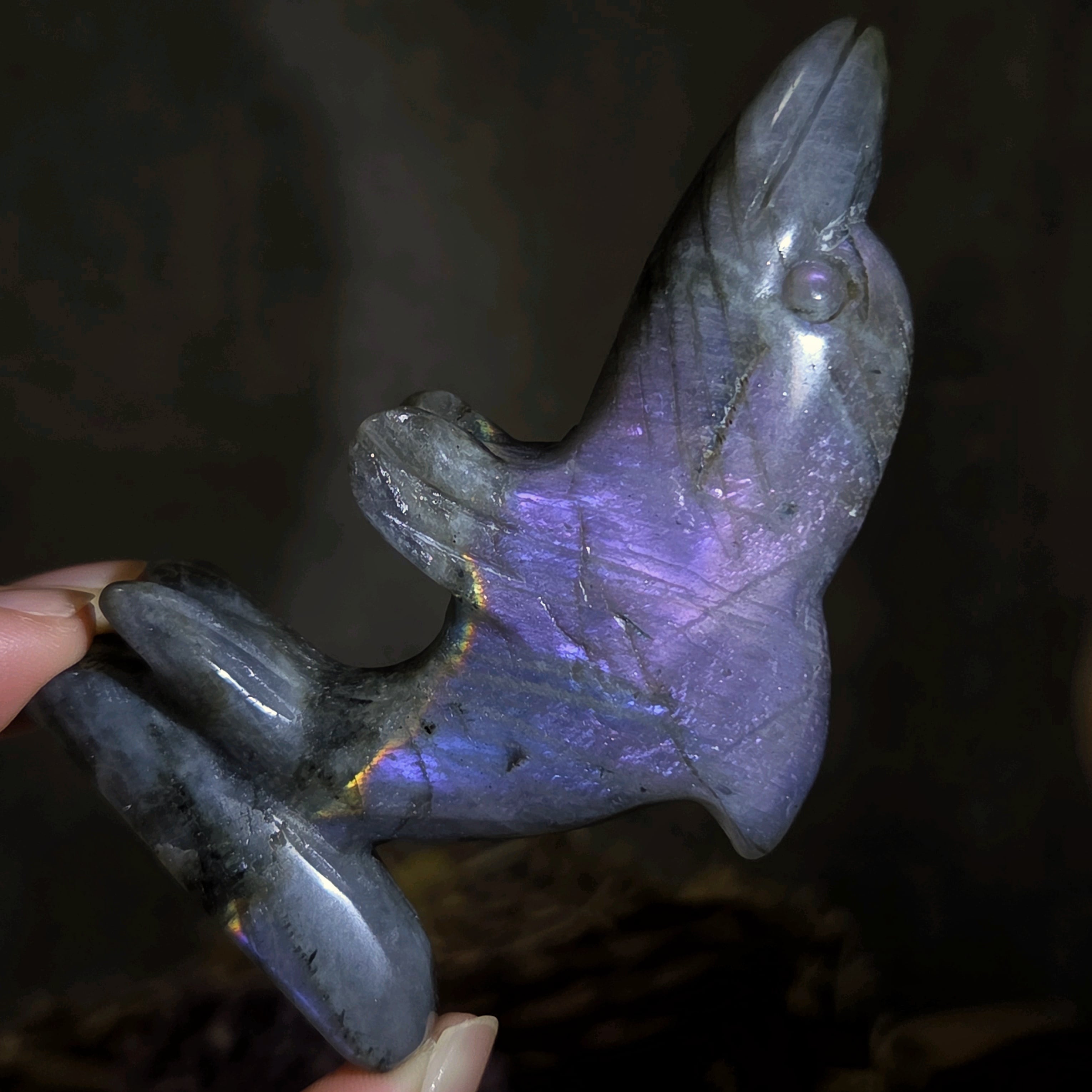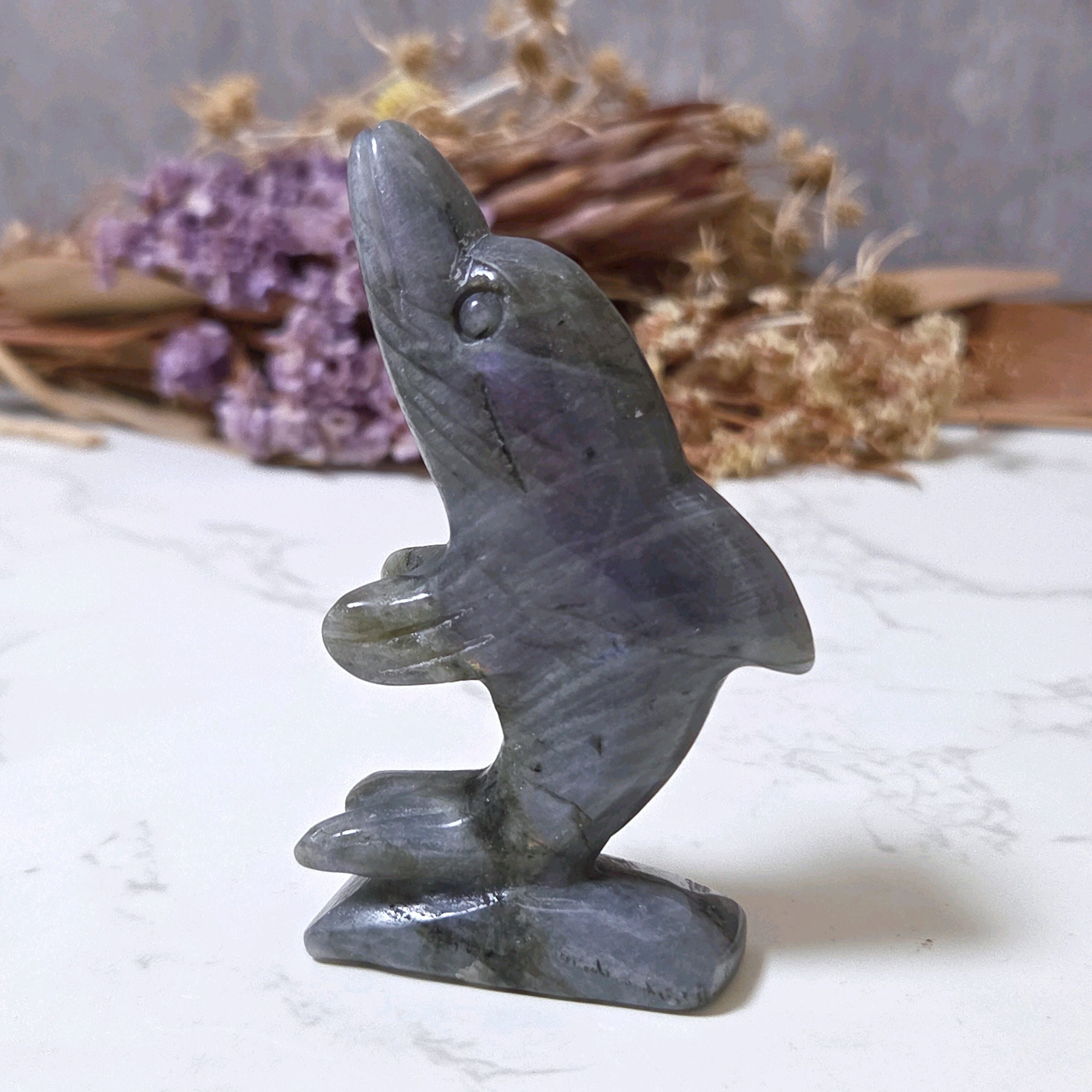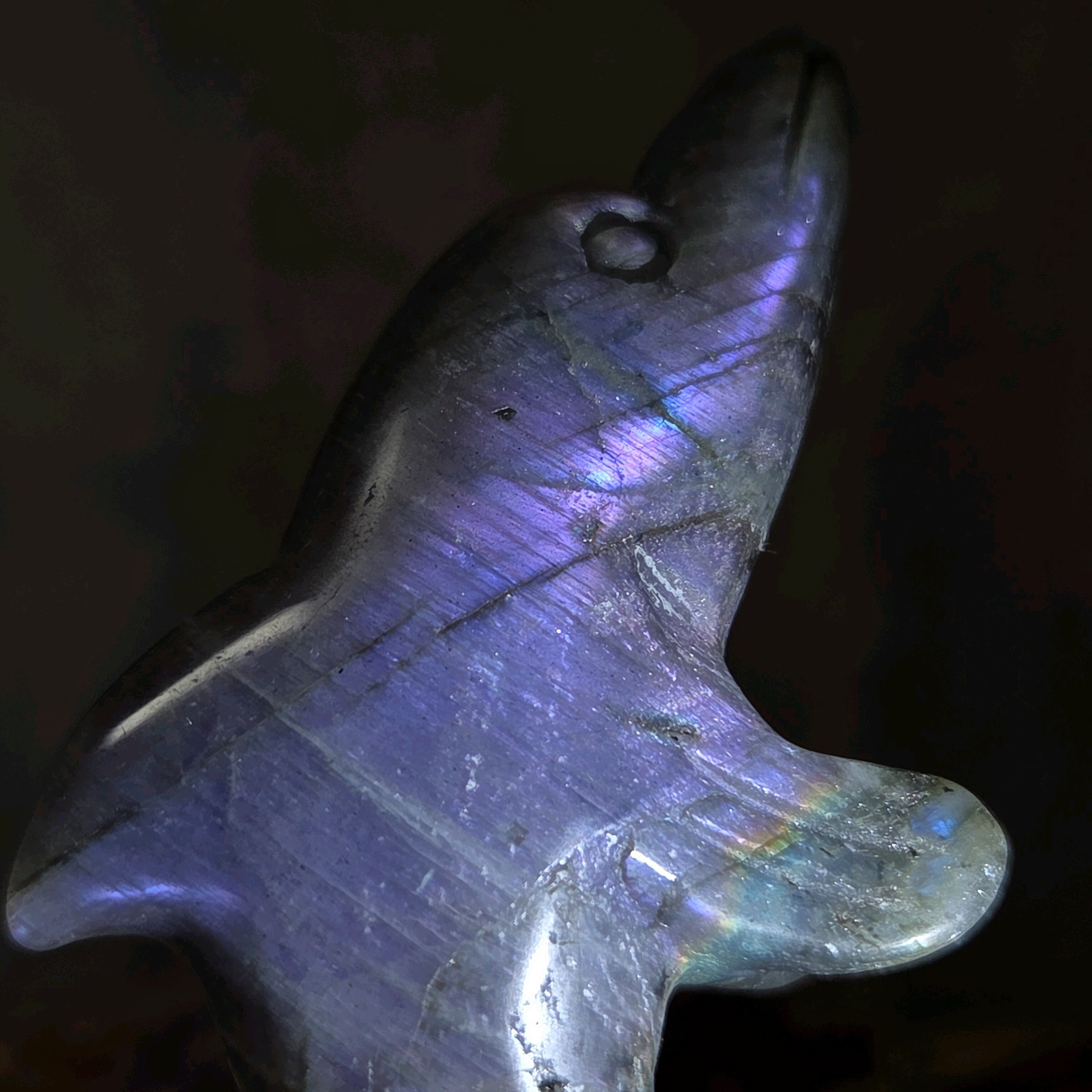ピンク~パープルのシラーが綺麗なラブラドライトのイルカです♡