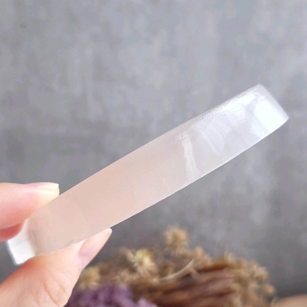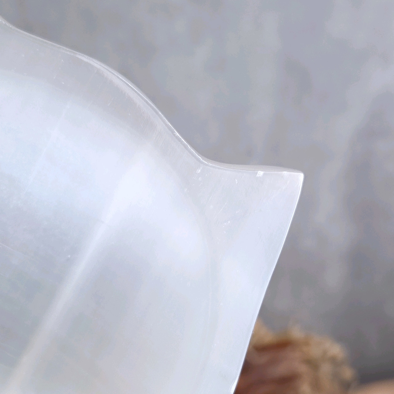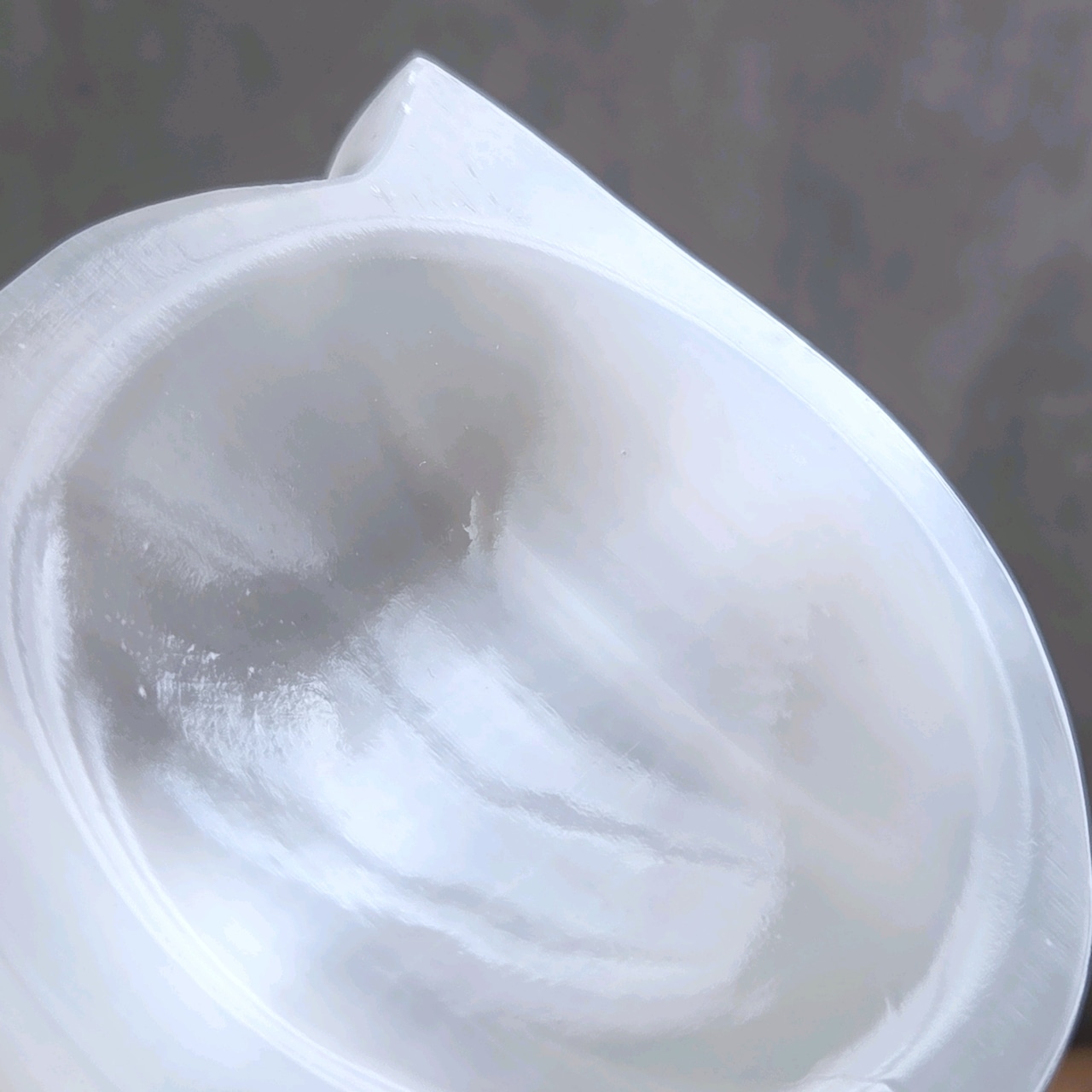 樹脂コーティングされたセレナイトの猫型トレイです。