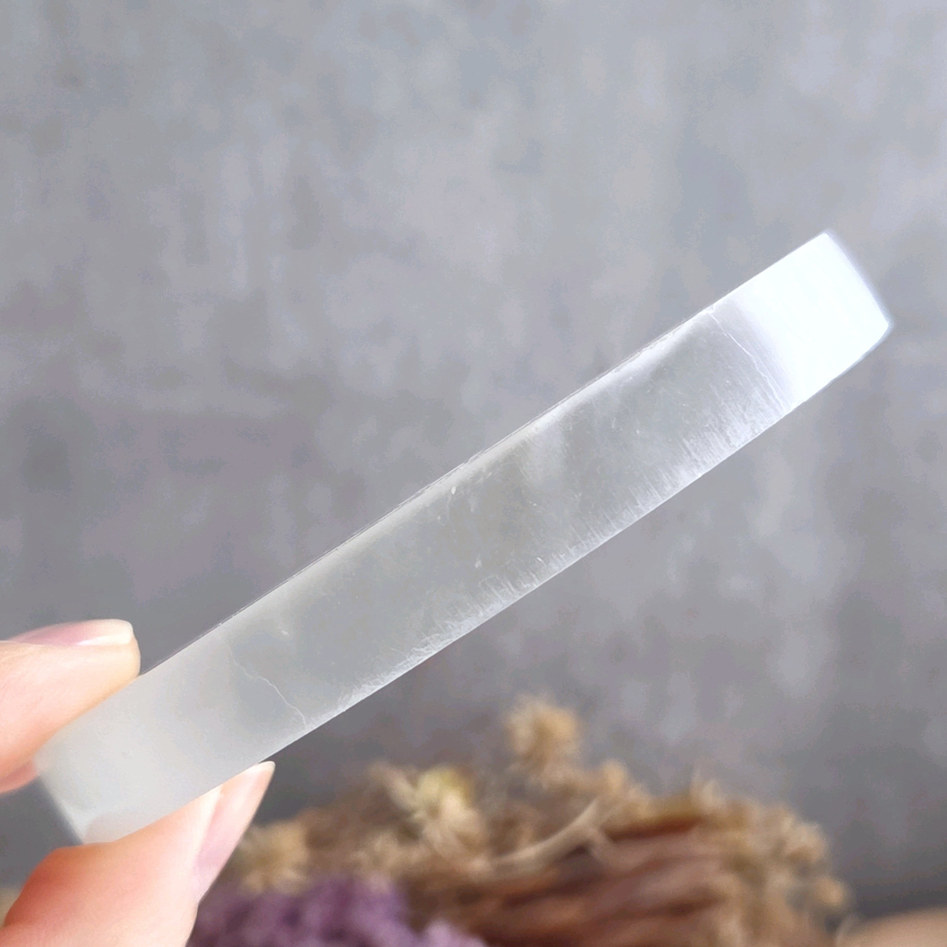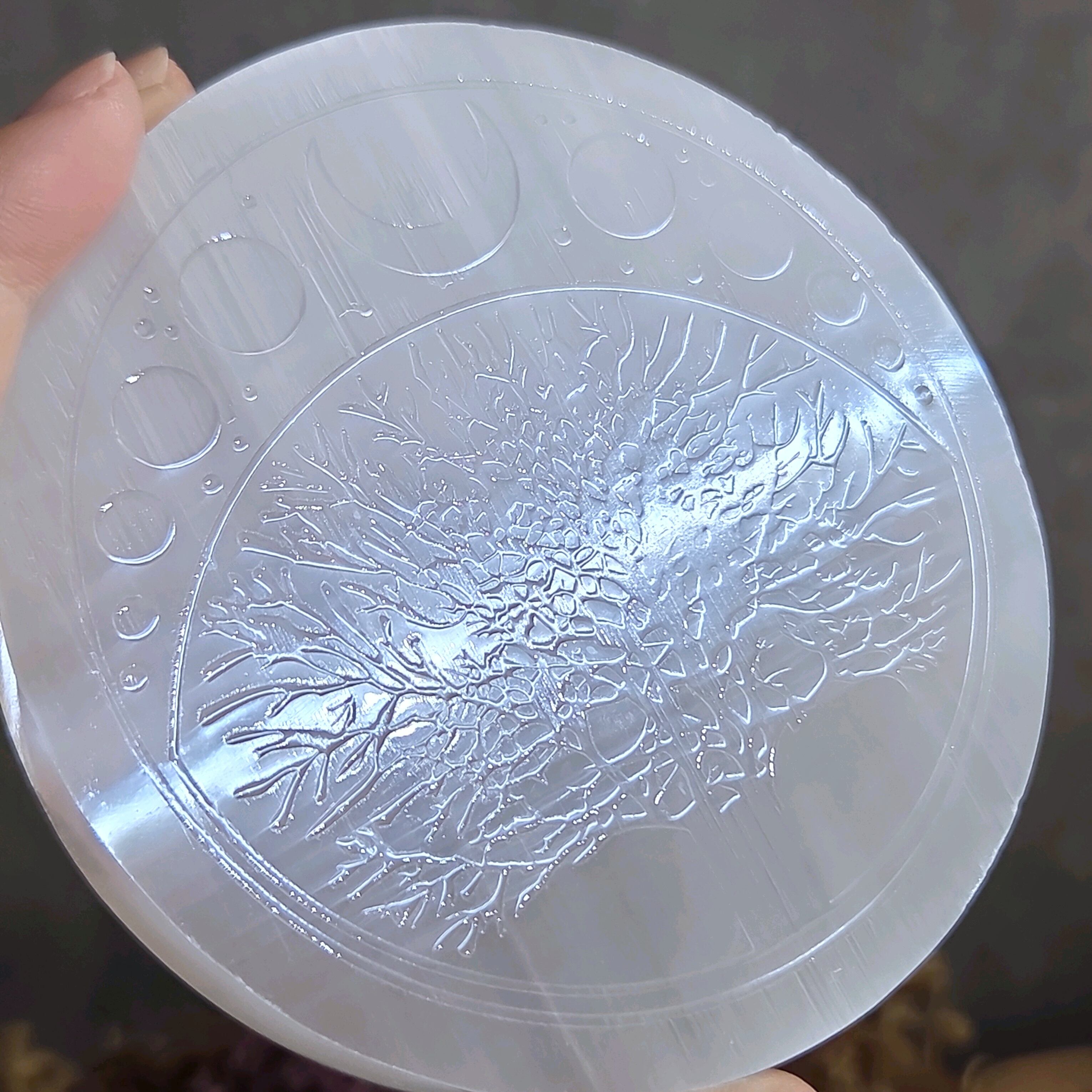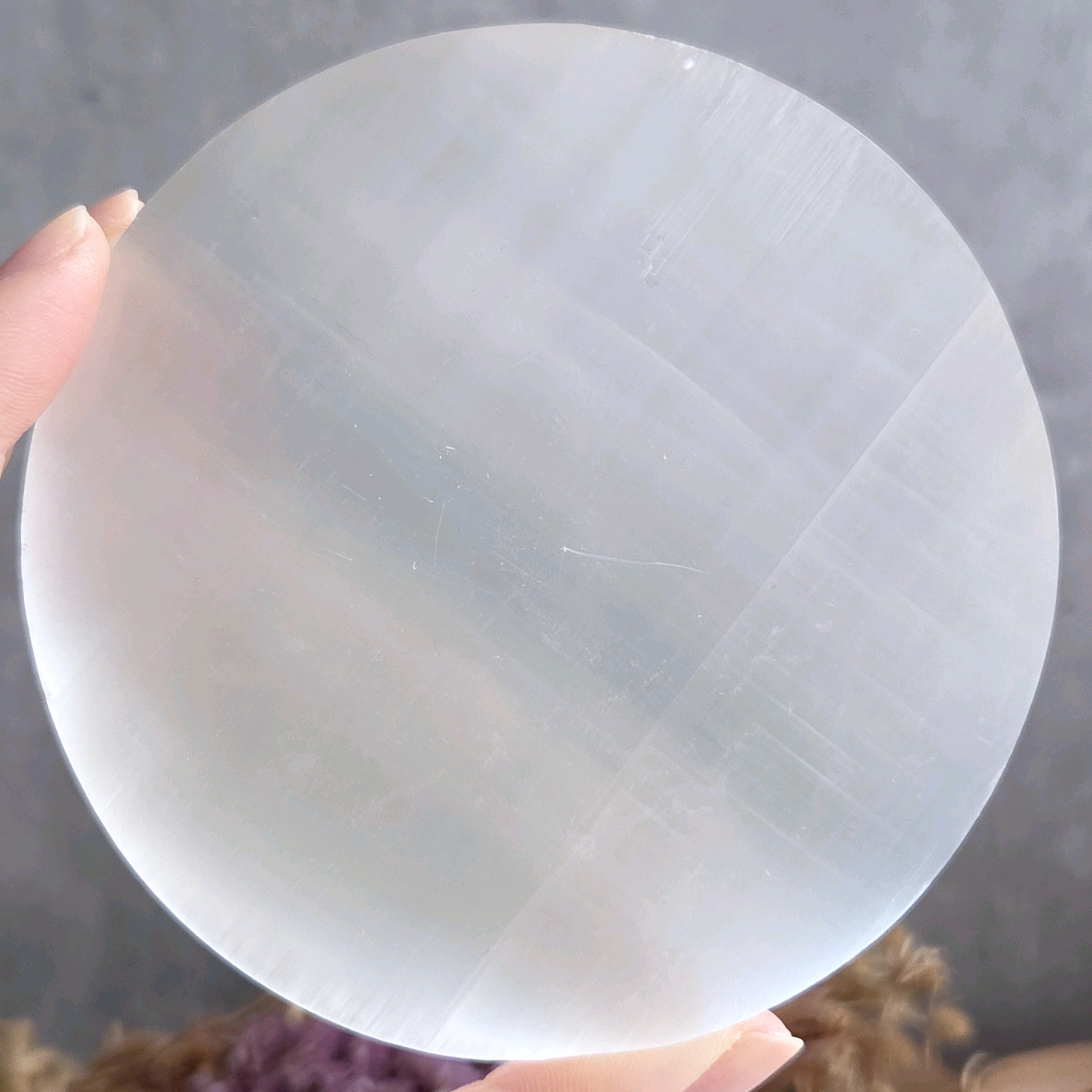 樹脂コーティングされたセレナイトのラウンドプレートです。