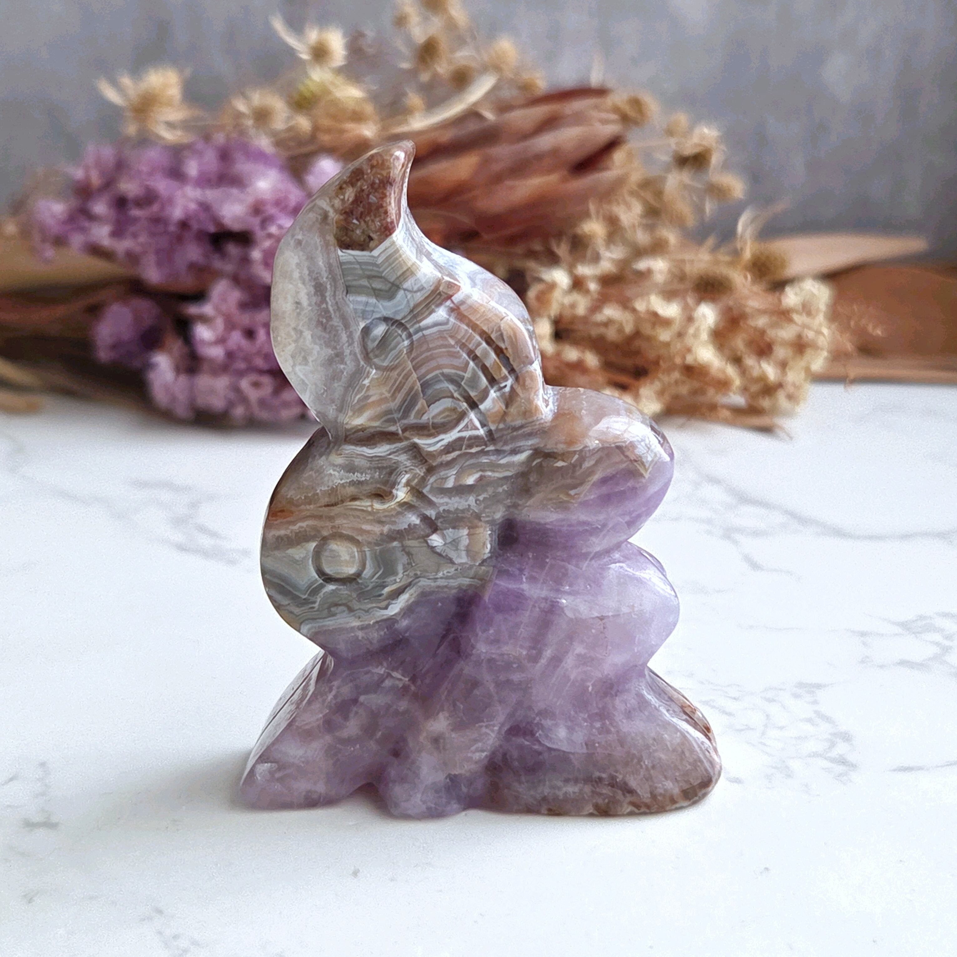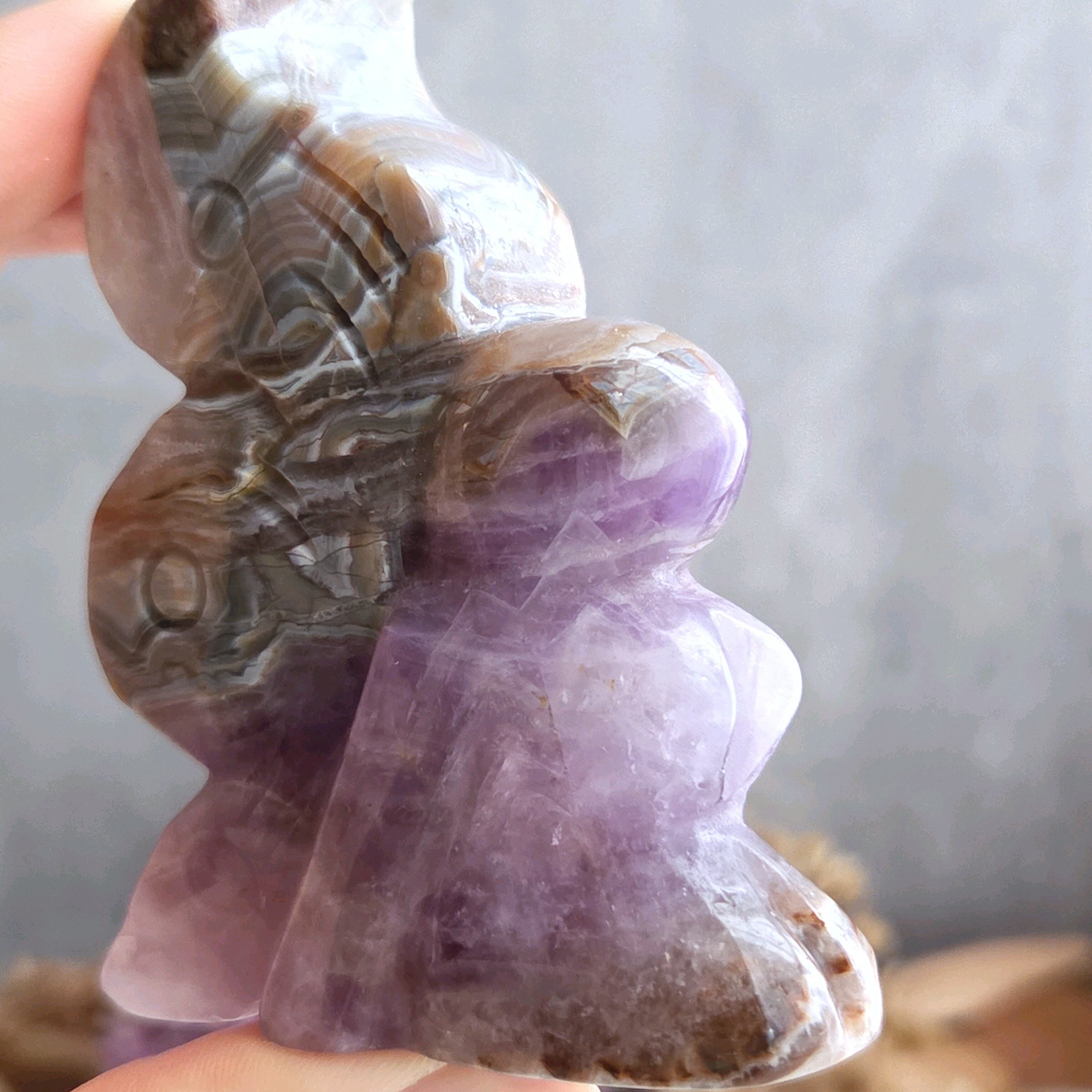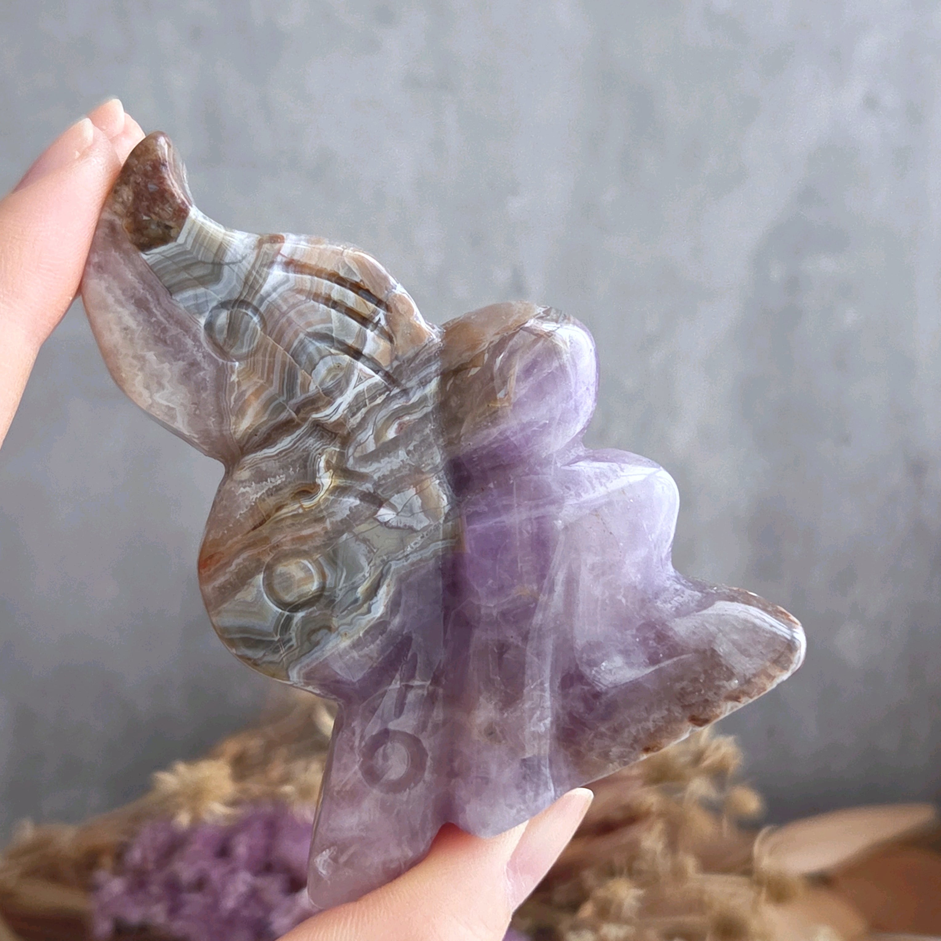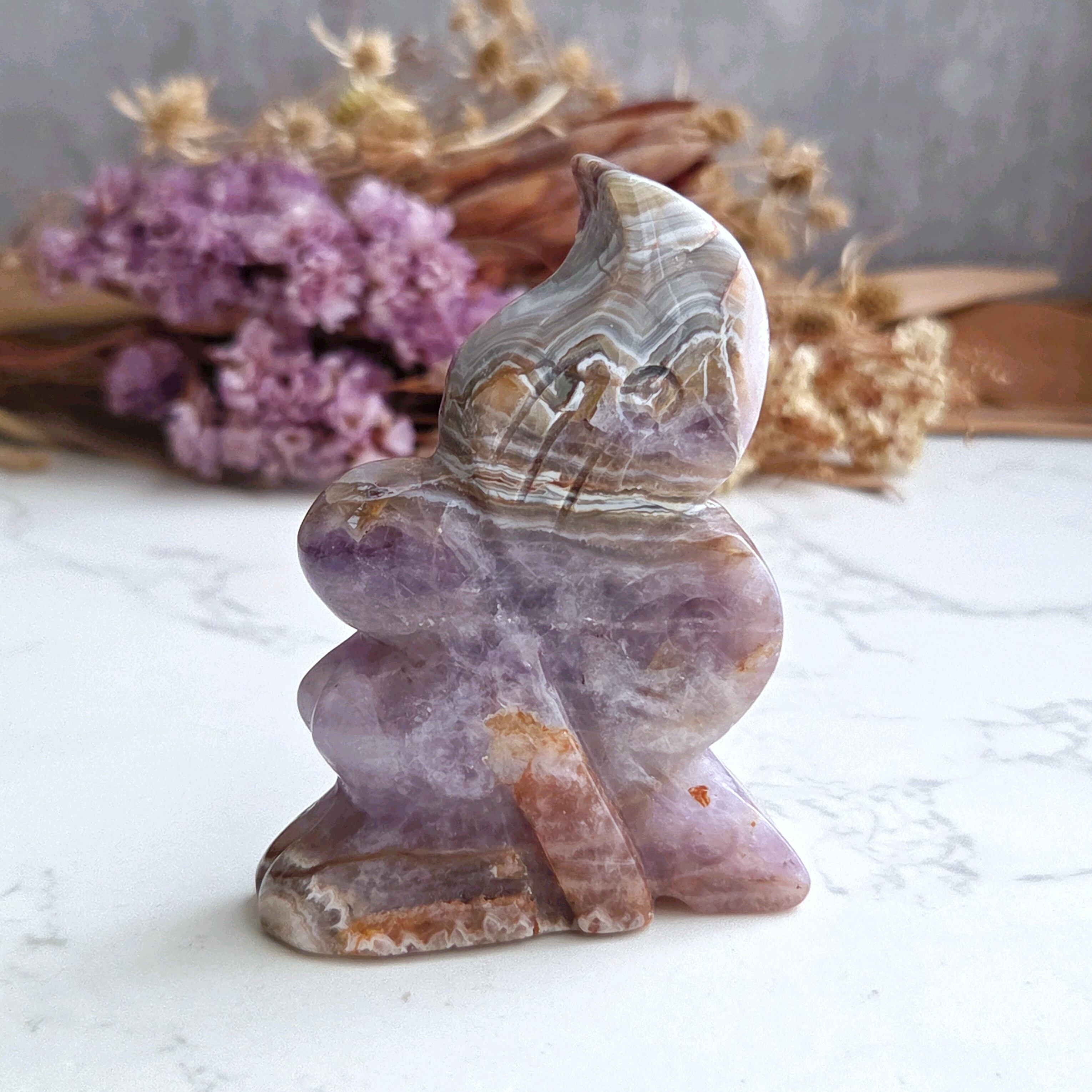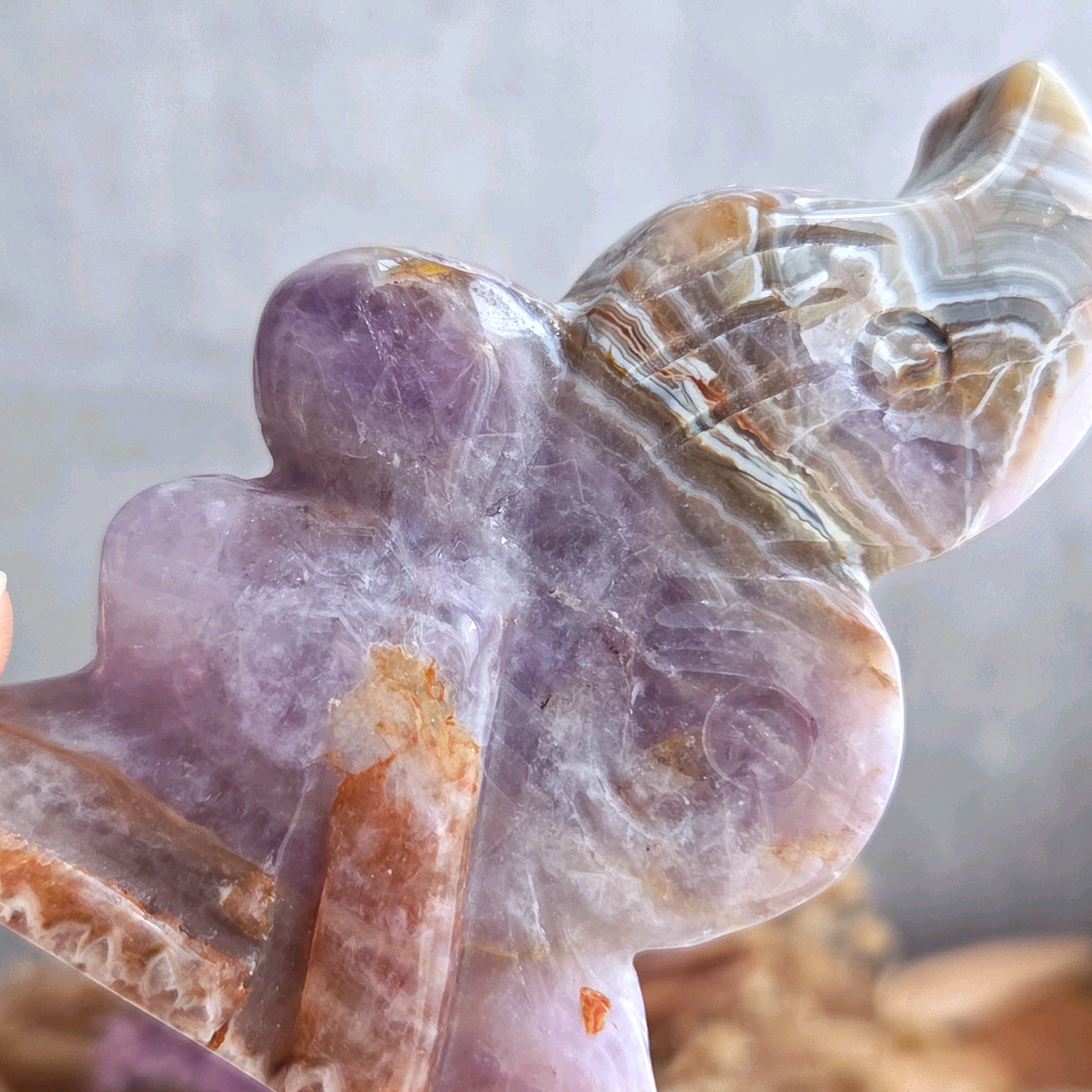 どこか暖かみを感じる柄とフォルムが素敵なアメジストアゲートの妖精さんです(*^^*)