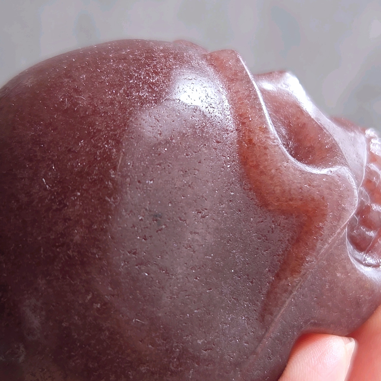ワインのような深みのあるお色味の大人っぽいストロベリークォーツスカルです。