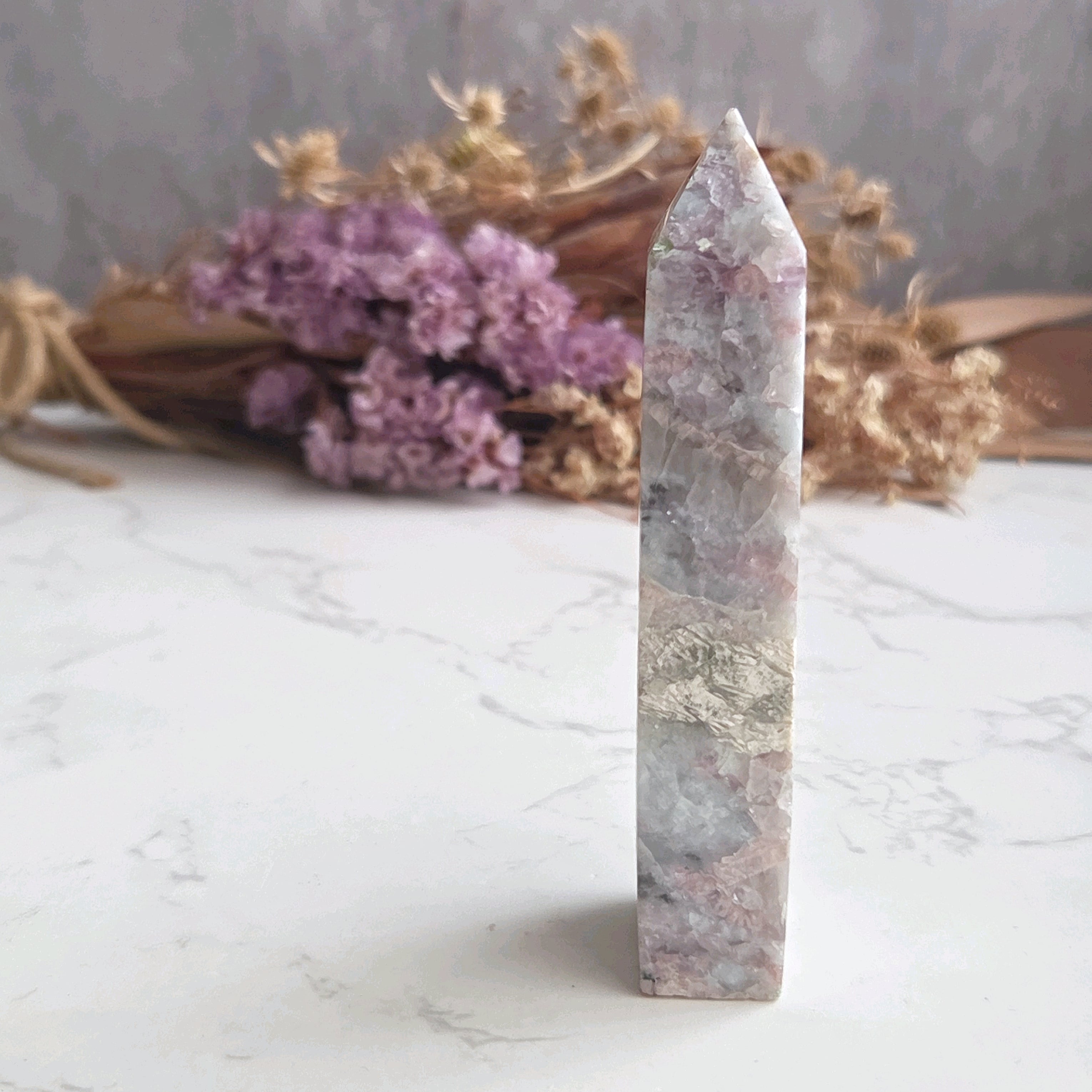 淡いお色味のモザイク模様が素敵なユニコーンストーンのタワーです。