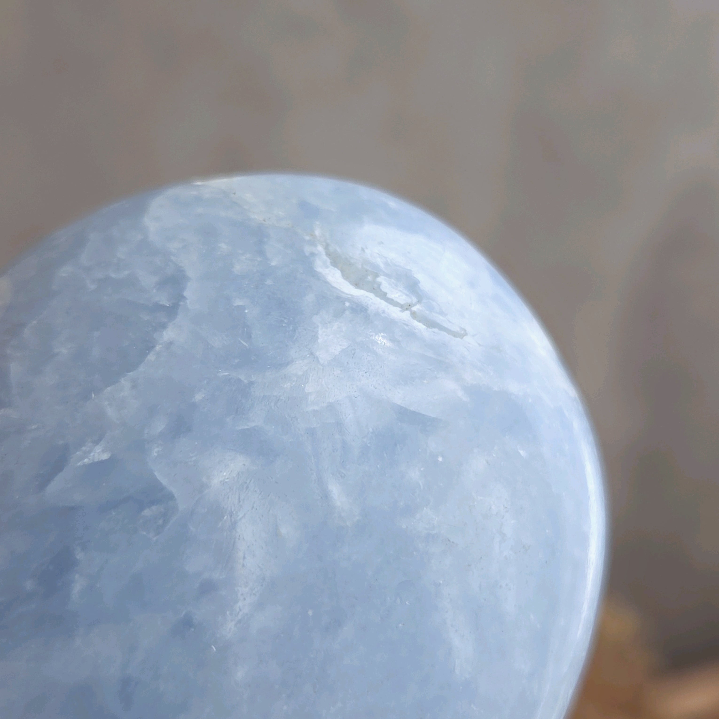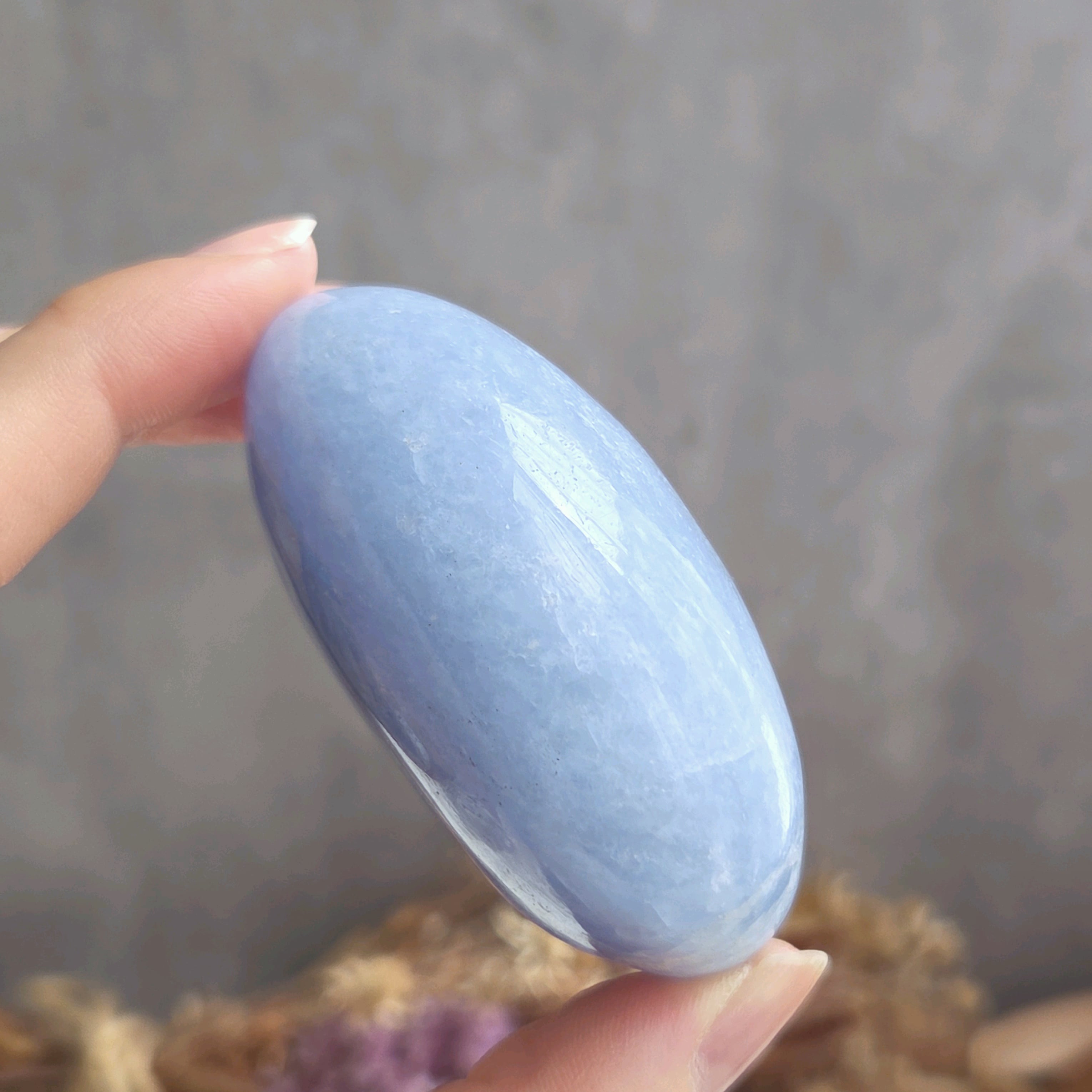 柔らかなブルーが美しいブルーカルサイトのパームストーンです。