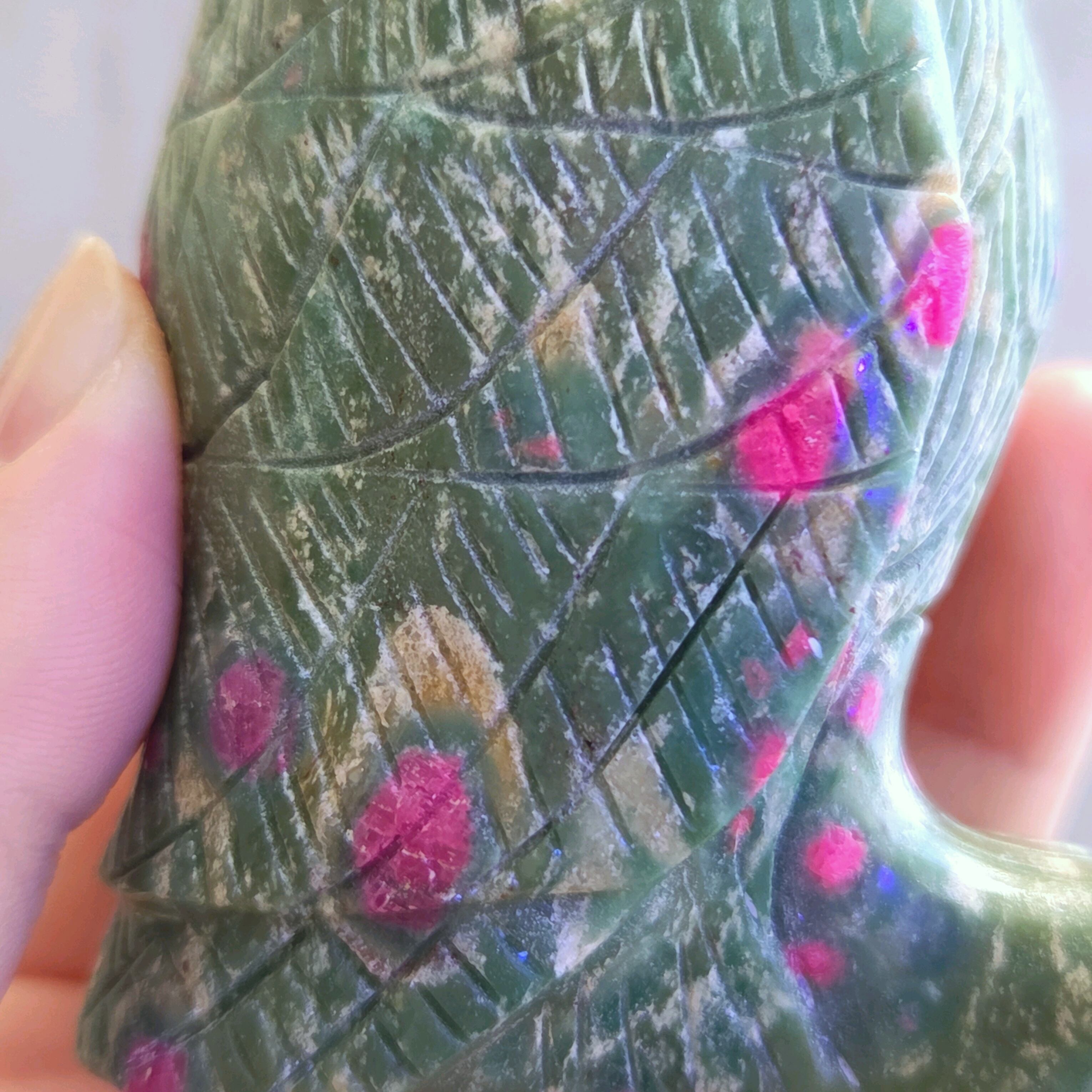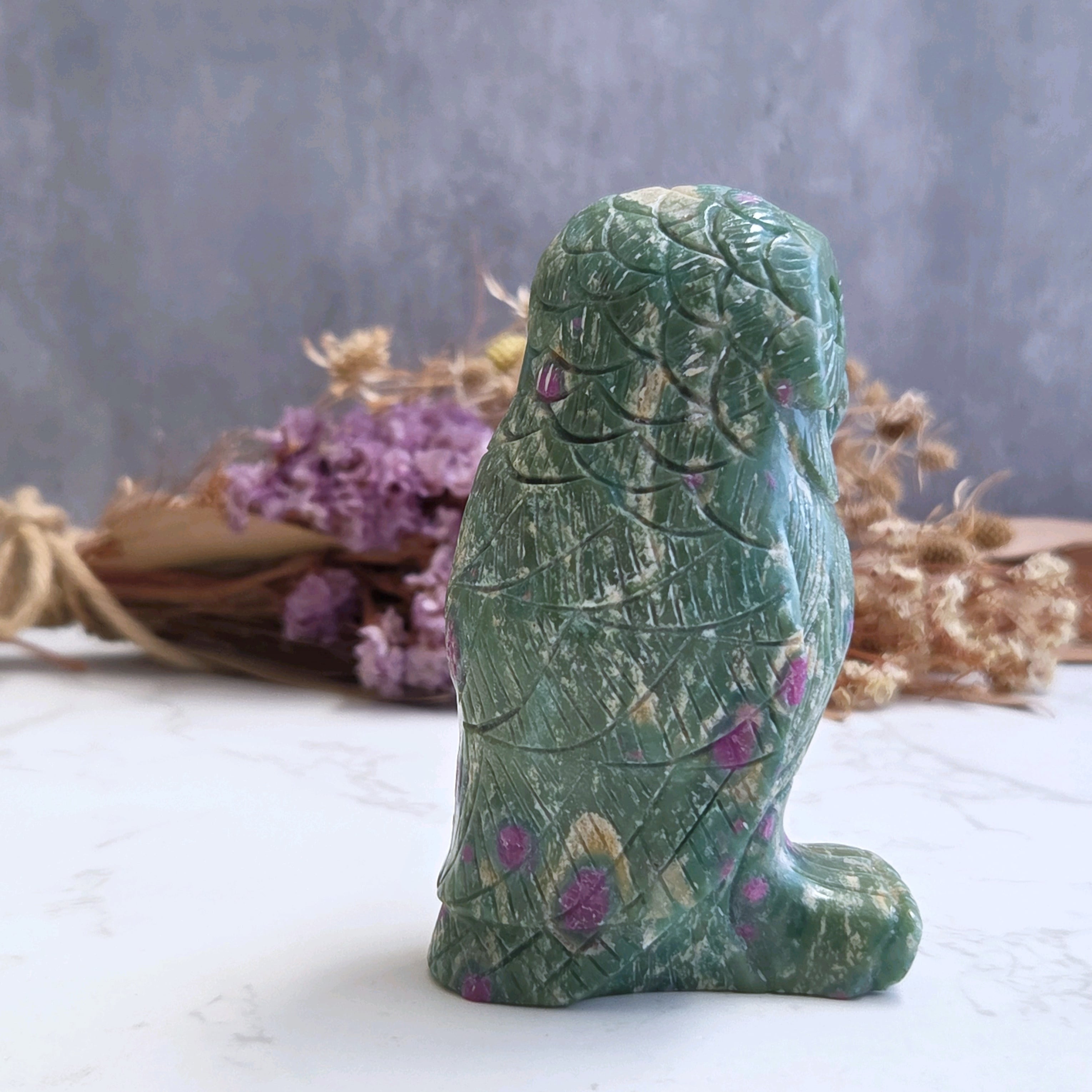 珍しいルビーインフックサイトのカービングです。おとぼけ顔のなんだか見ているだけで和んでしまうかわいらしいフクロウさん(*^^*)