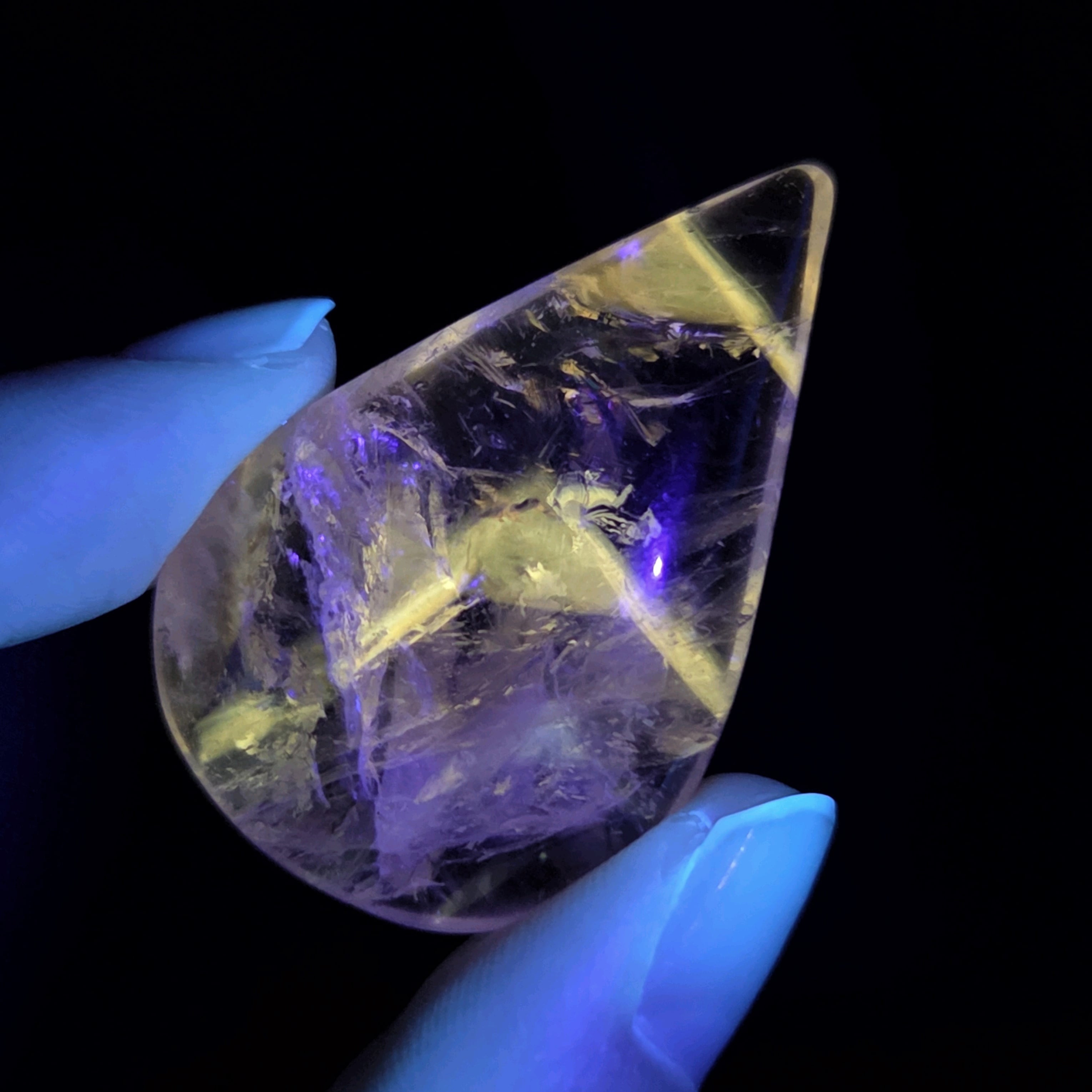 UVで蛍光する成分が入ったアメジストです。