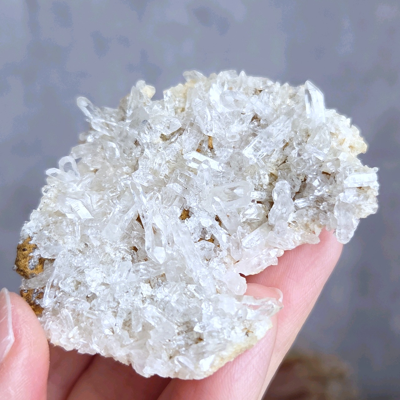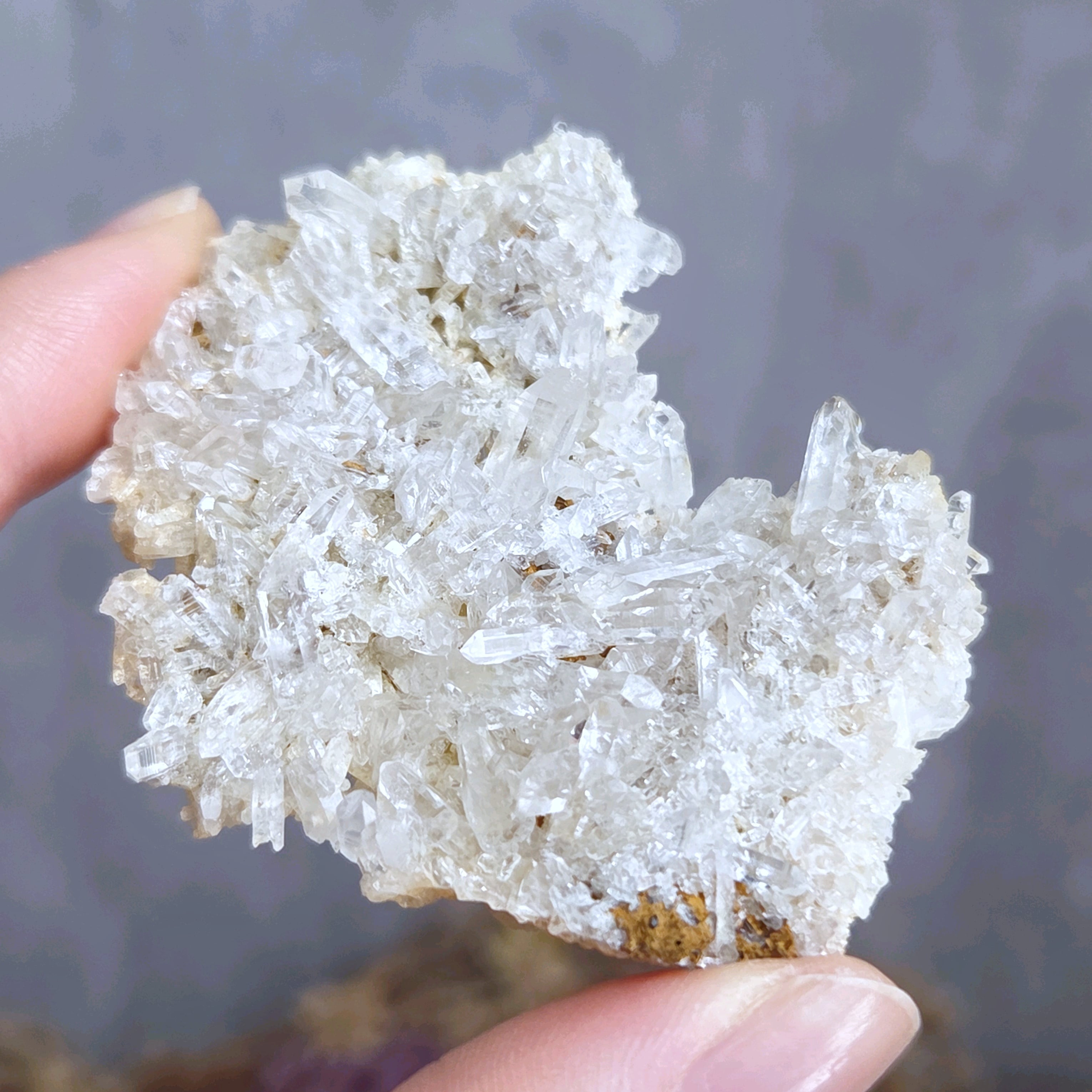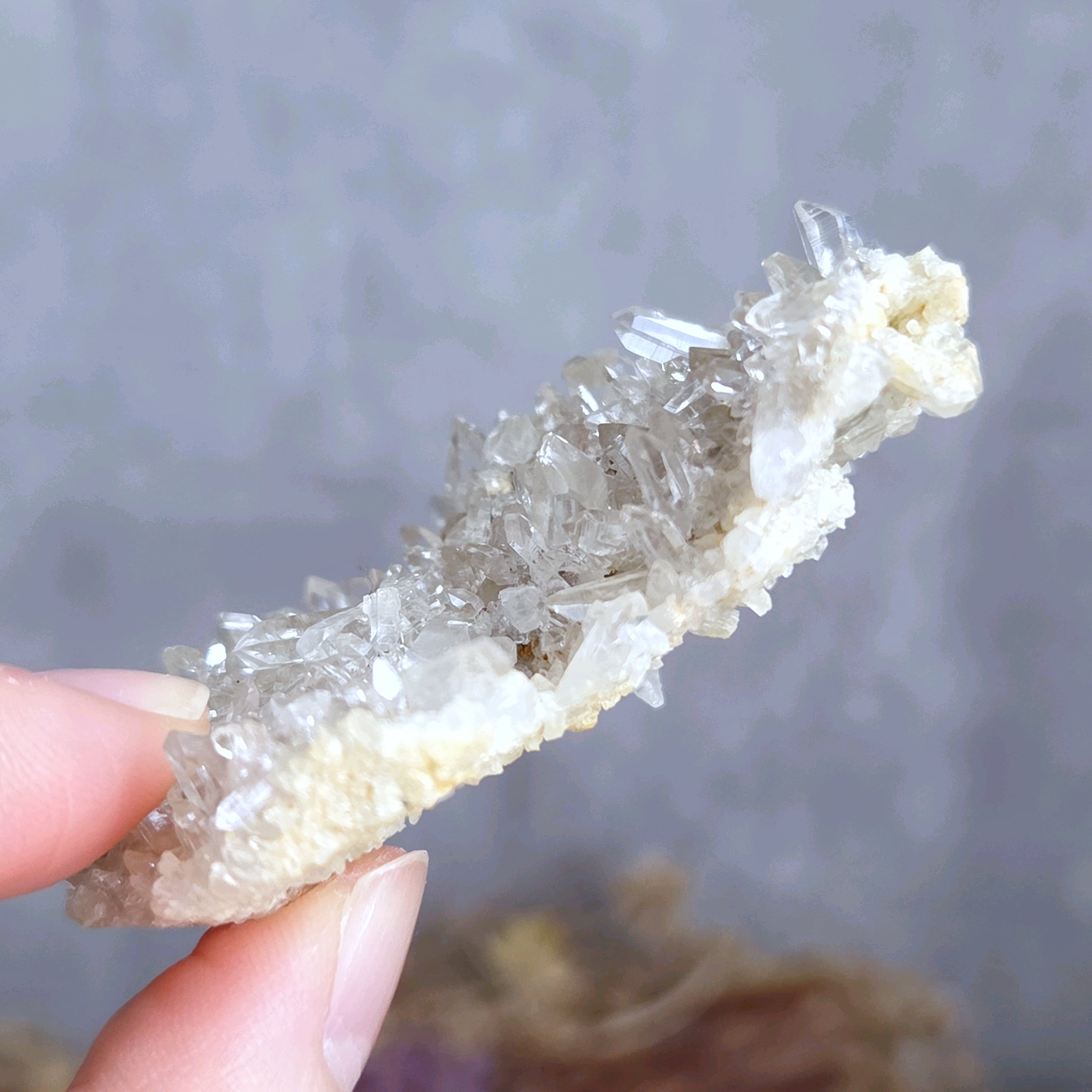 透明度の高い小さなポイントがびっしり付いた薄いクラスターです。