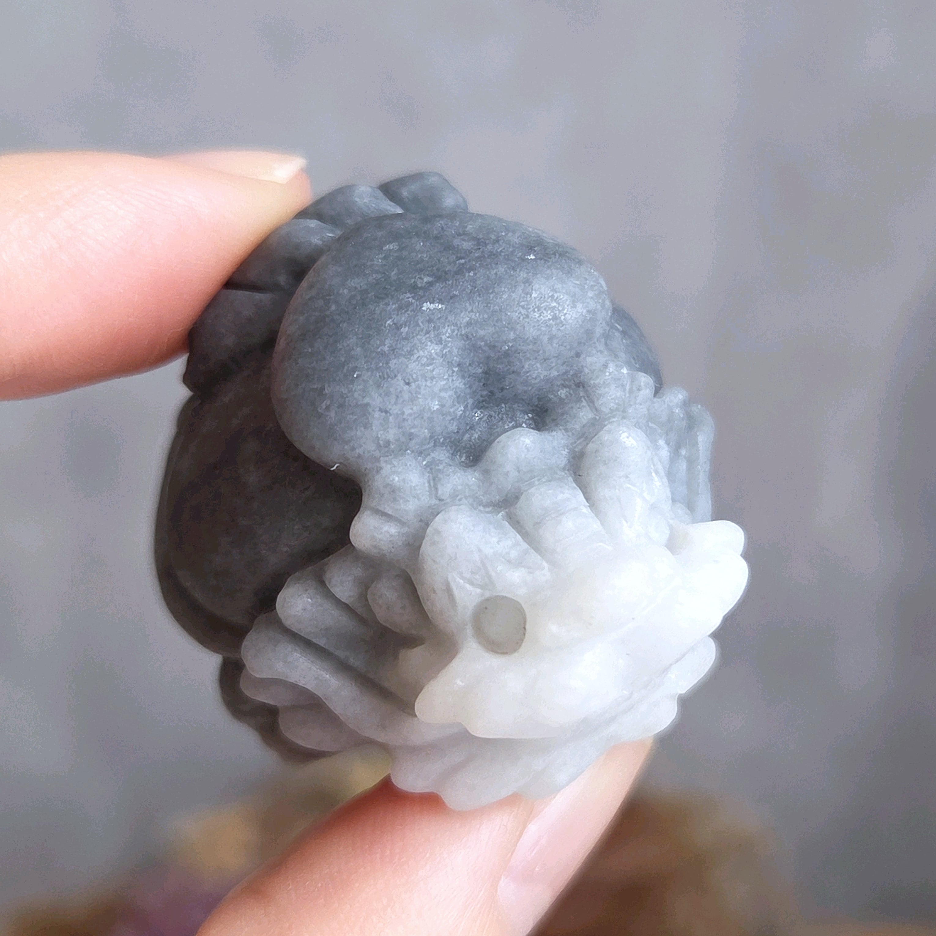 普段ご紹介している太極石とは原石の種類が違うものですが、白黒(陰陽)カラーでこちらも太極石と呼ばれています。ラメが入ったようなキラキラが素敵です(*^^*)
