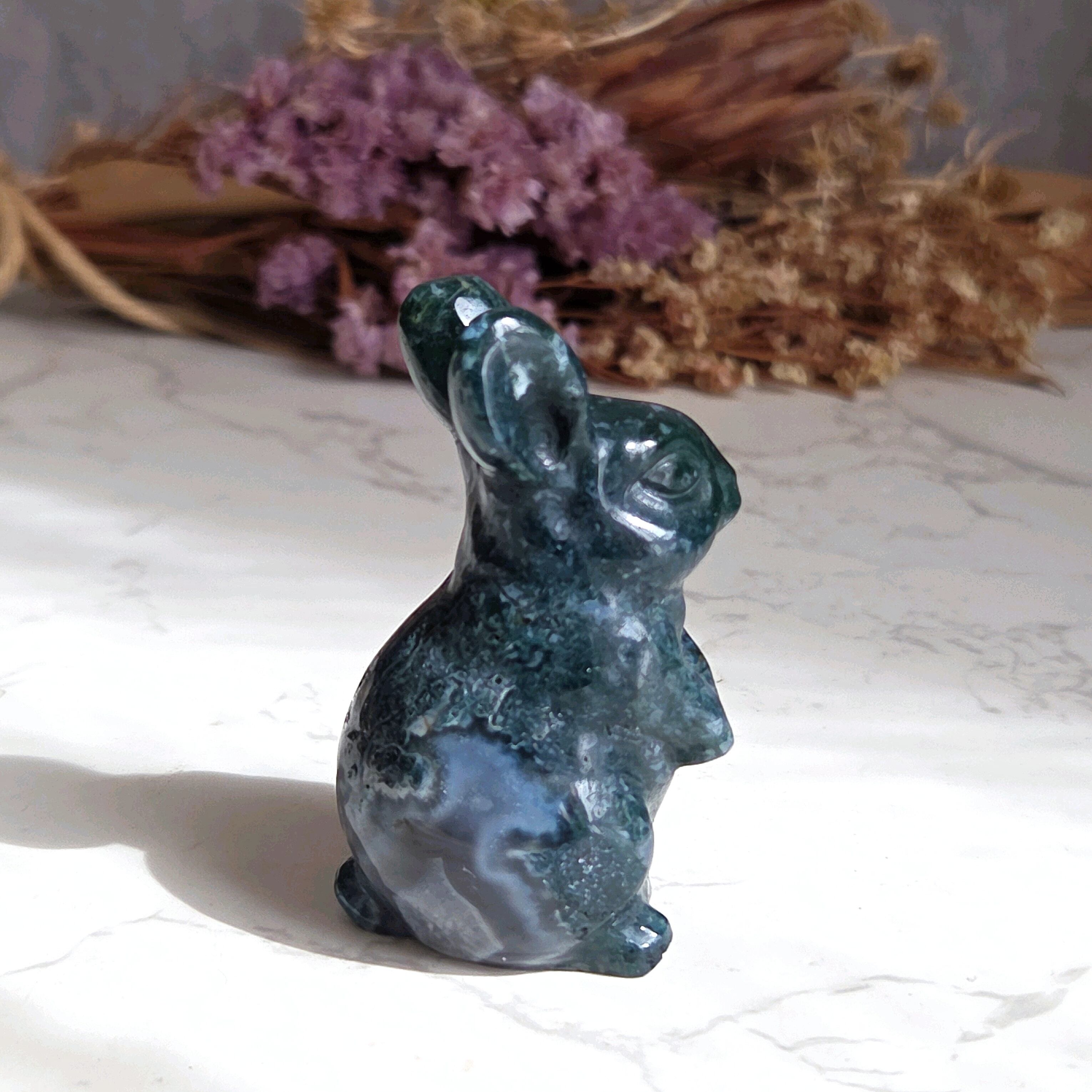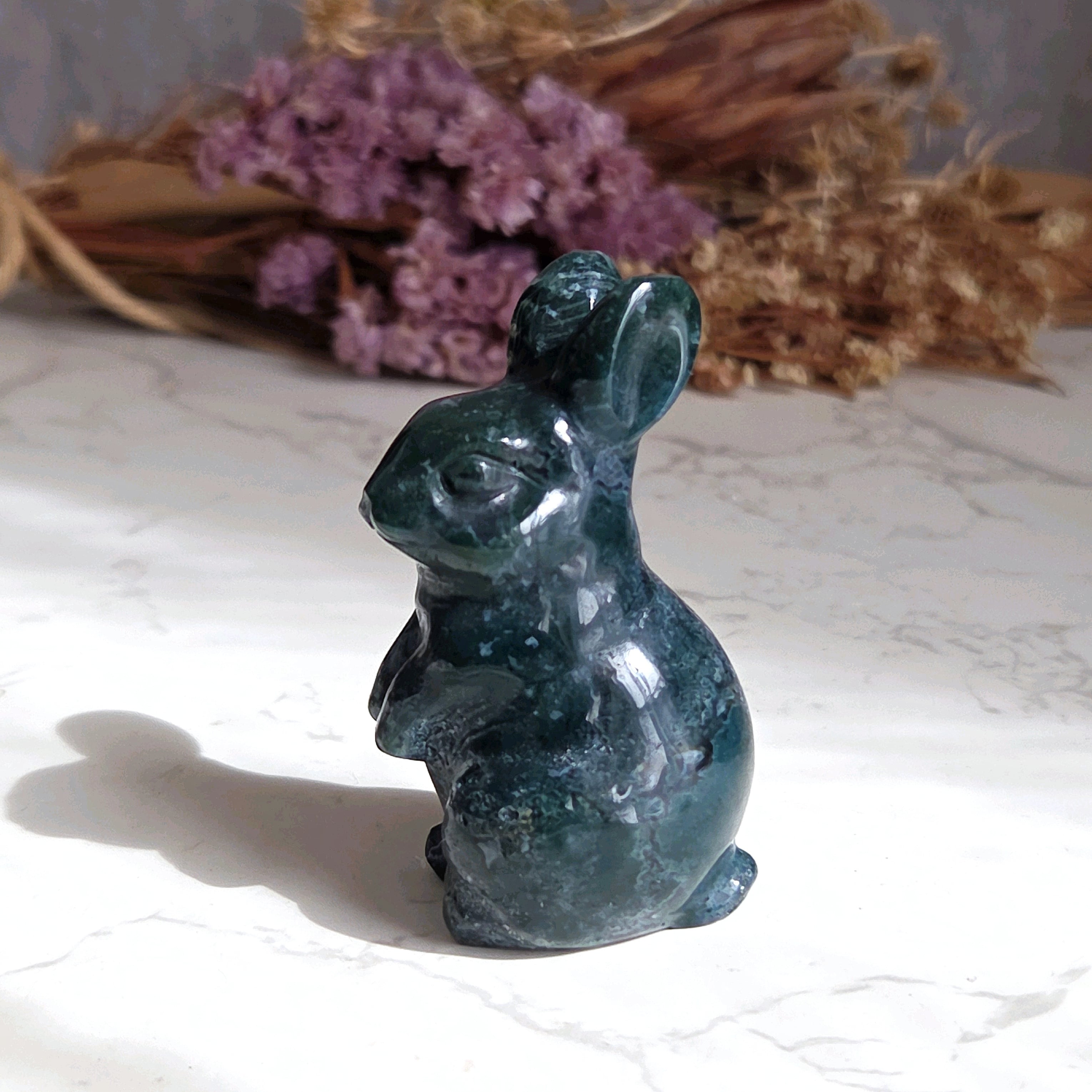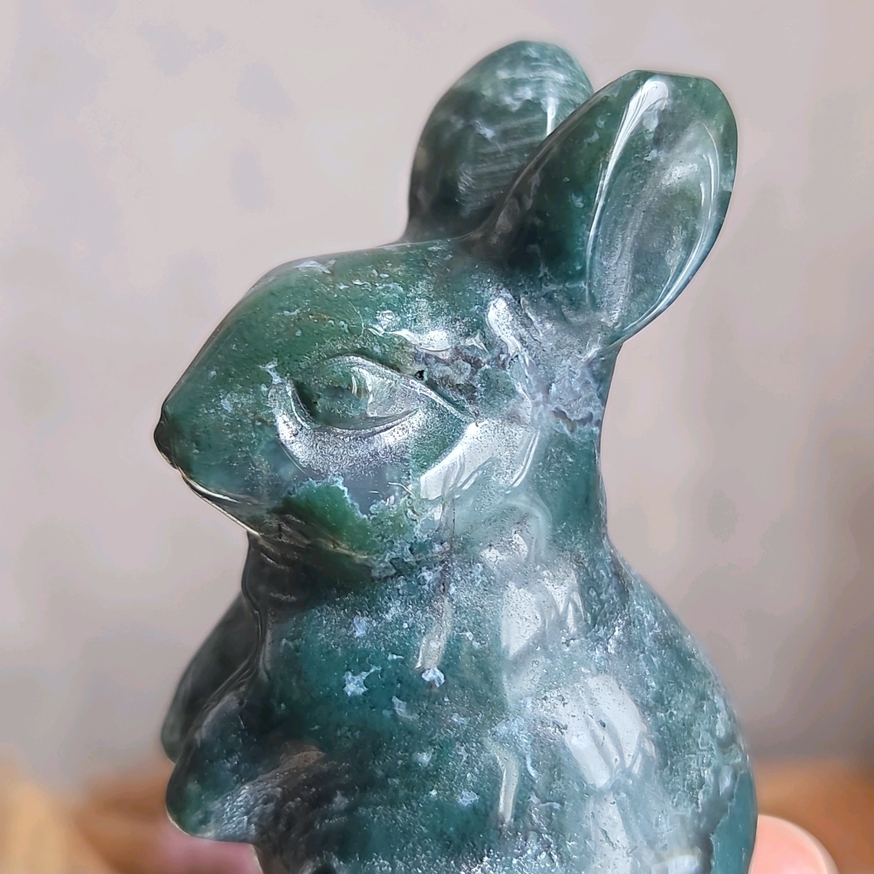 濃いめのグリーンが綺麗なモスアゲートのうさぎさん♡