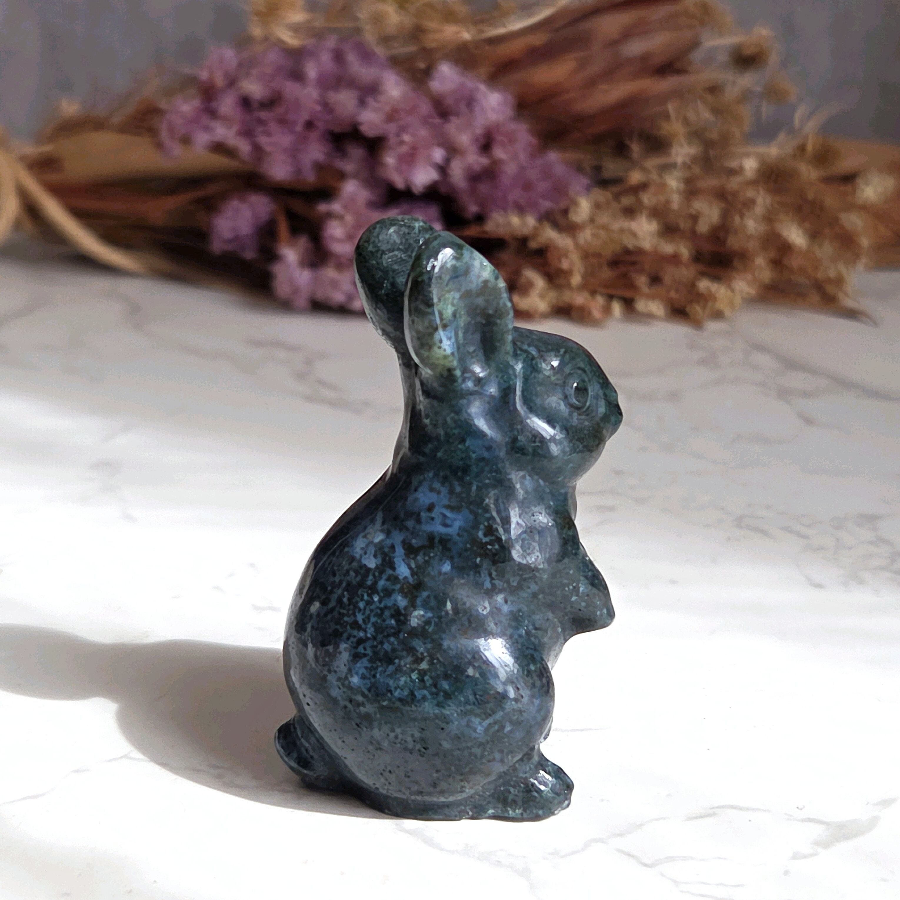 濃いめのグリーンが綺麗なモスアゲートのうさぎさん♡
