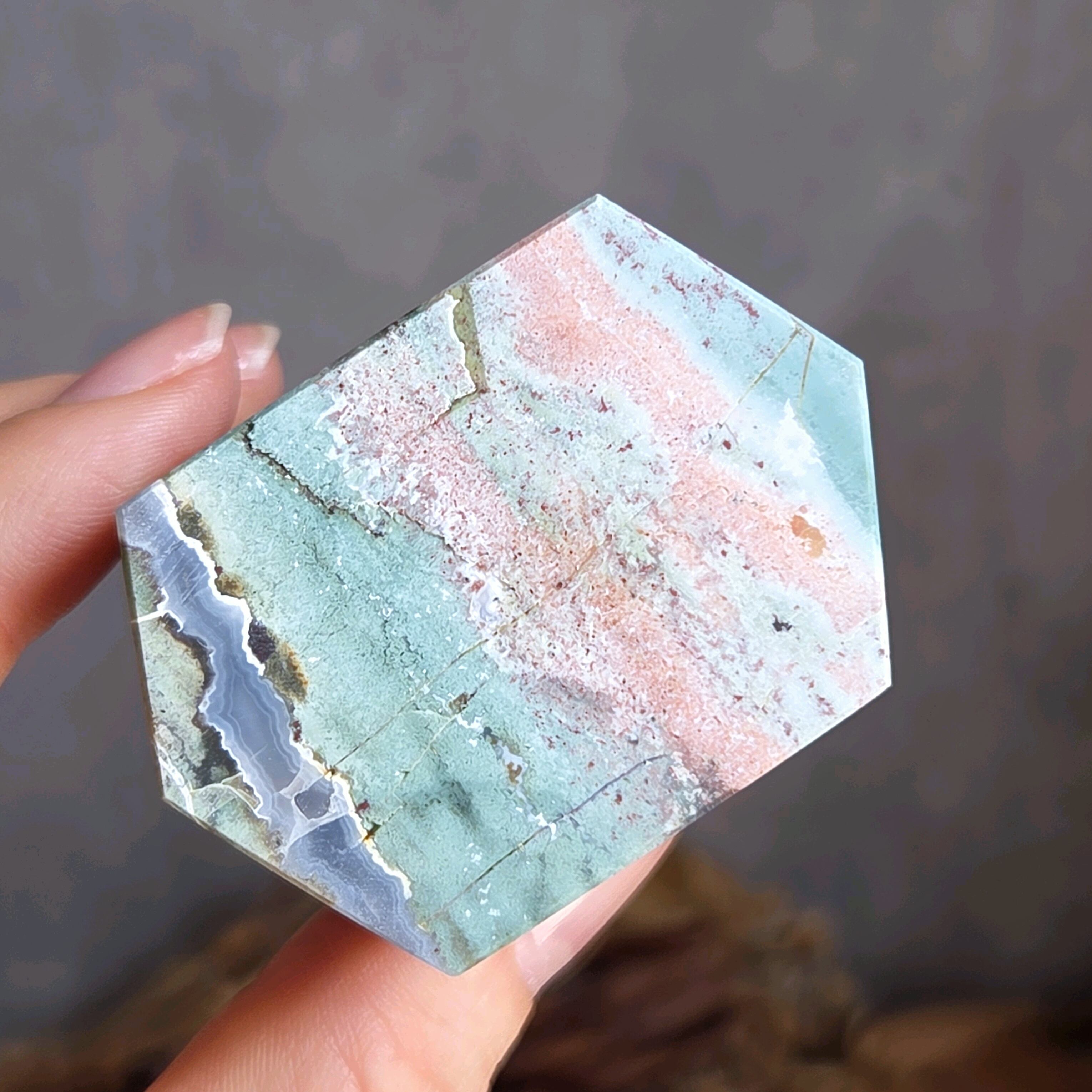 ユニコーンジャスパーは2022年にインドで発見されたばかりの新しいストーンで、パステルカラーのマーブル模様が特徴的です。