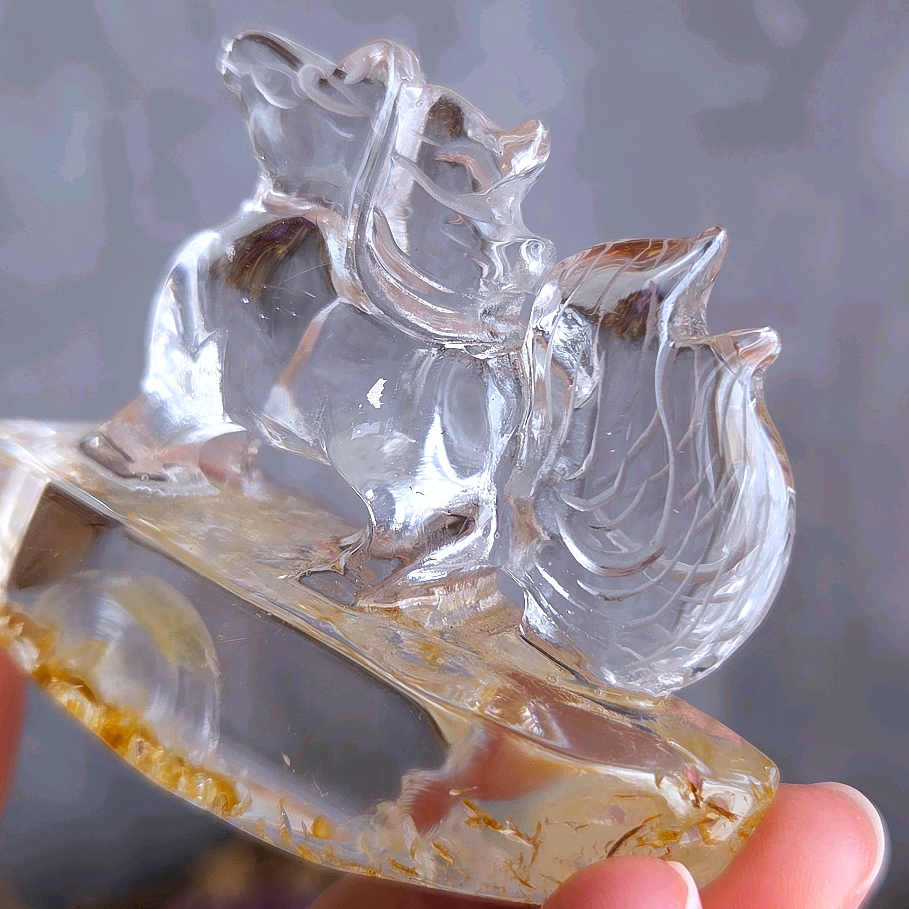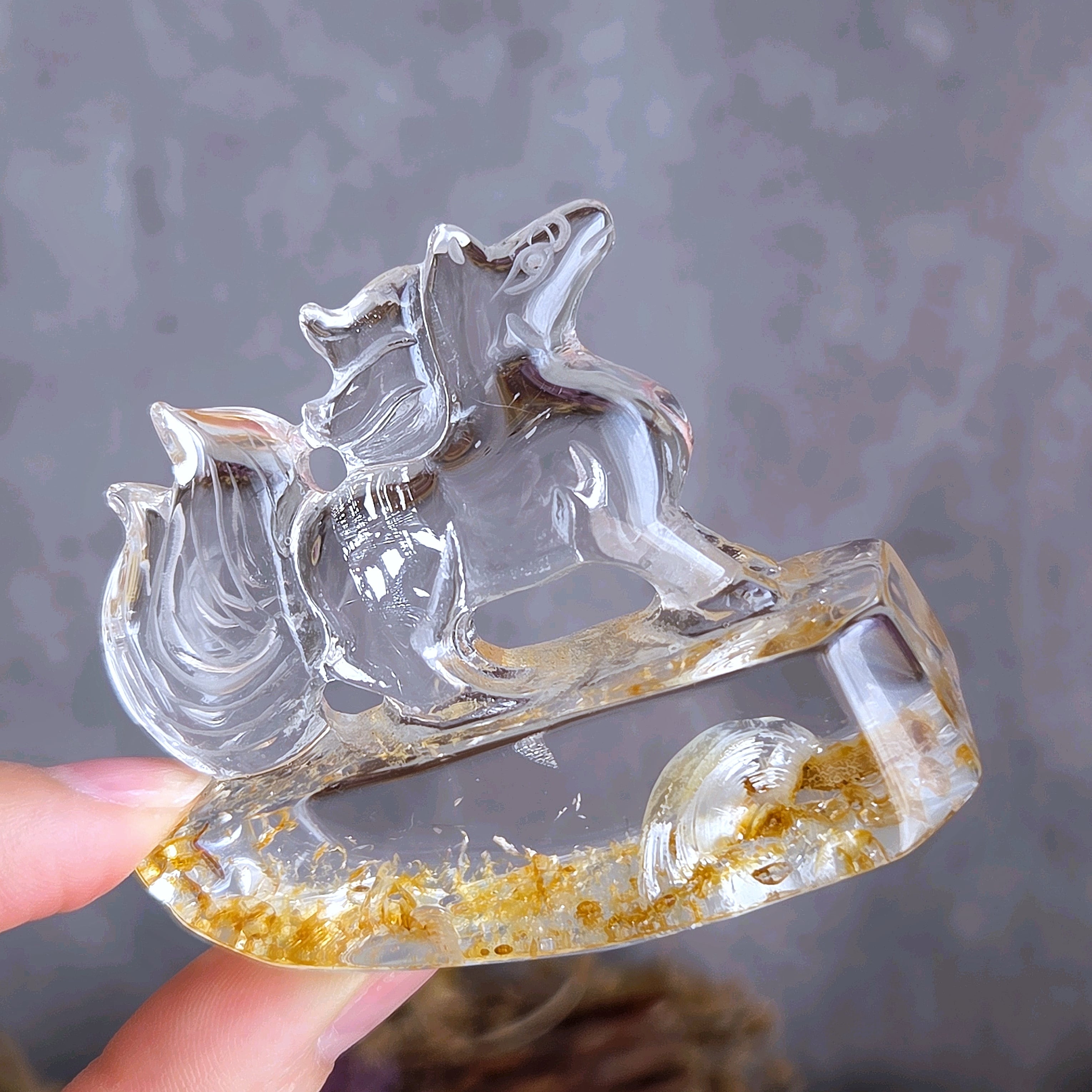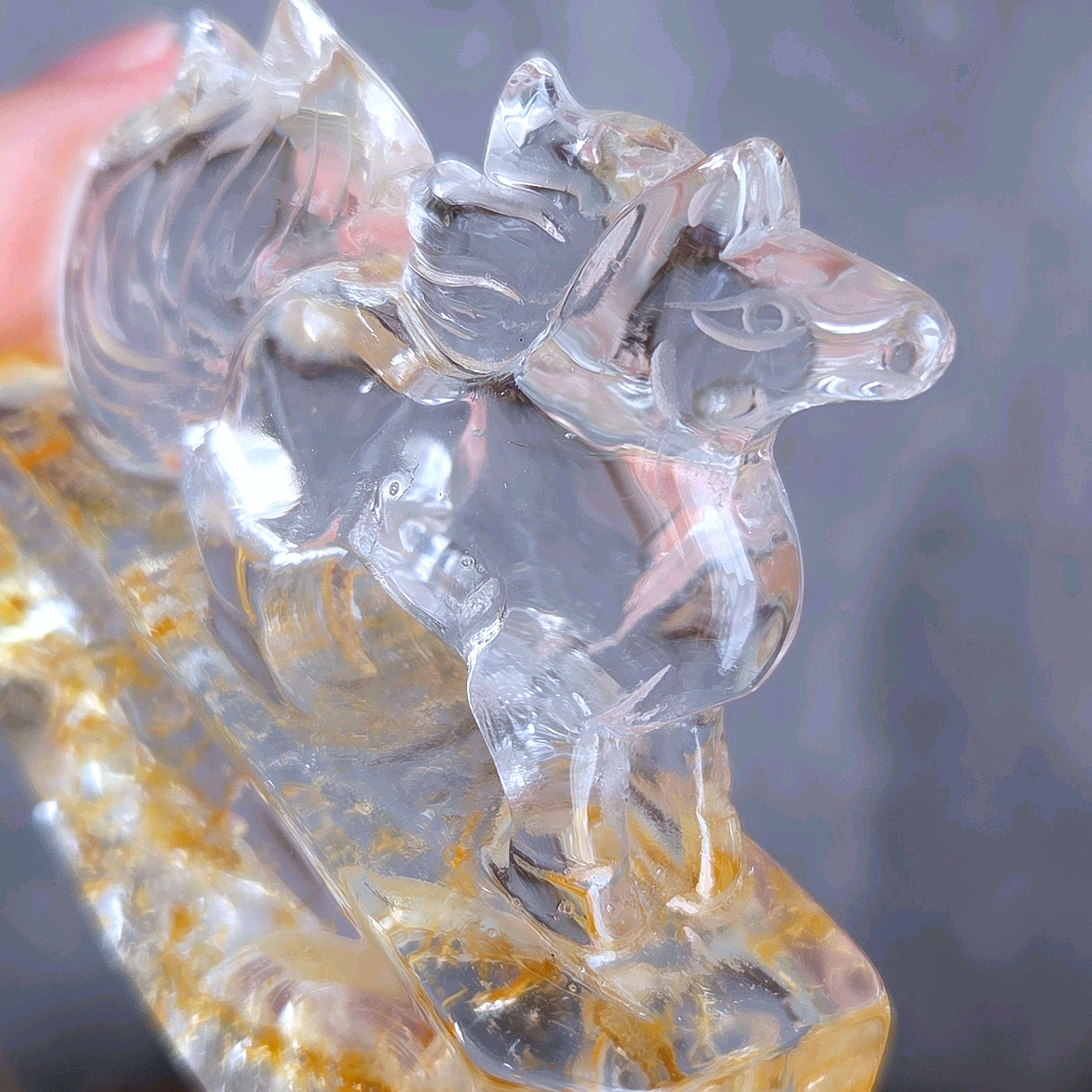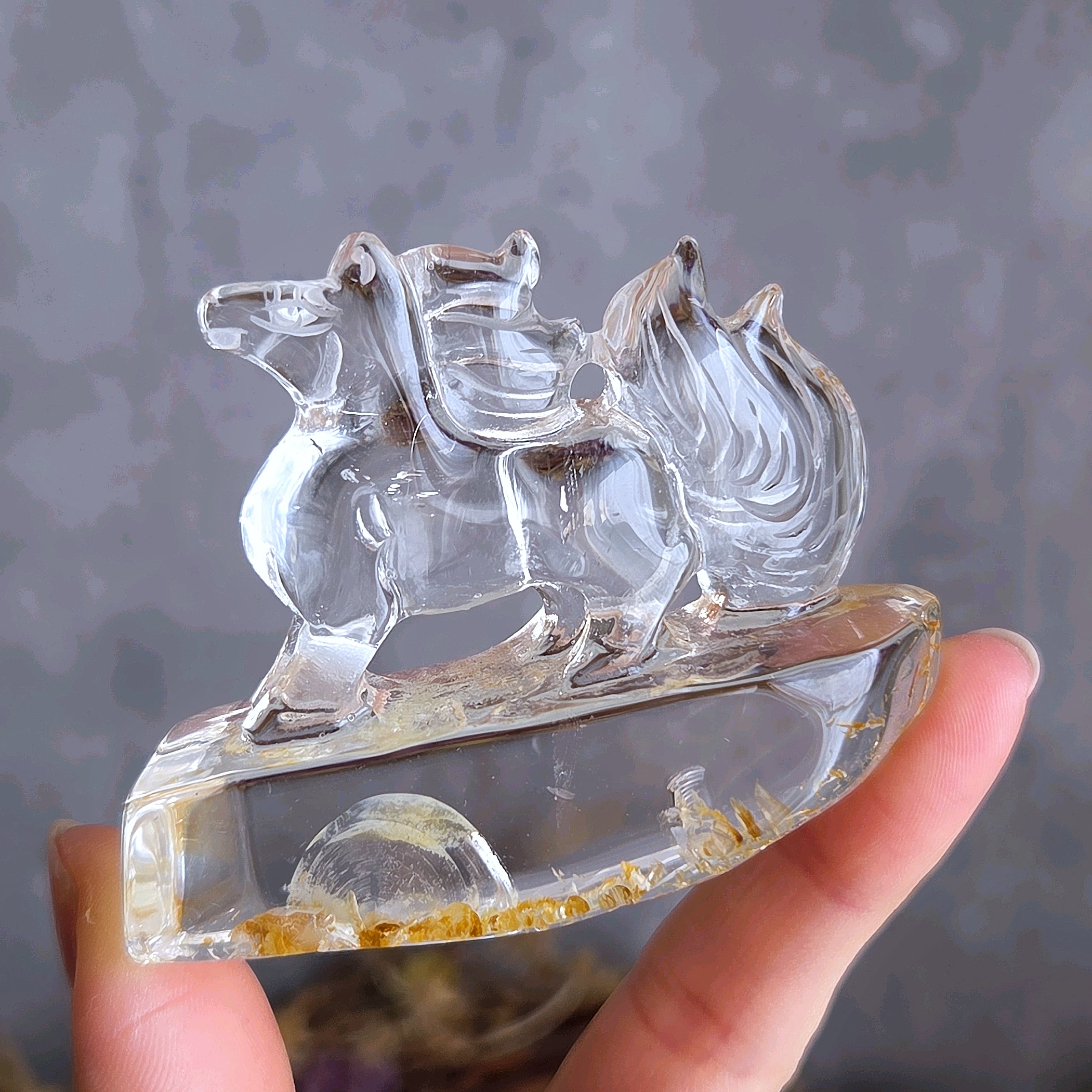 黄金色の草原を駆ける美しい馬の彫刻です。