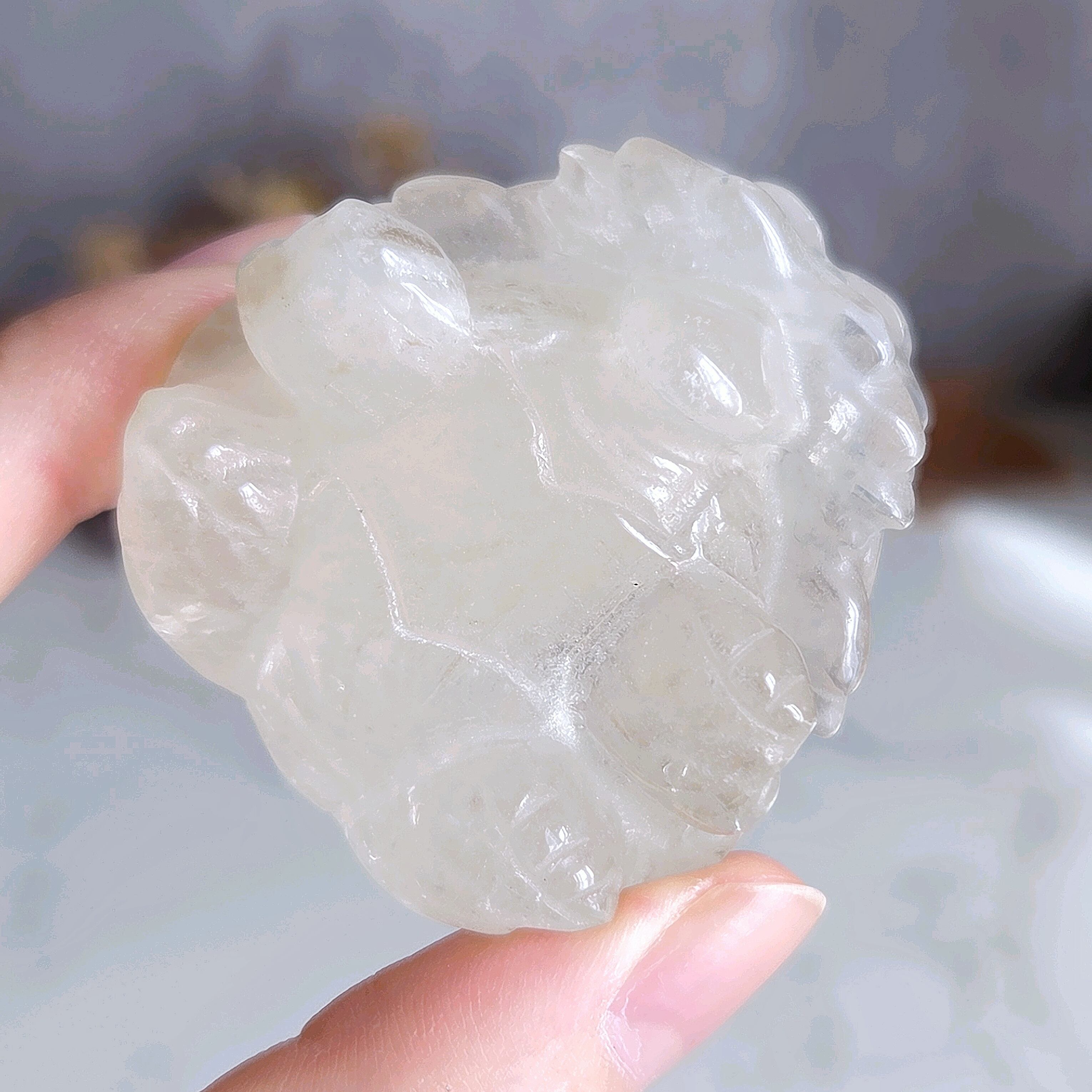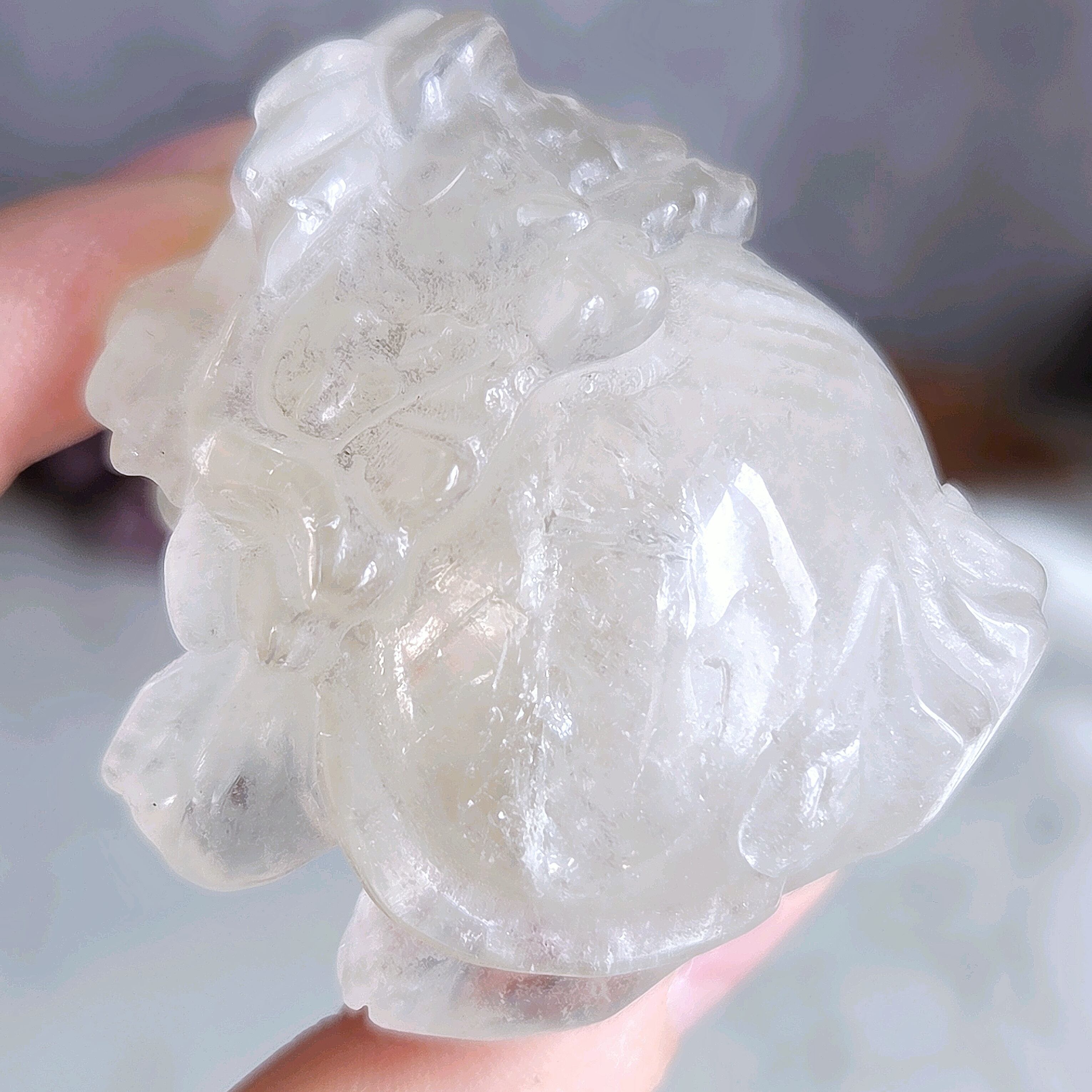 【優美】 ホワイト千層ガーデンクォーツ 龍亀