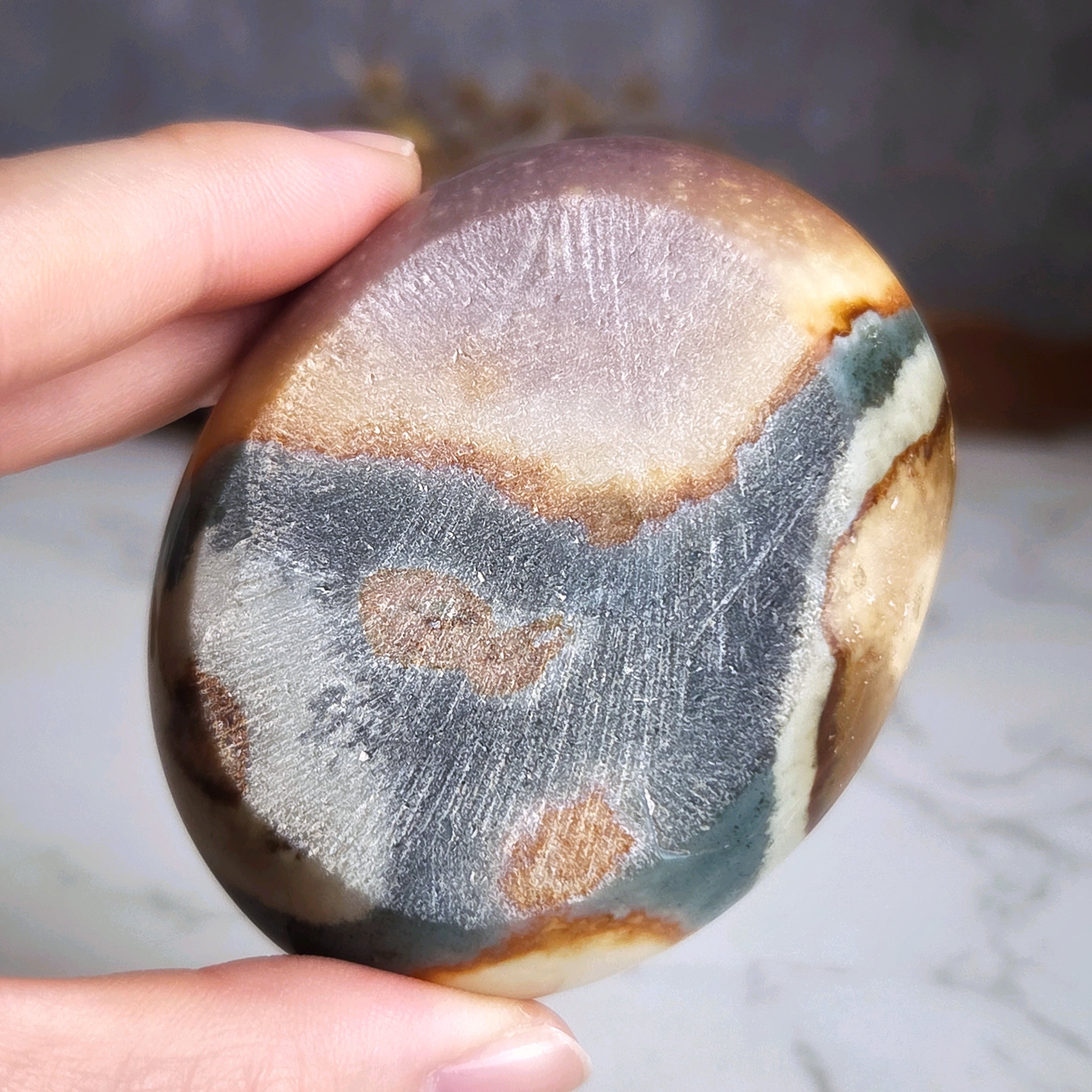 くすみパープルがメインのカラフルなポリクロームジャスパーの小皿です。