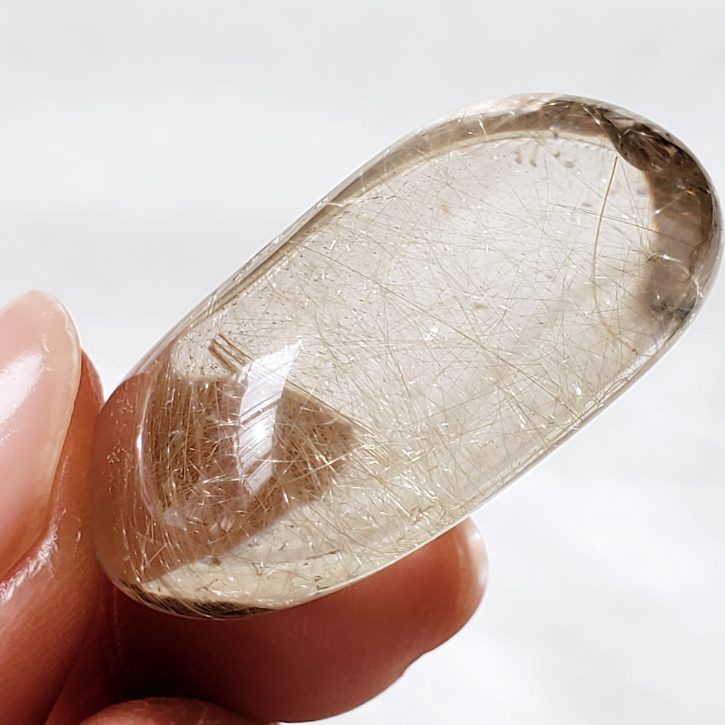 通常のルチルに比べてとても細く繊細なエンジェルヘアールチルは女性的な優しいエネルギーを持ちます。普通のルチルでは少しパワーが強すぎると感じるかたにも抵抗感なく持っていただけるのではないかと思います。