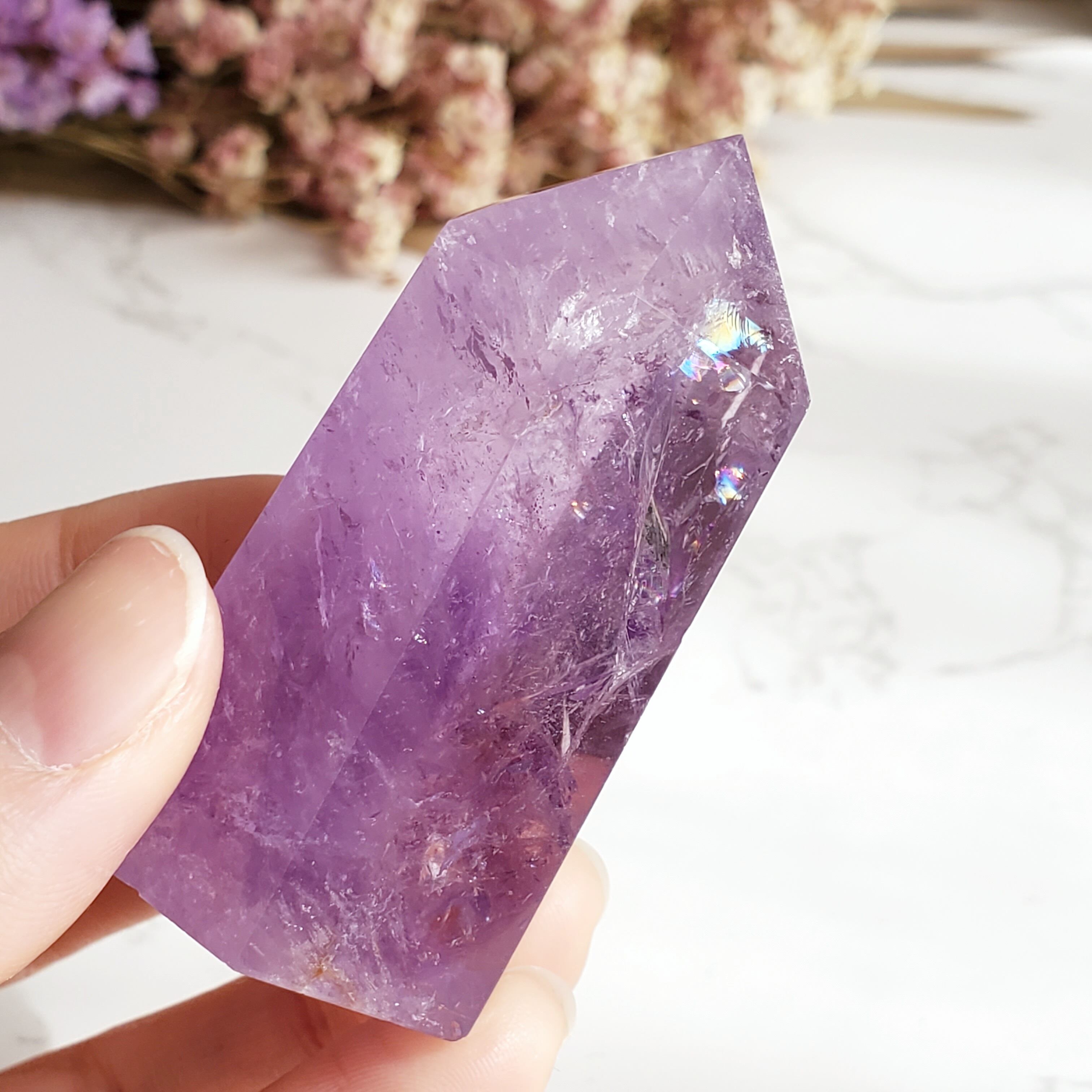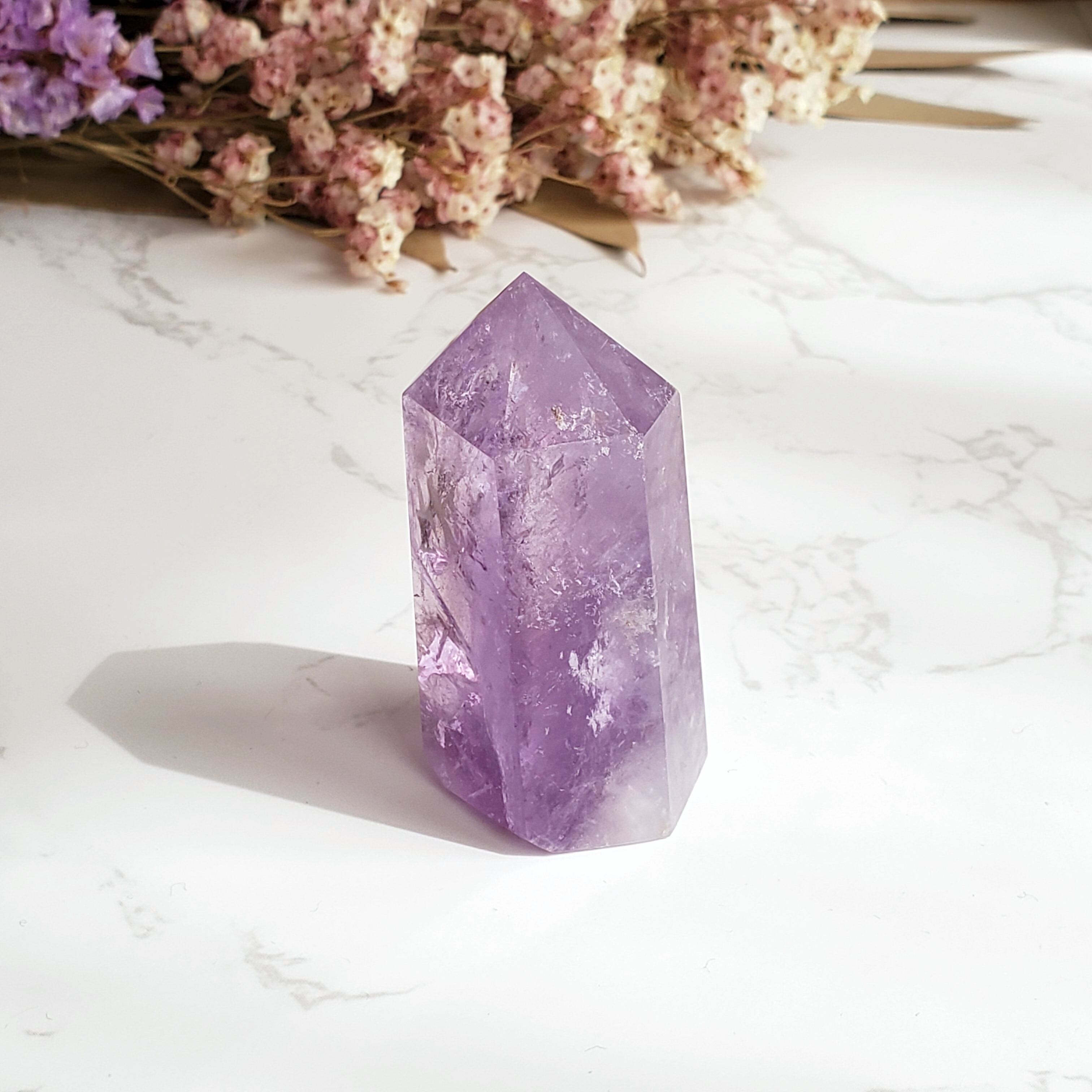 アメジストは大切な人との絆を深め、不安を解消し、心に癒しをもたらします。スピリチュアルな力を呼び覚まし、希望や冷静さをもたらします。不安には癒しを、傷ついた心には安らぎを。感情をコントロールし、直感力を高めます。愛の守護石とも呼ばれています。