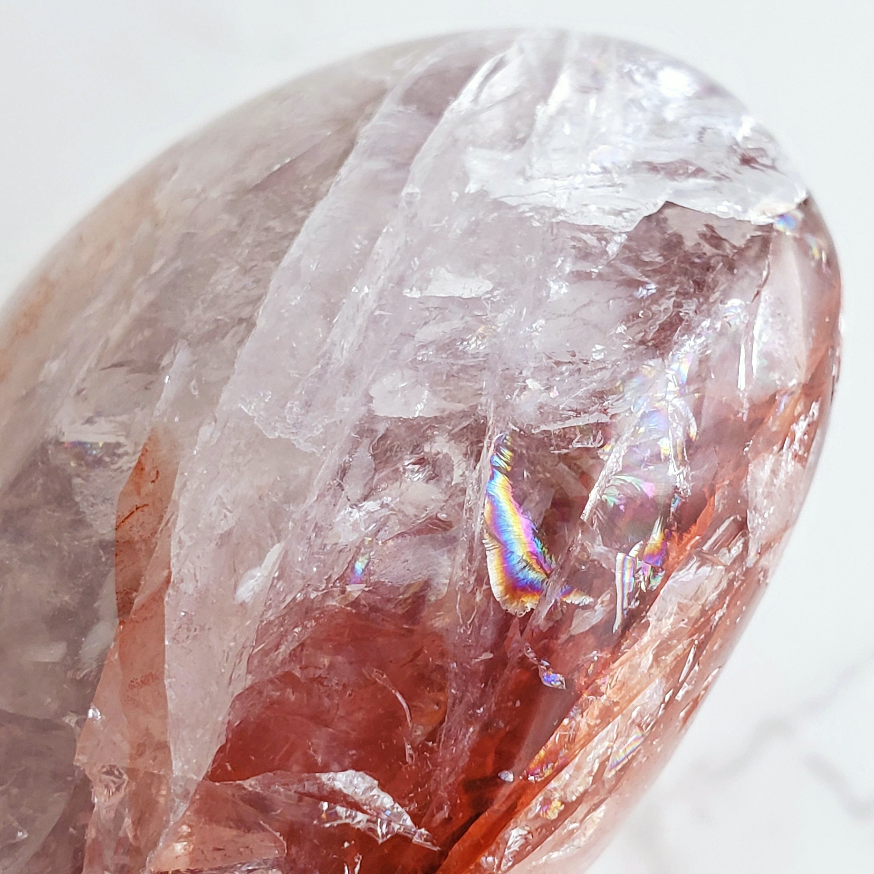 虹がいたるところに見られ、クォーツの透明感も良いパームストーンです♡