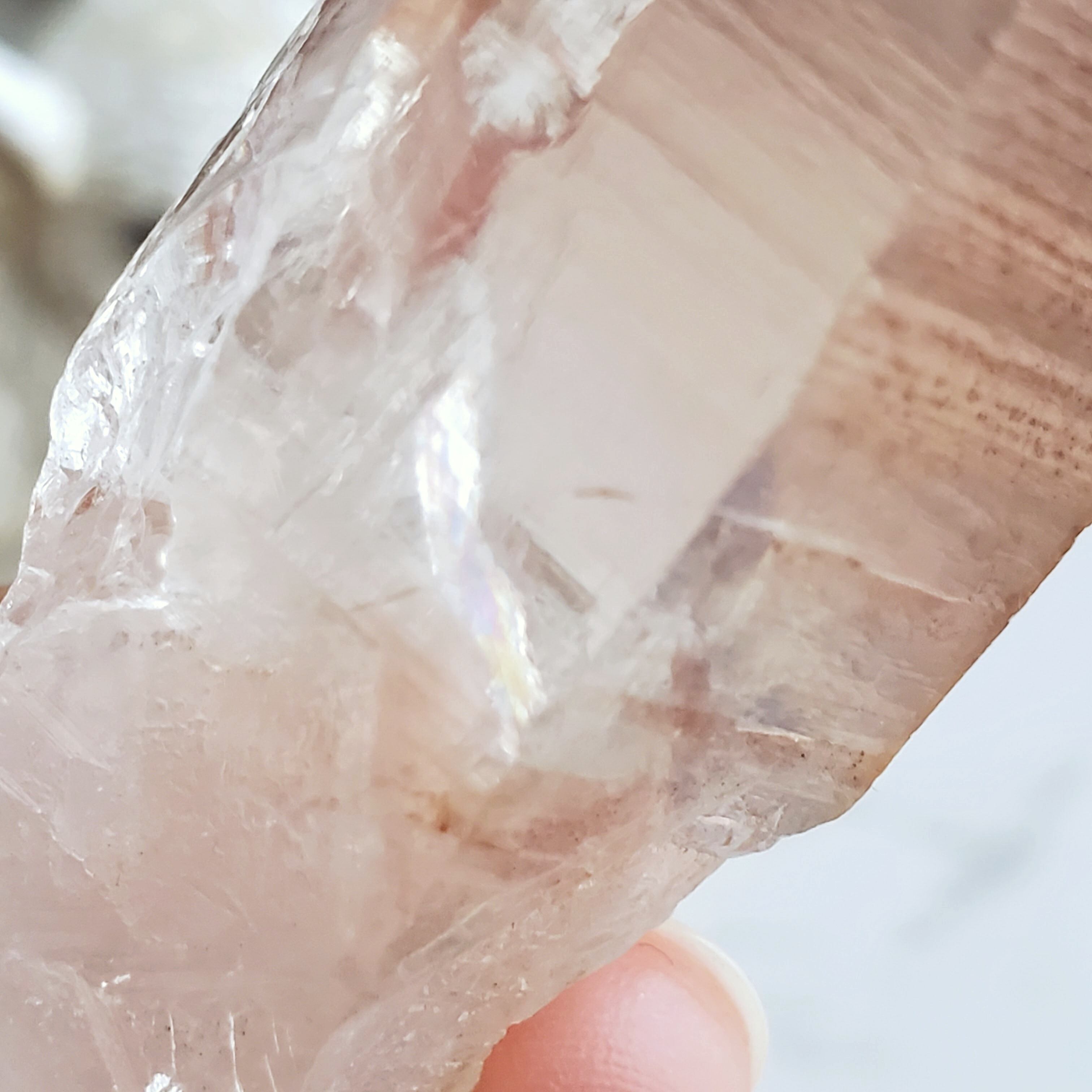 鉄分の付着によりピンク色をした希少なレムリアンシードクリスタルです。