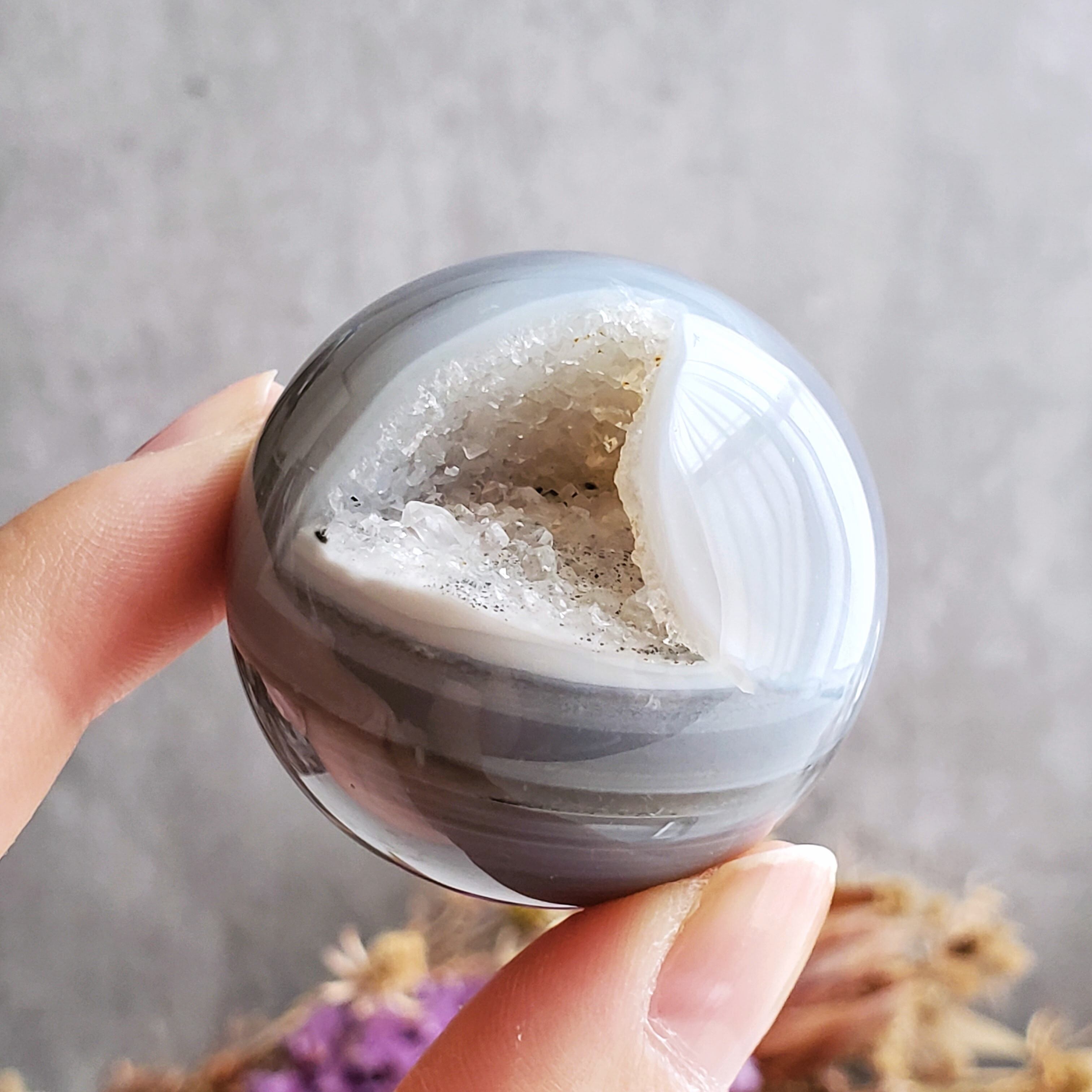 ブルーグレーの縞が美しいアゲートスフィアです。