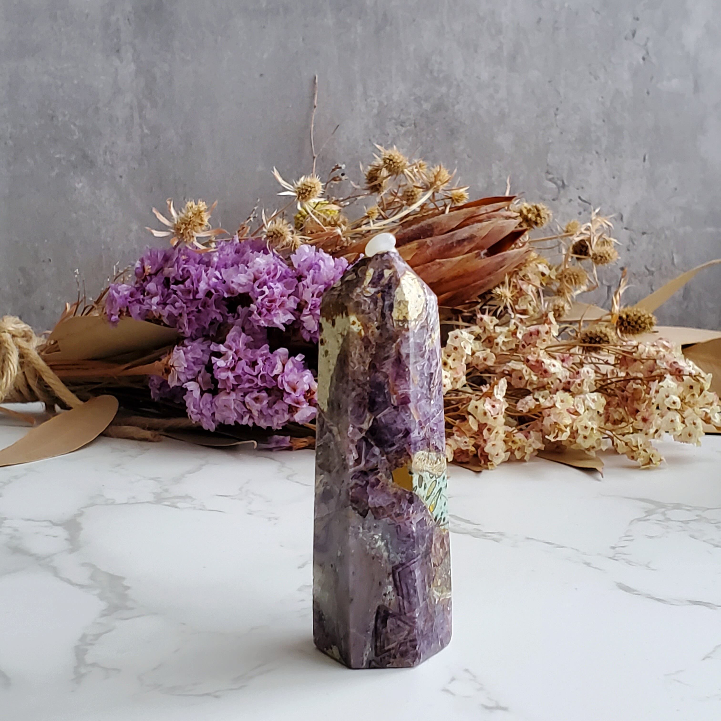 フローライト、アゲート、ジャスパーそれぞれの特徴をお楽しみいただけるびっくり箱みたいなタワーです(*^^*)