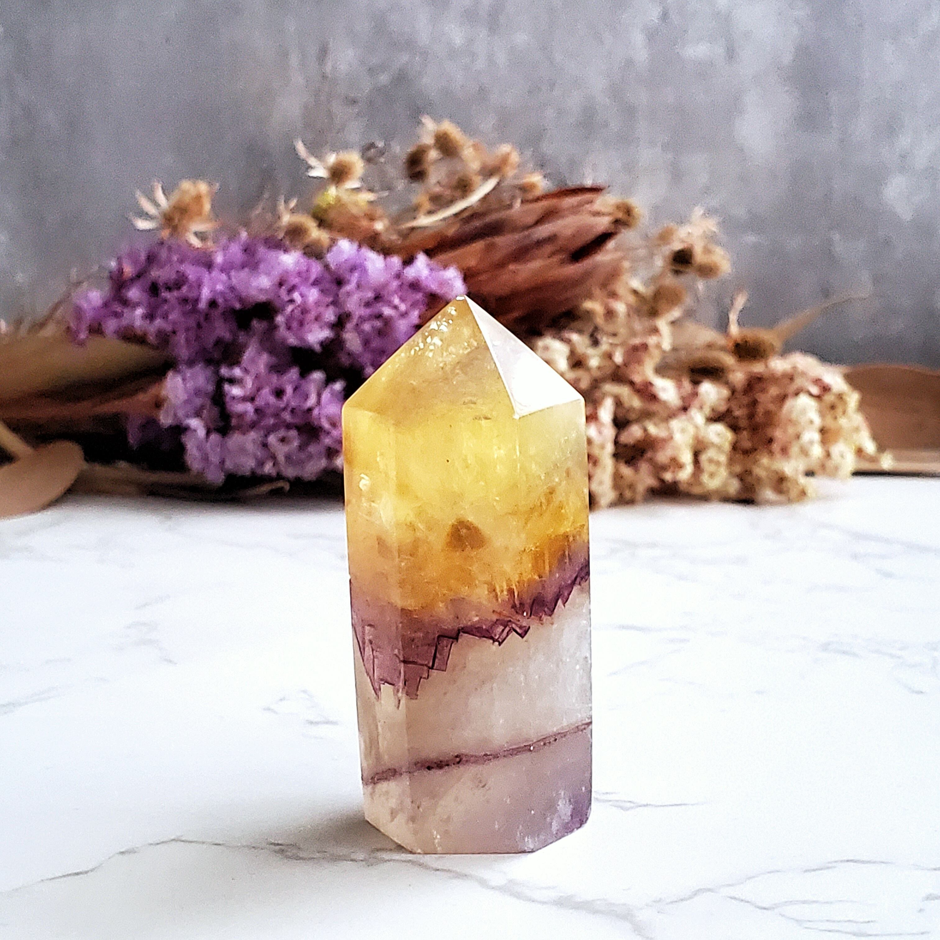 トップに入ったマイカがきらきらと輝くかわいらしいタワーです。