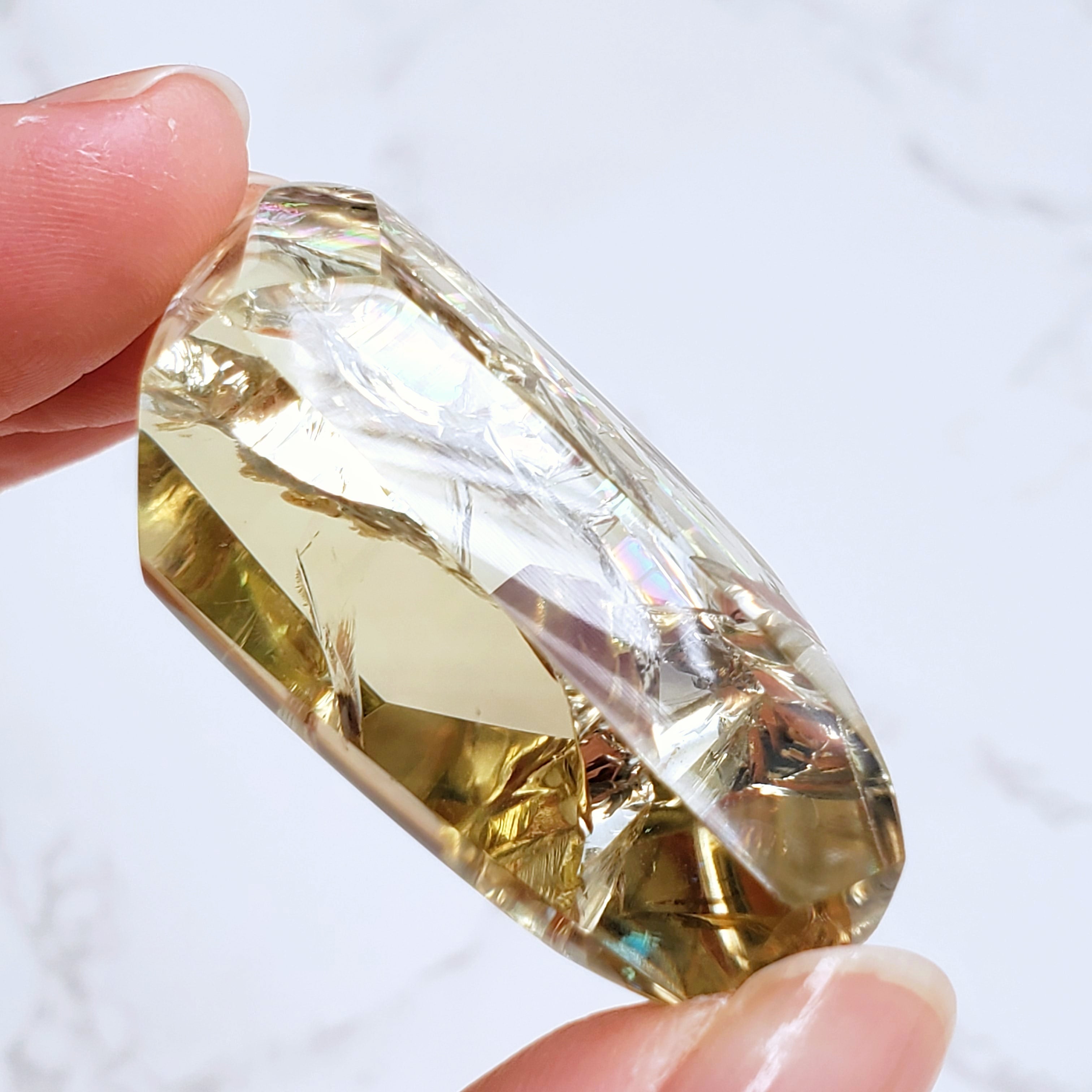 透明度の高い高品質シトリンのフリーフォームです。虹もギラギラしております(*^^*)