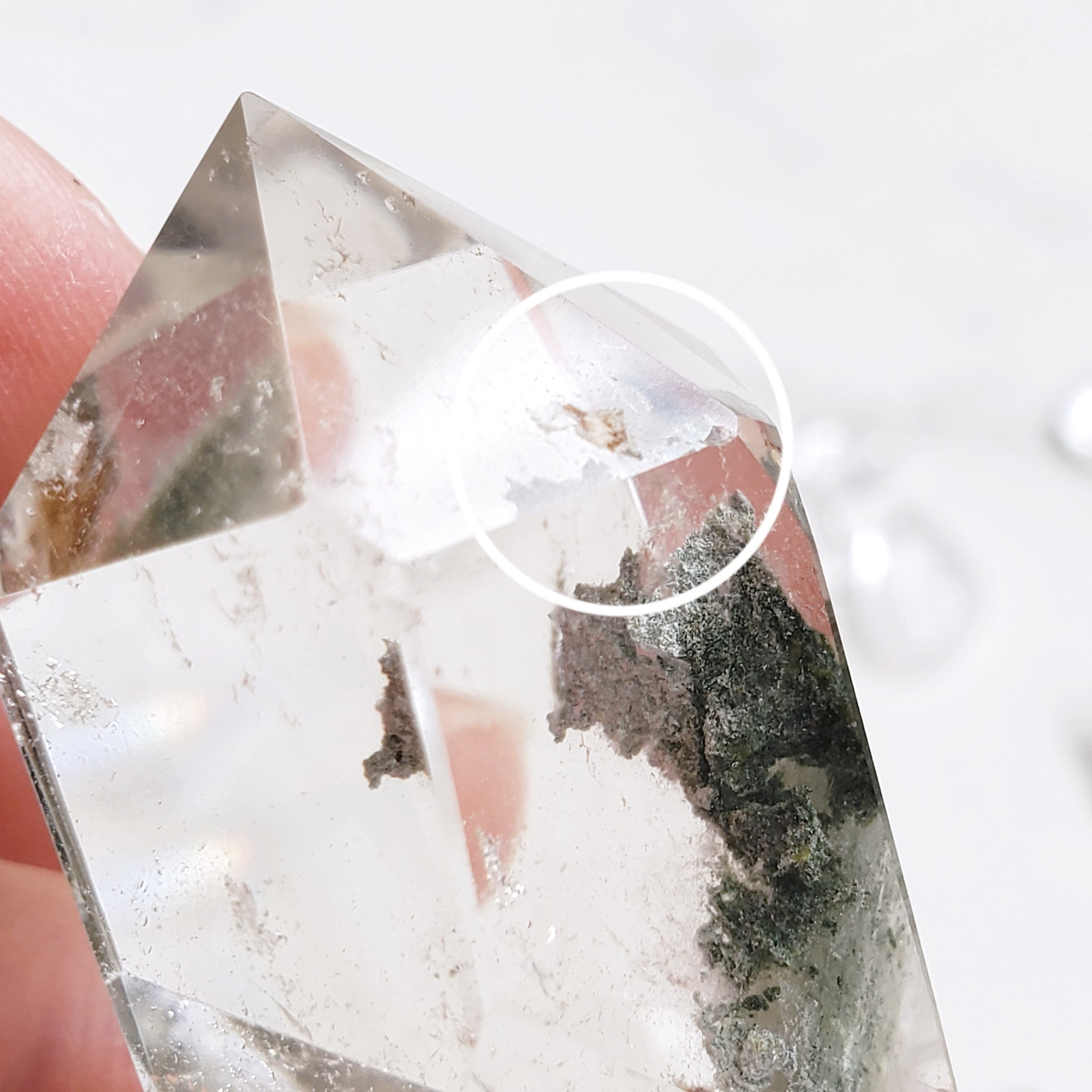 ほんのりスモーキーがかった水晶の中にほっこりした雰囲気のかわいらしいグリーンのガーデン入りです。とっても優しい雰囲気です♡