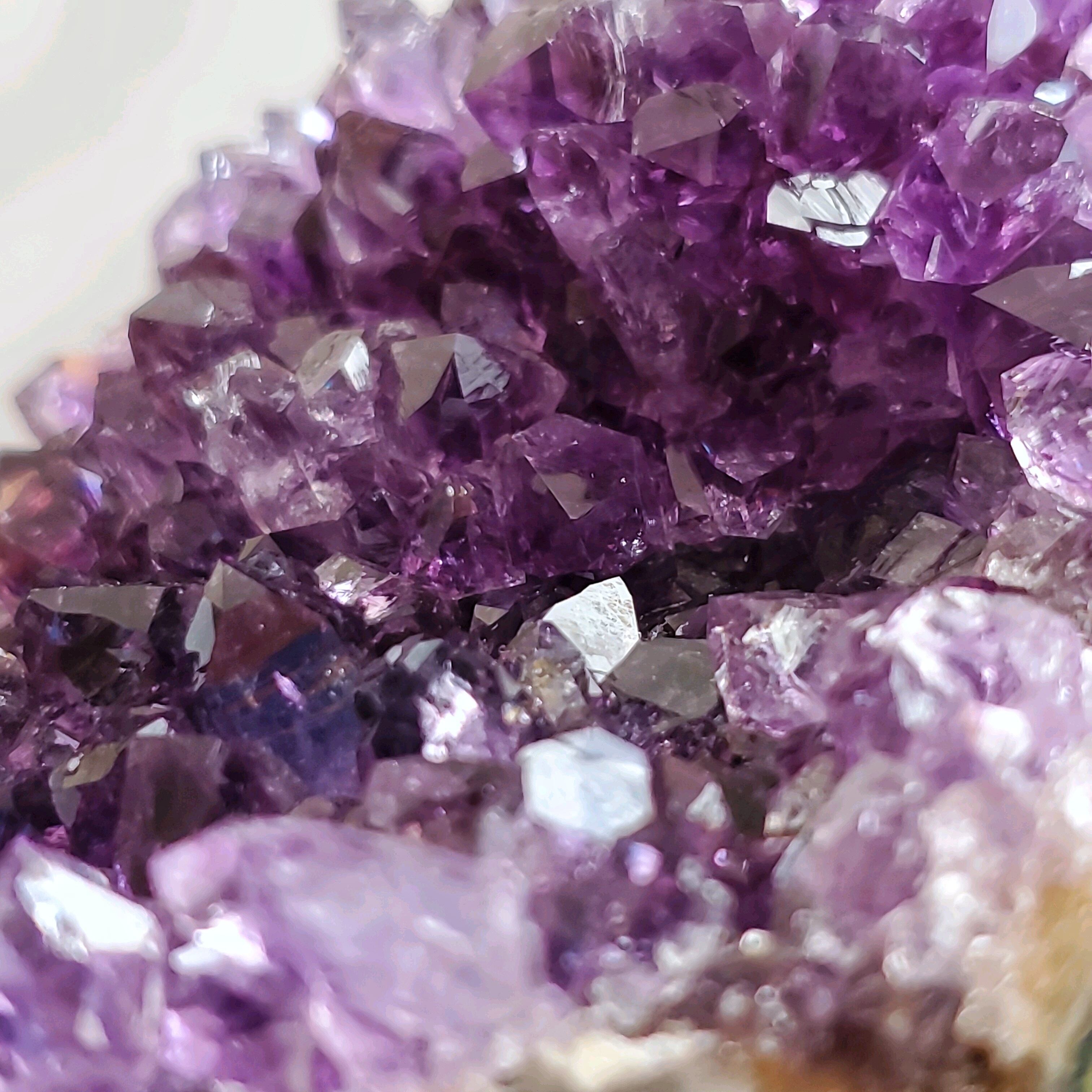 ウルグアイ産らしく結晶の色は濃い目で艶があり、光を受けてキラキラと輝きます。
