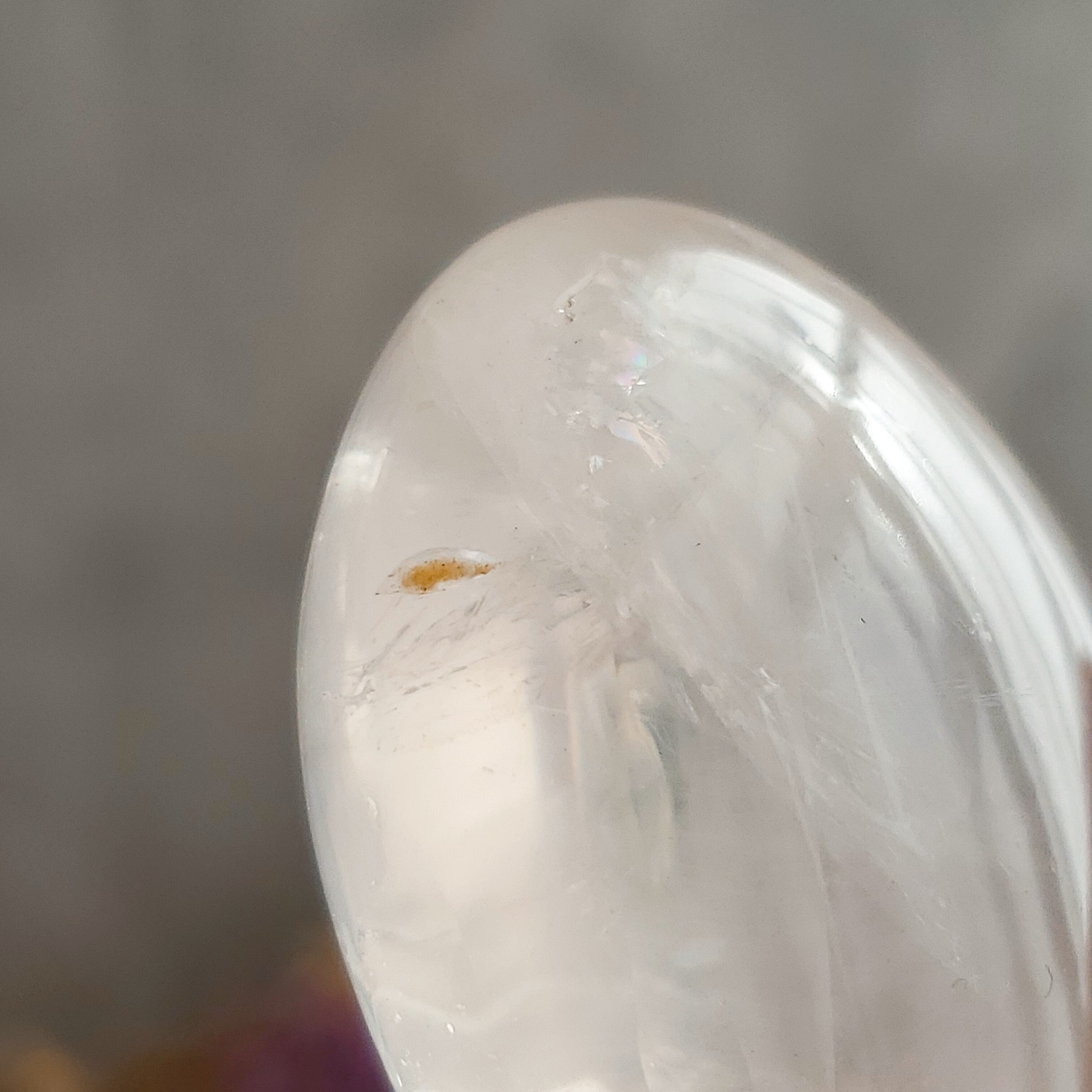 ぽってりとしたフォルムがかわいい子で、光に当てるとキラキラと輝き虹も見られます。