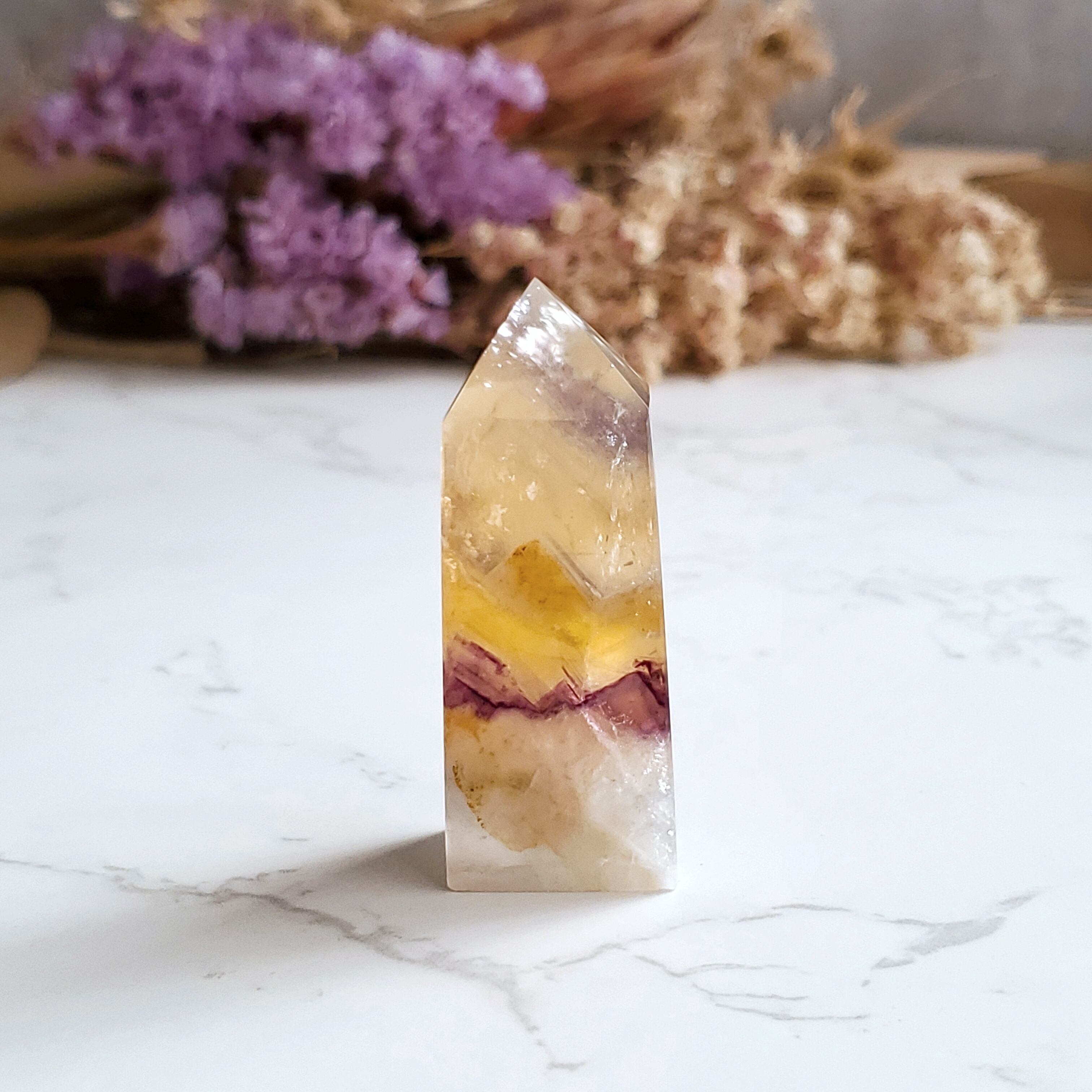 トップに入ったマイカがきらきらと輝くかわいらしいタワーです。