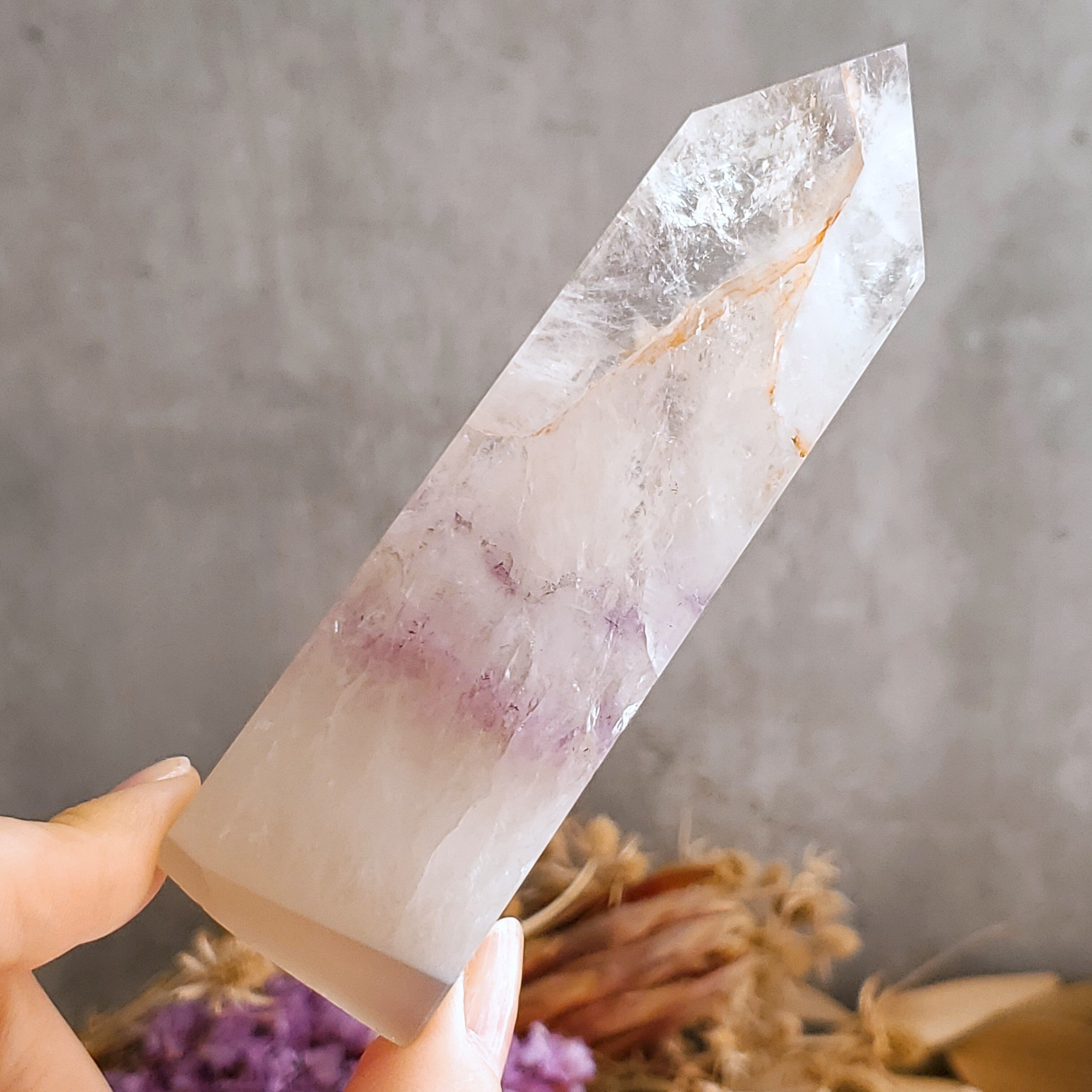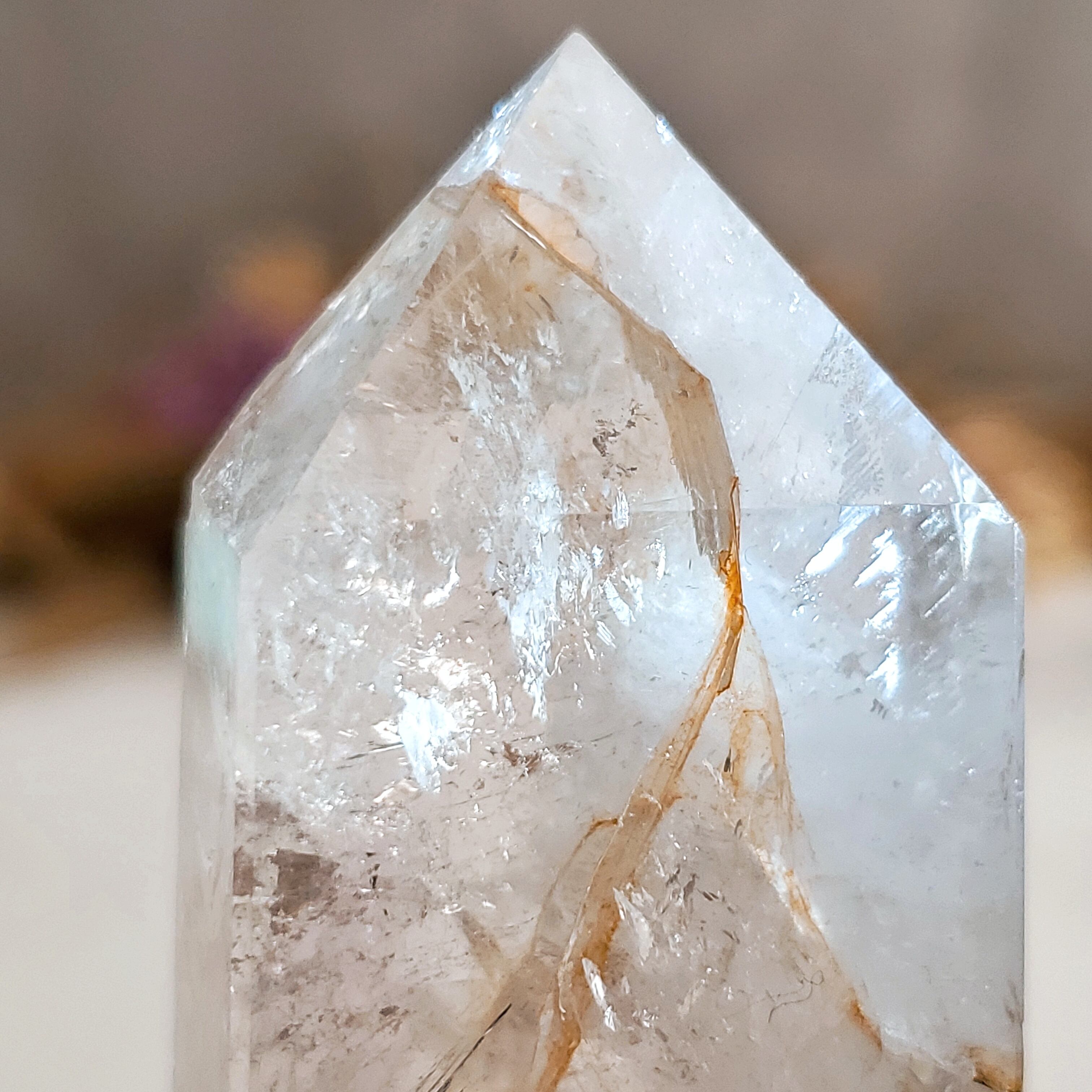 トップの透明感が良く、ヘマタイトのラインがおしゃれなタワーです。虹も見られます♡